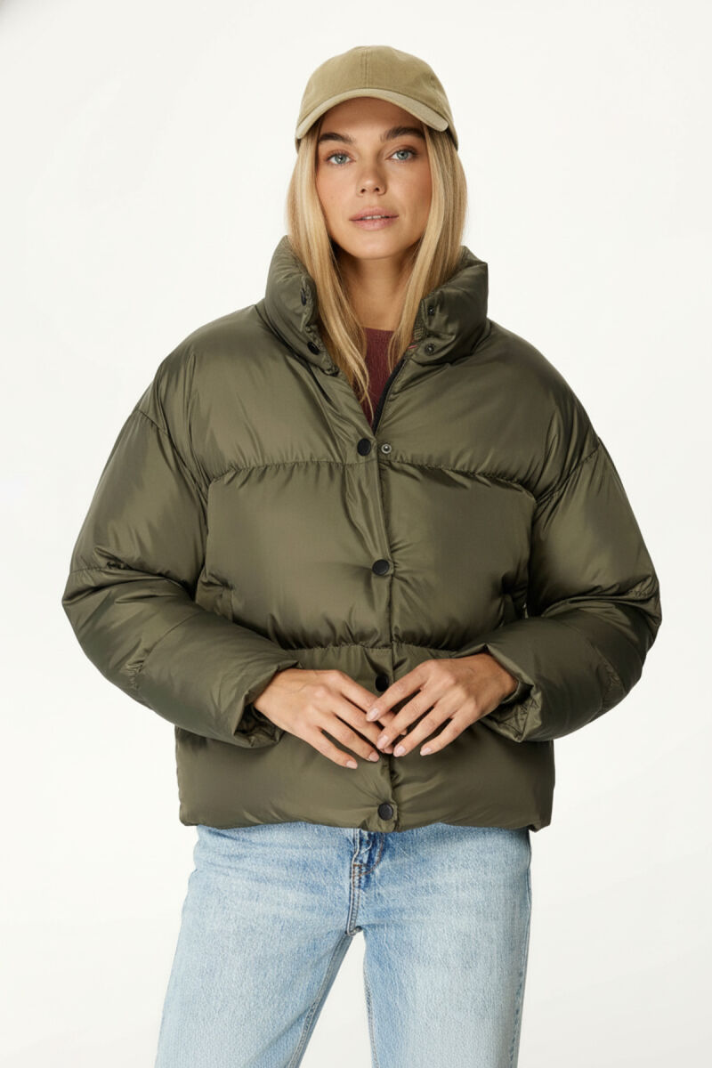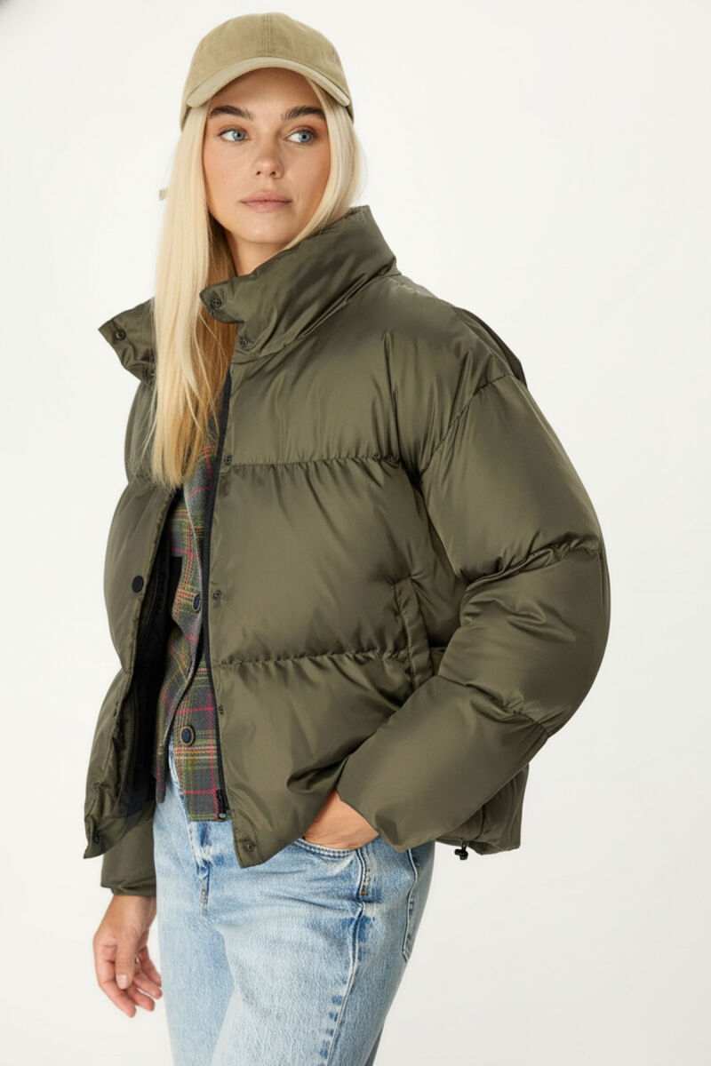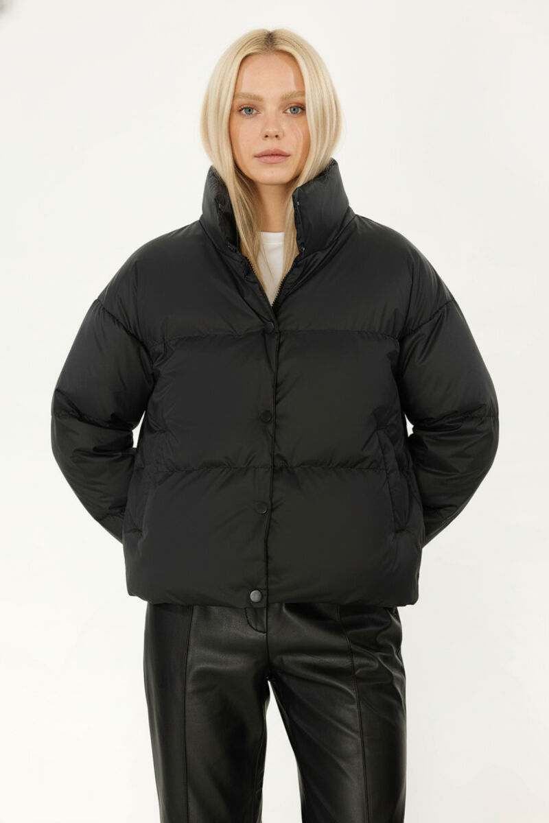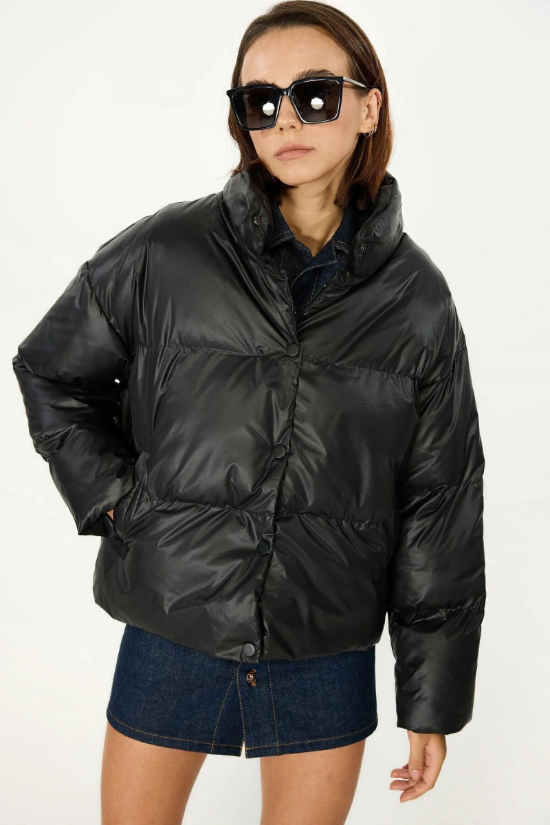 D1fference İçi Astarlı Cepli Kapüşonlu Jel Elyaf Su ve Rüzgar Geçirmez Dik Yaka Kışlık Kadın Mont
