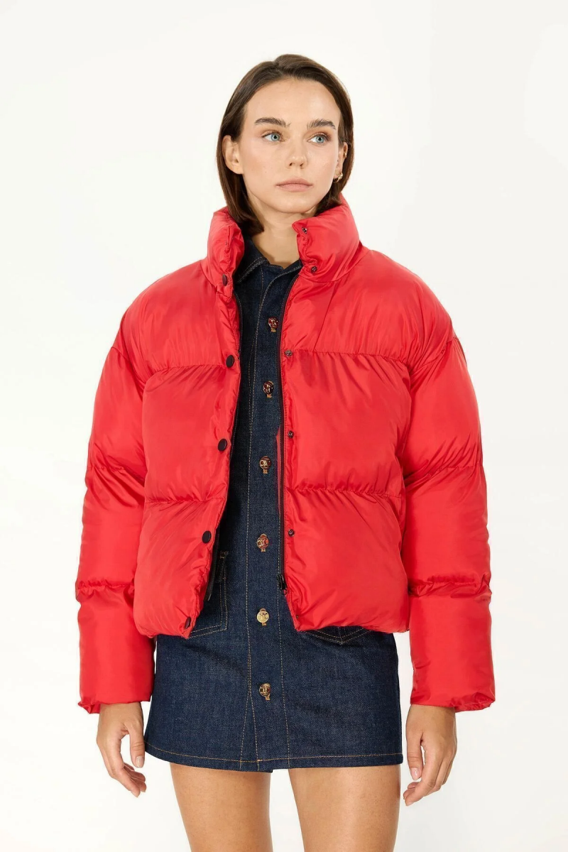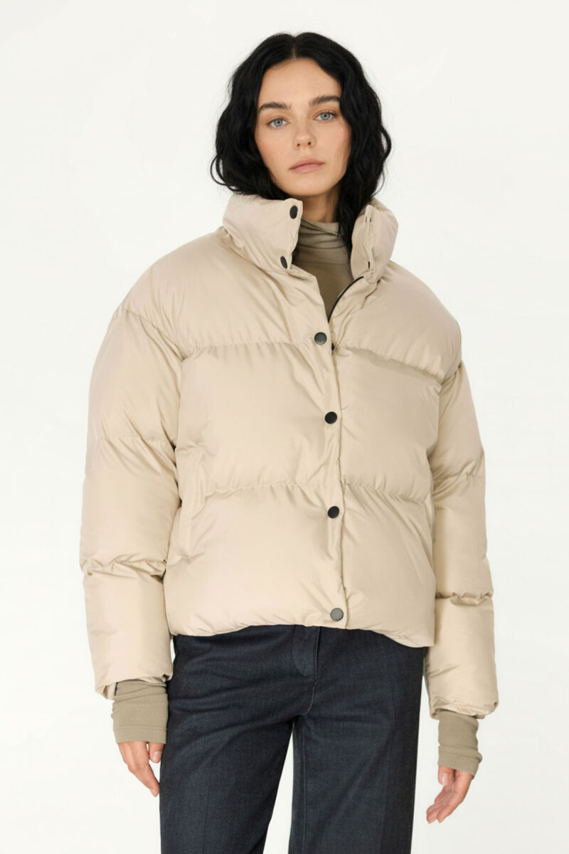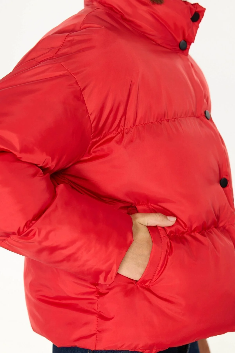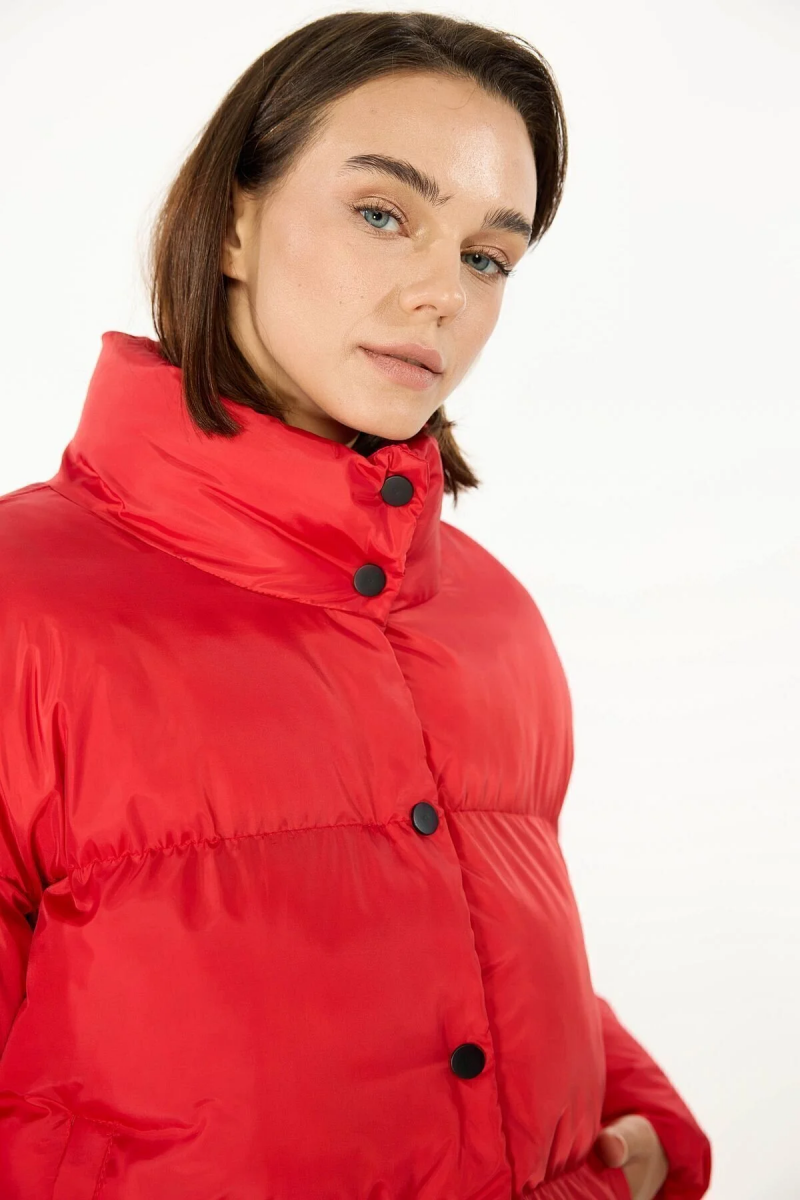 D1fference İçi Astarlı Cepli Kapüşonlu Jel Elyaf Su ve Rüzgar Geçirmez Dik Yaka Kışlık Kadın Mont