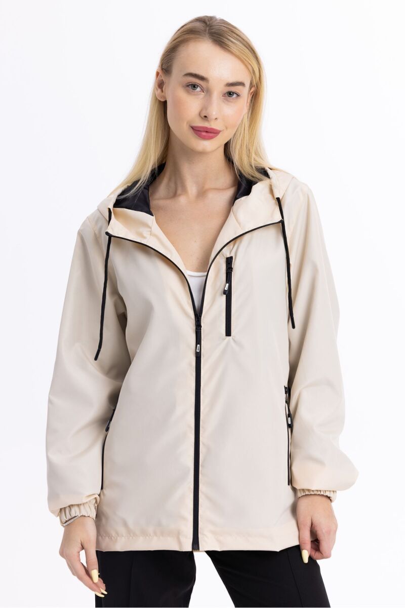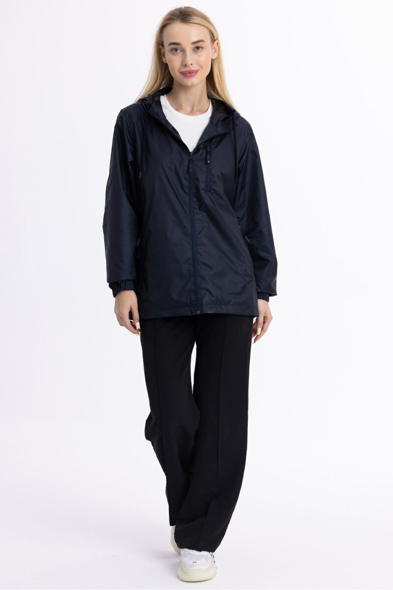 İçi Astarlı Su ve Rüzgar Geçirmez Cepli Kadın Yağmurluk