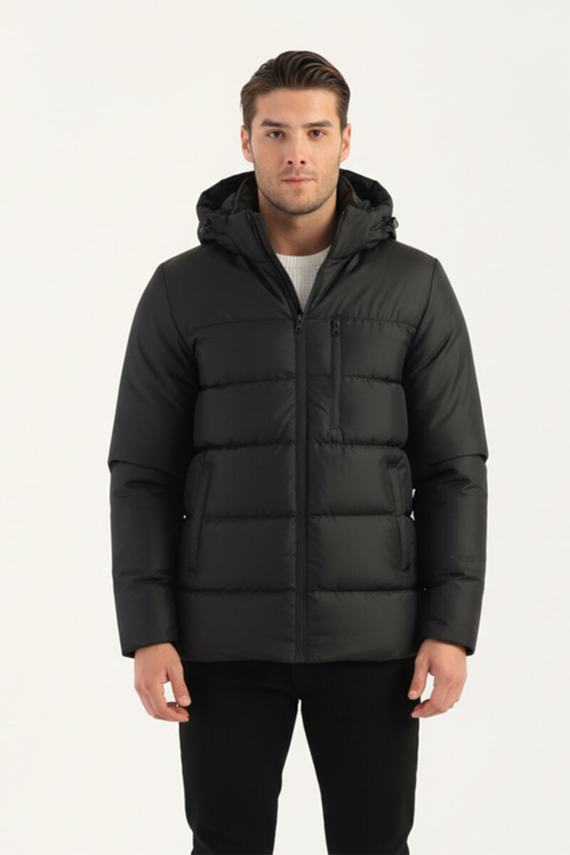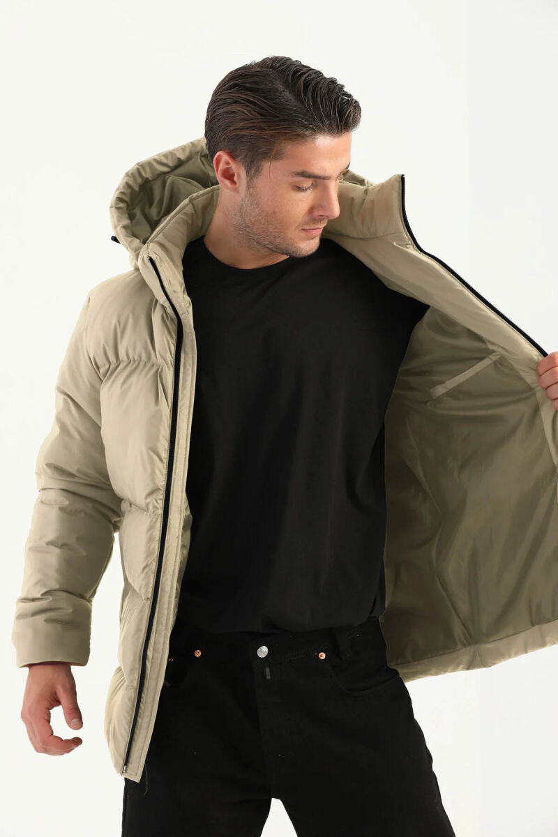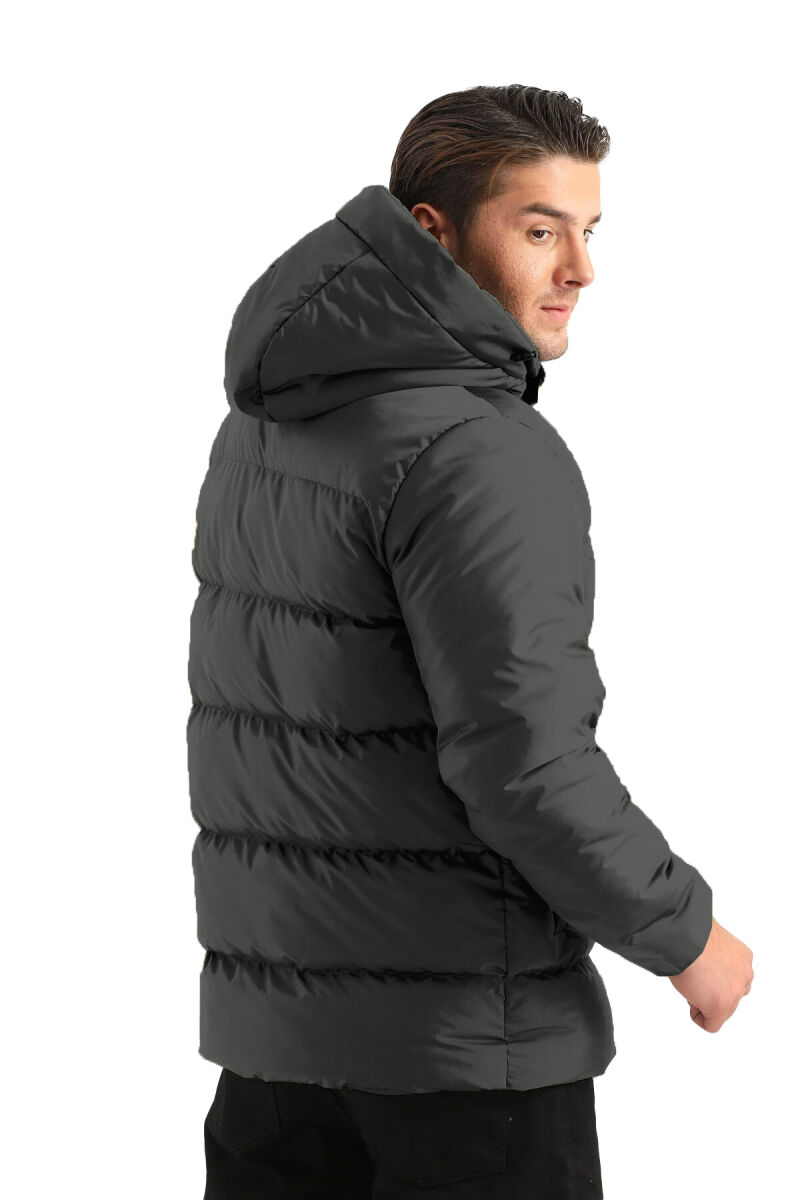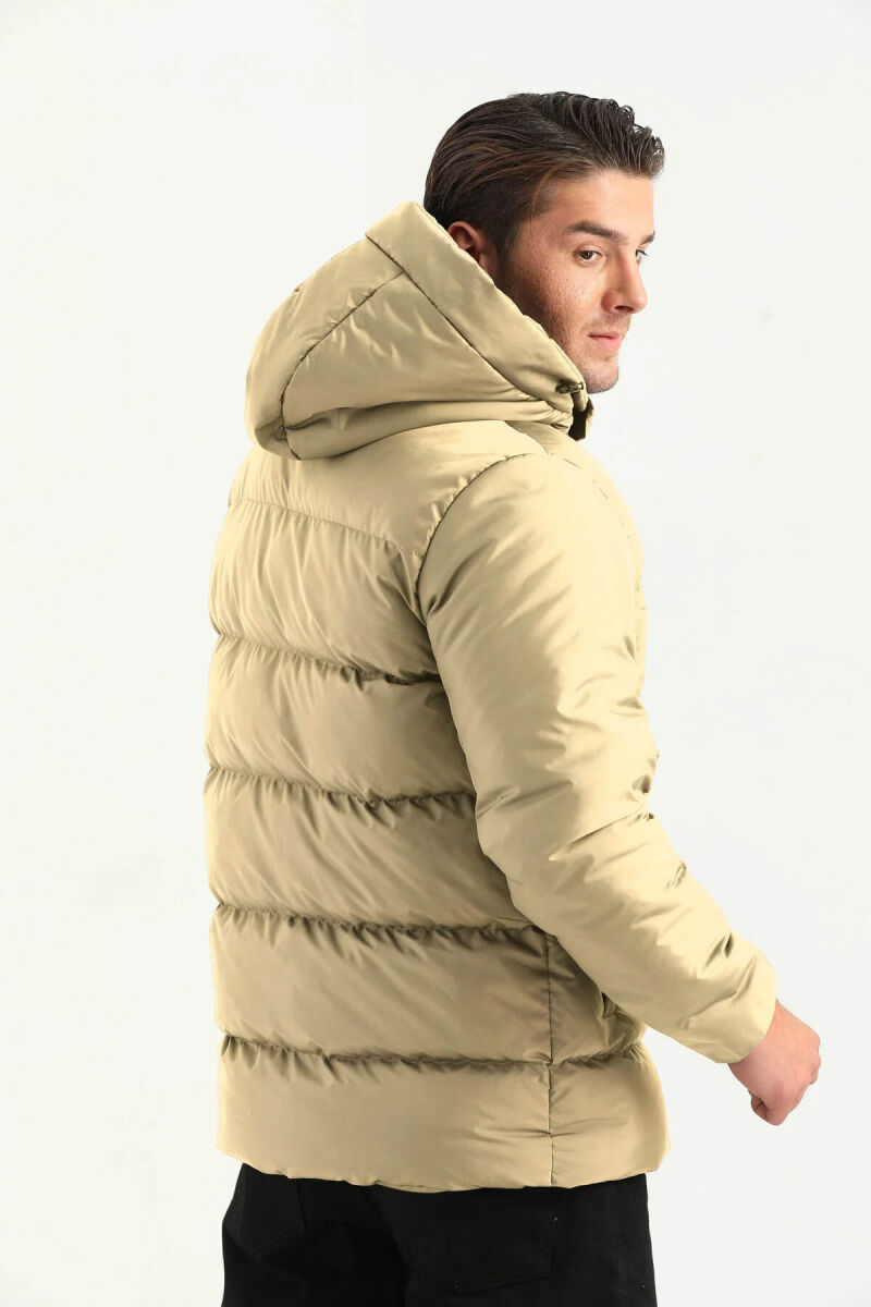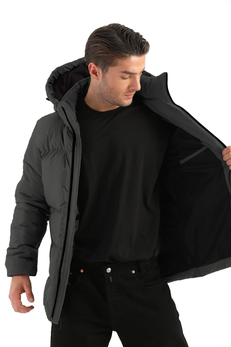 İçi Astarlı Cepli Jel Elyaf Su ve Rüzgar Geçirmez Şişme Kışlık Erkek Mont