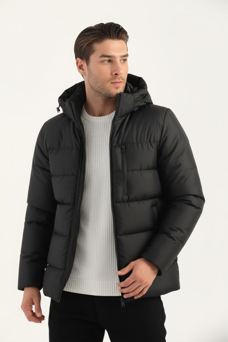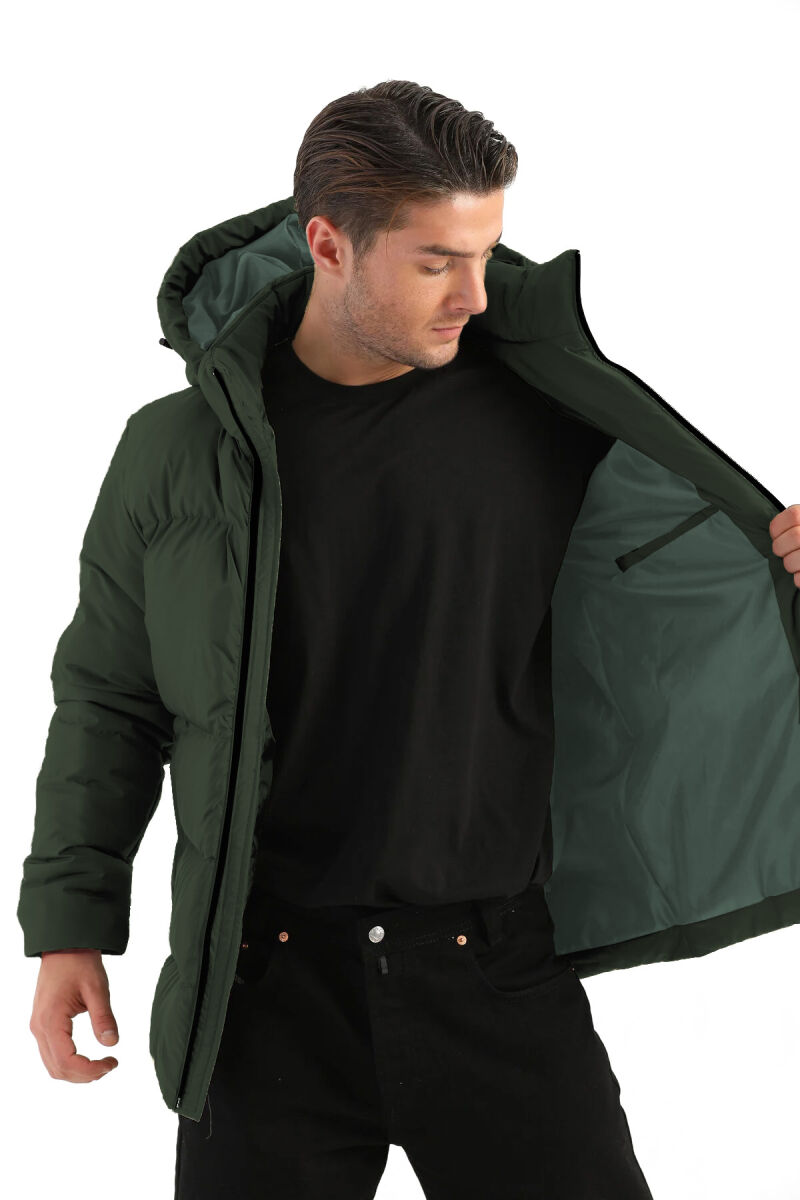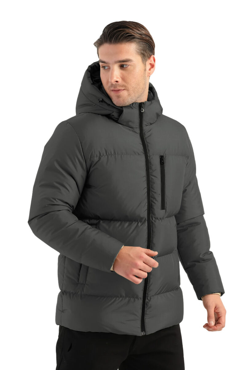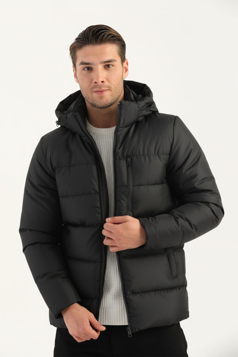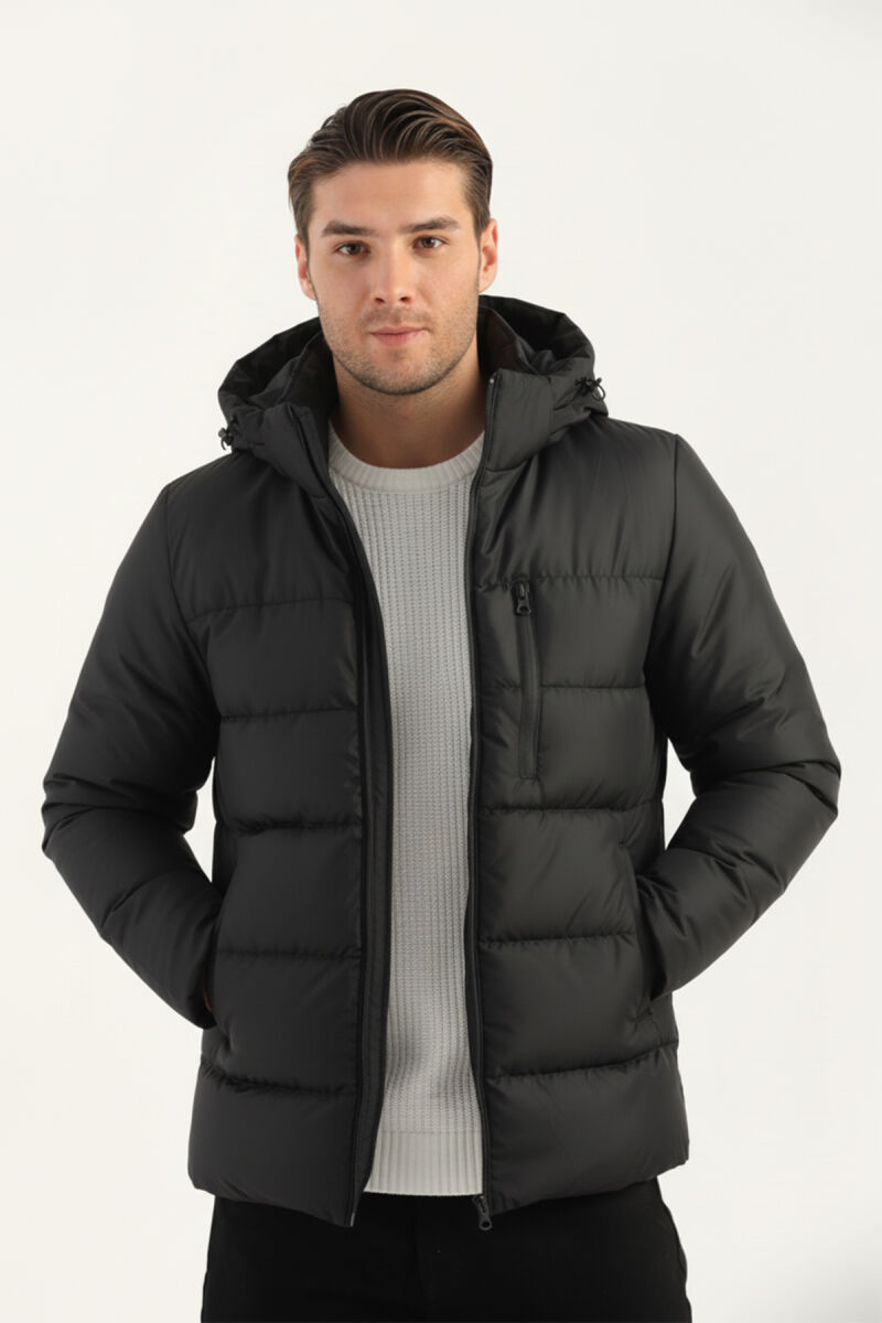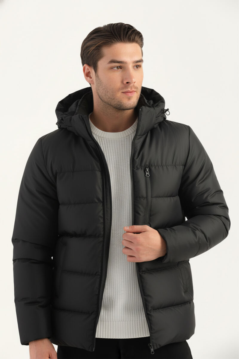 İçi Astarlı Cepli Jel Elyaf Su ve Rüzgar Geçirmez Şişme Kışlık Erkek Mont