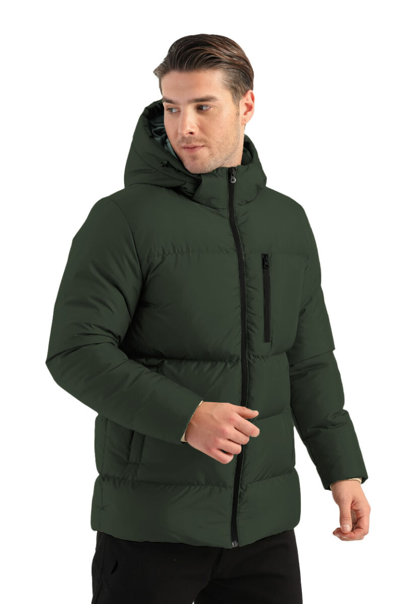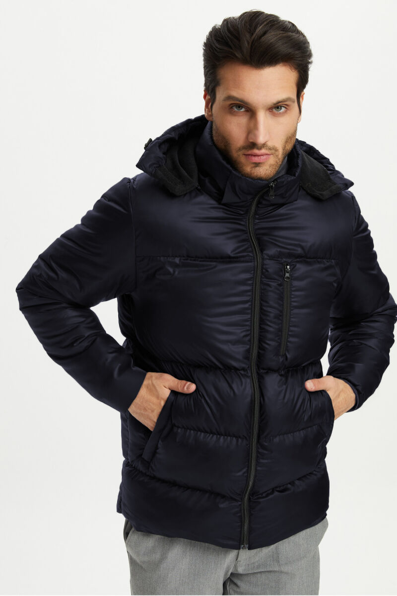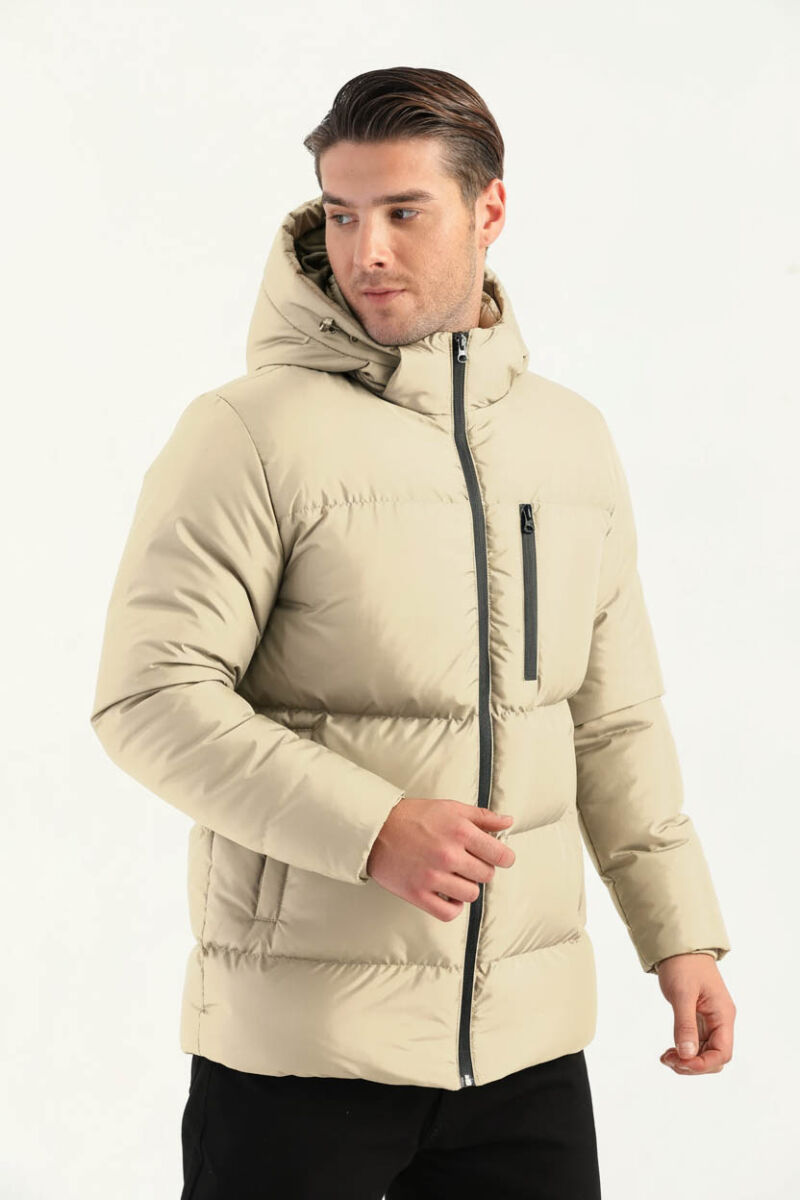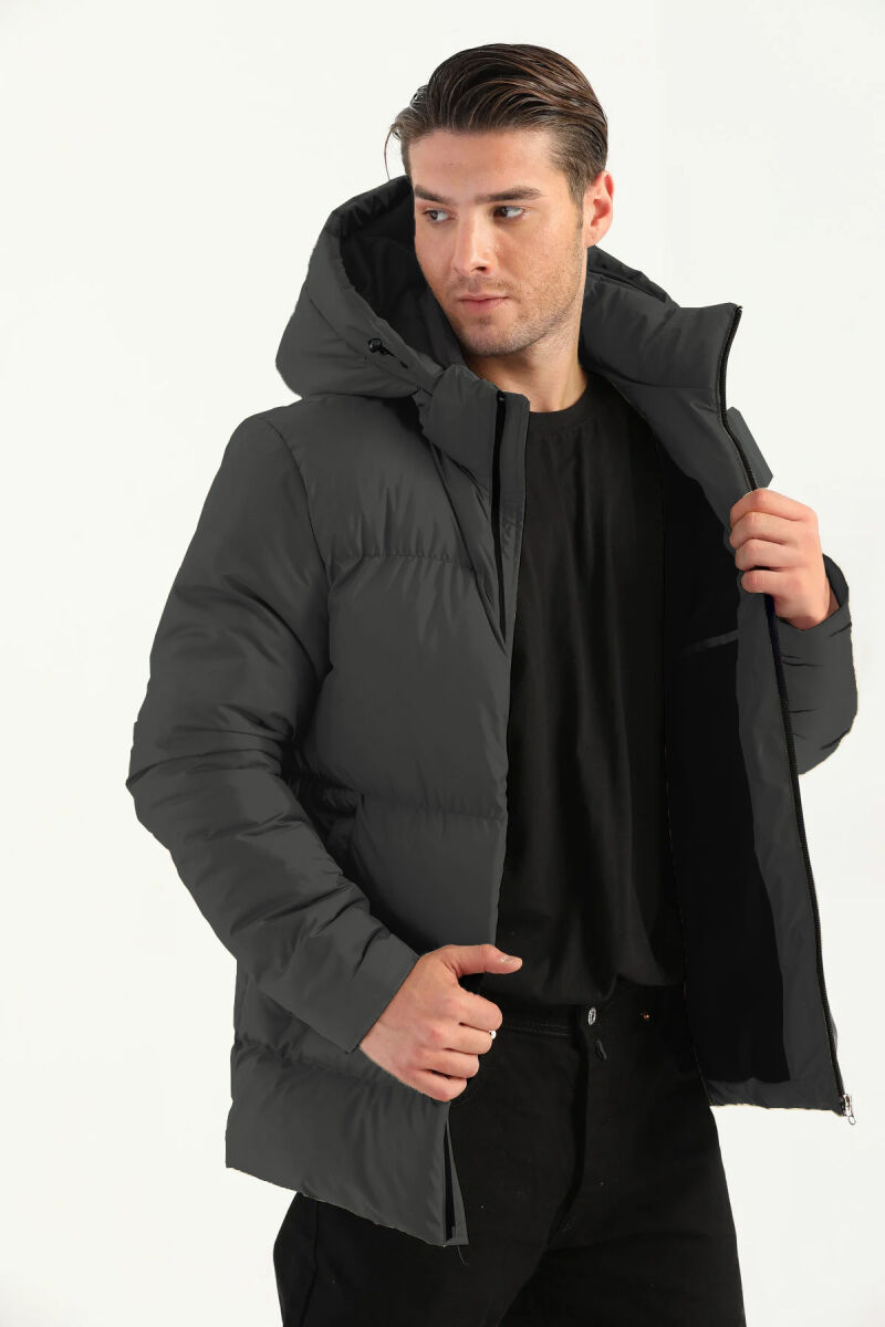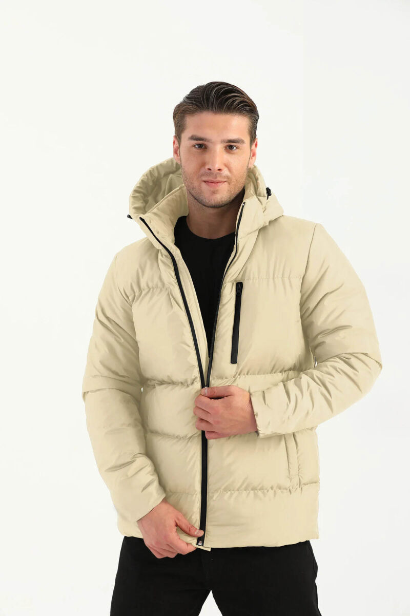 İçi Astarlı Cepli Jel Elyaf Su ve Rüzgar Geçirmez Şişme Kışlık Erkek Mont