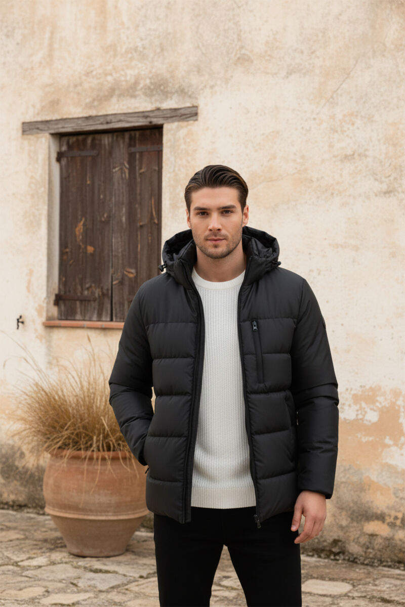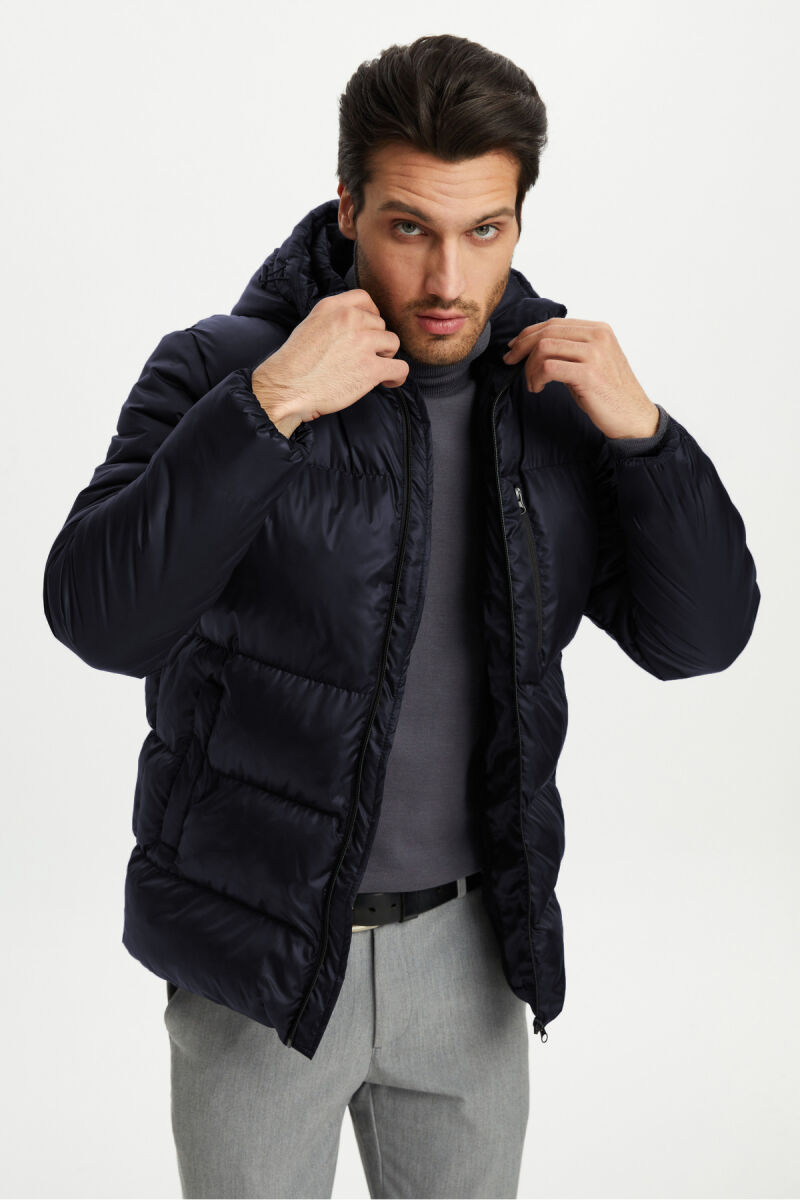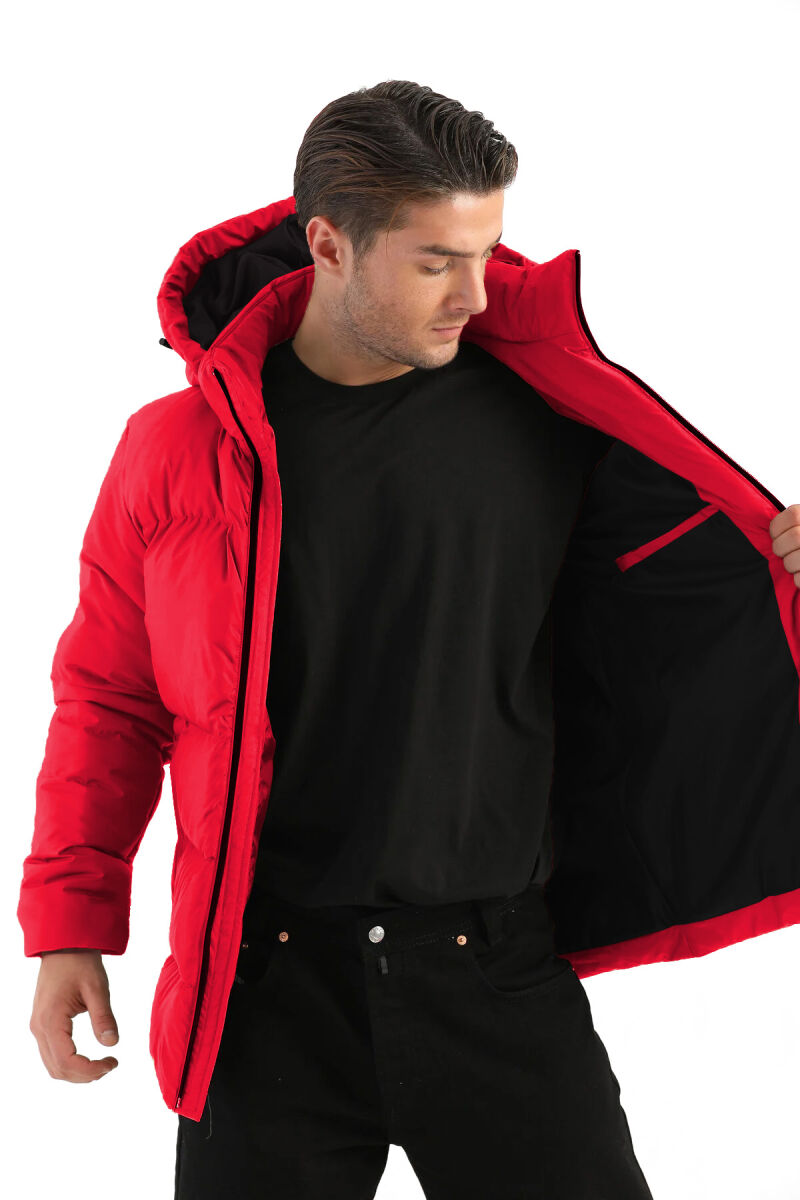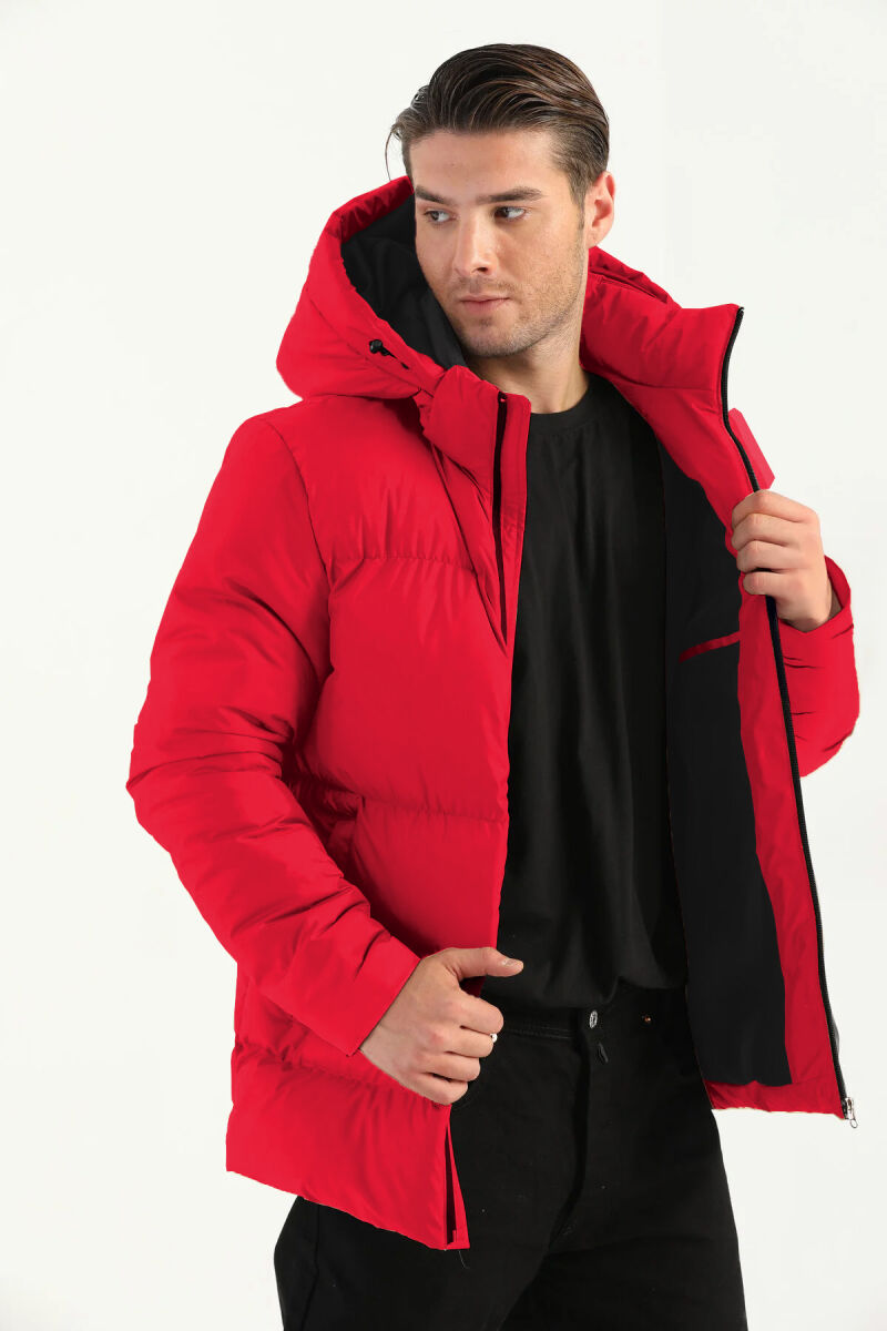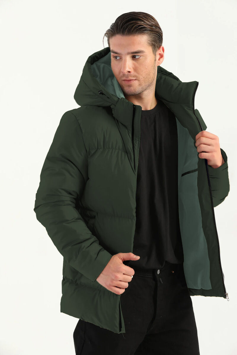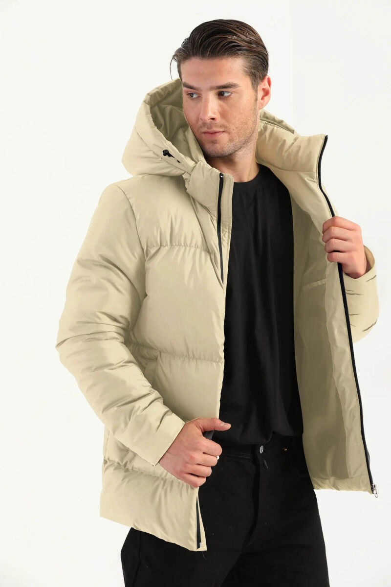 İçi Astarlı Cepli Jel Elyaf Su ve Rüzgar Geçirmez Şişme Kışlık Erkek Mont