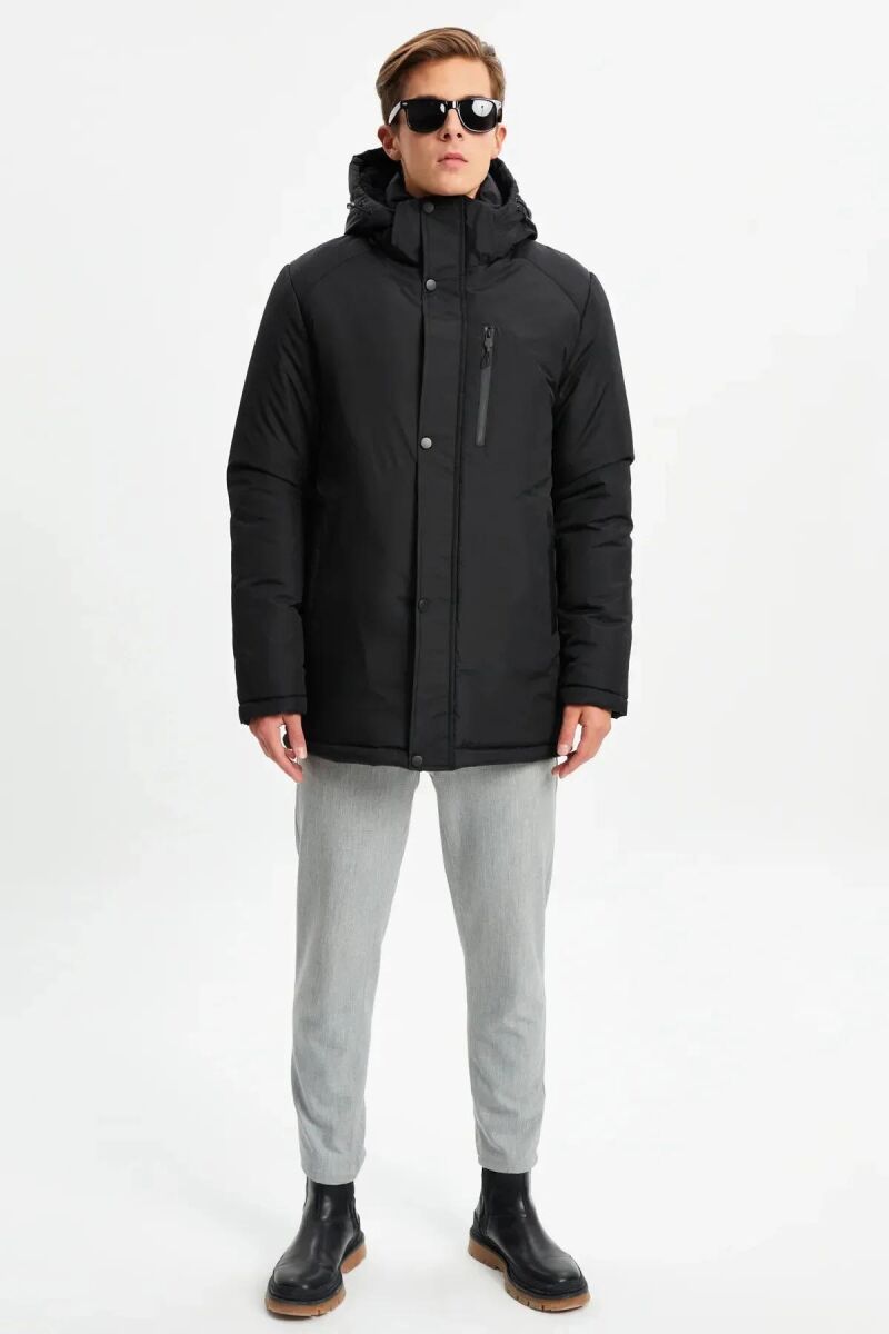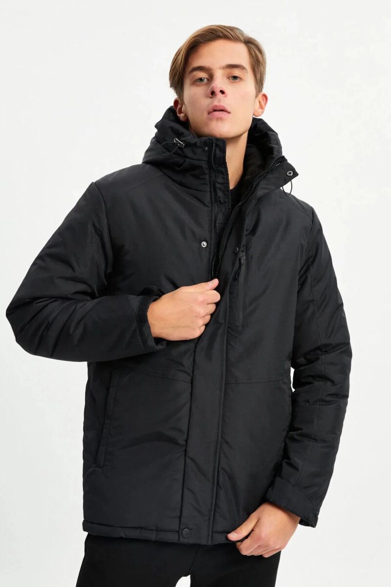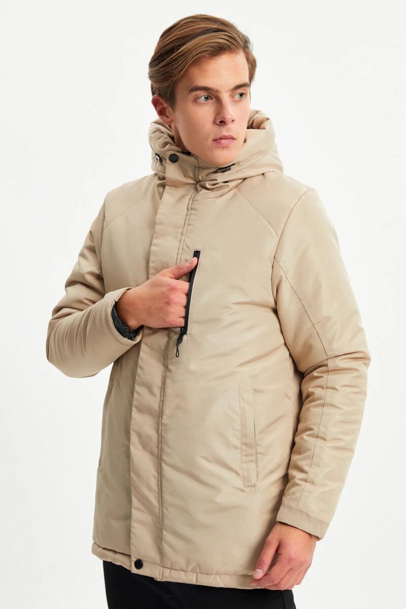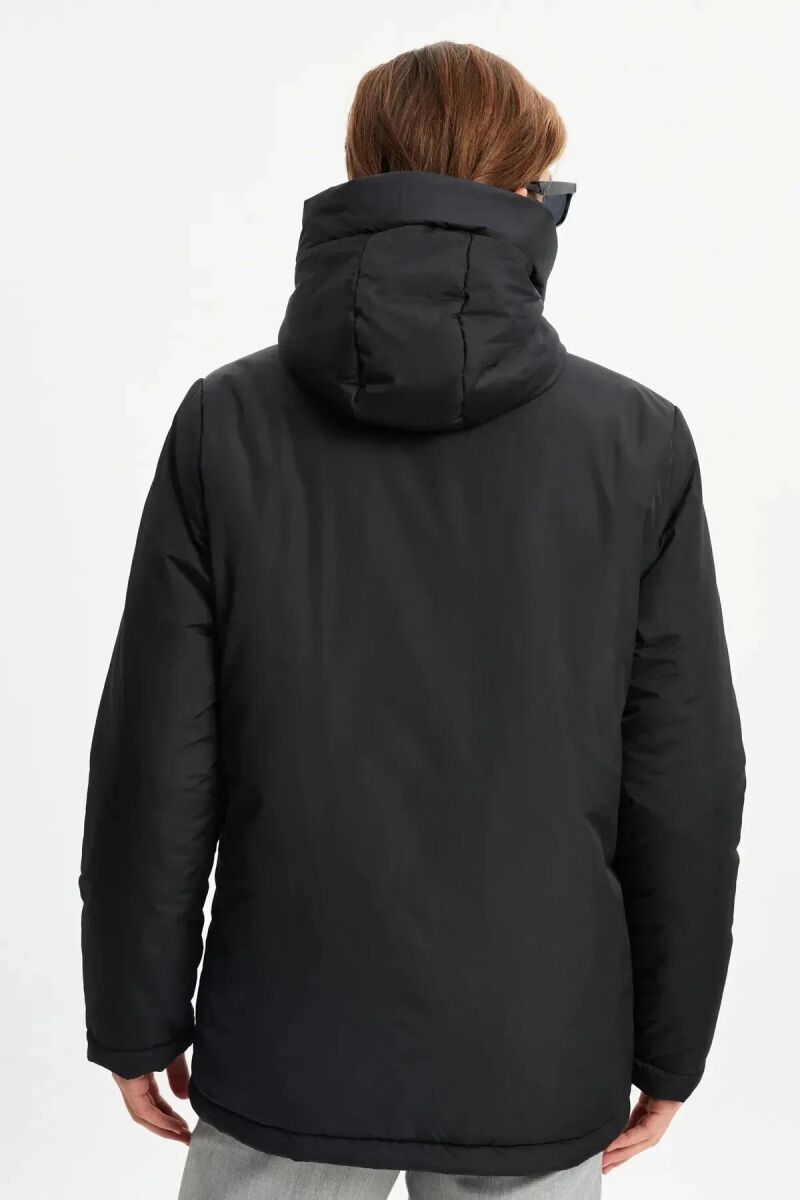 İçi Astarlı Su ve Rüzgar Geçirmez Cepli Kapüşonlu Erkek Mont
