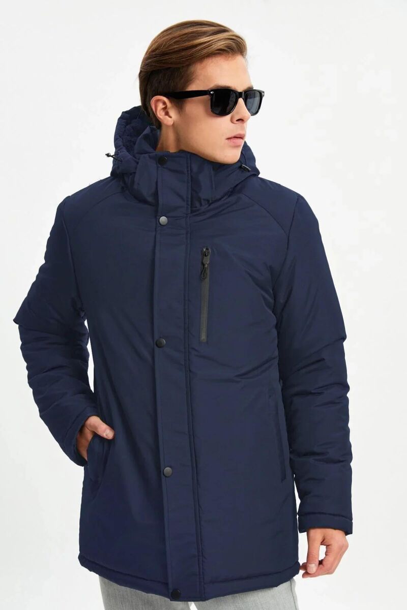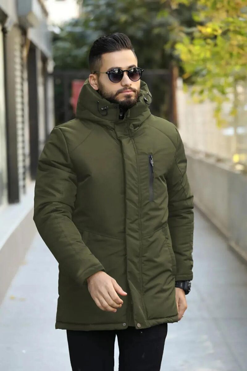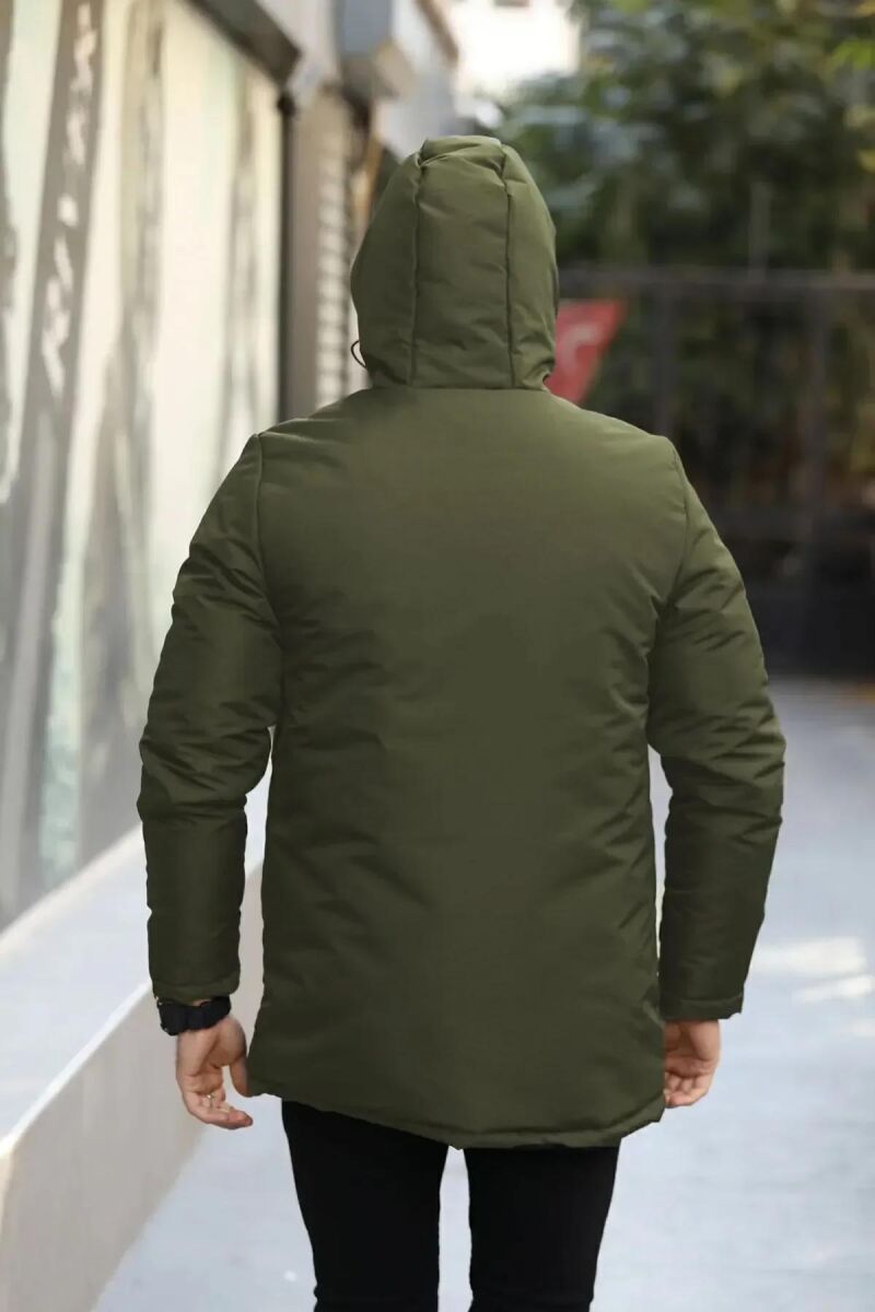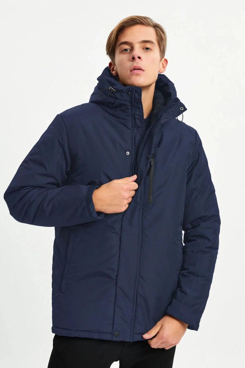 İçi Astarlı Su ve Rüzgar Geçirmez Cepli Kapüşonlu Erkek Mont