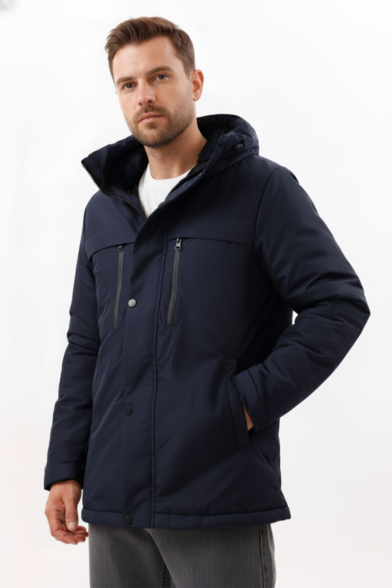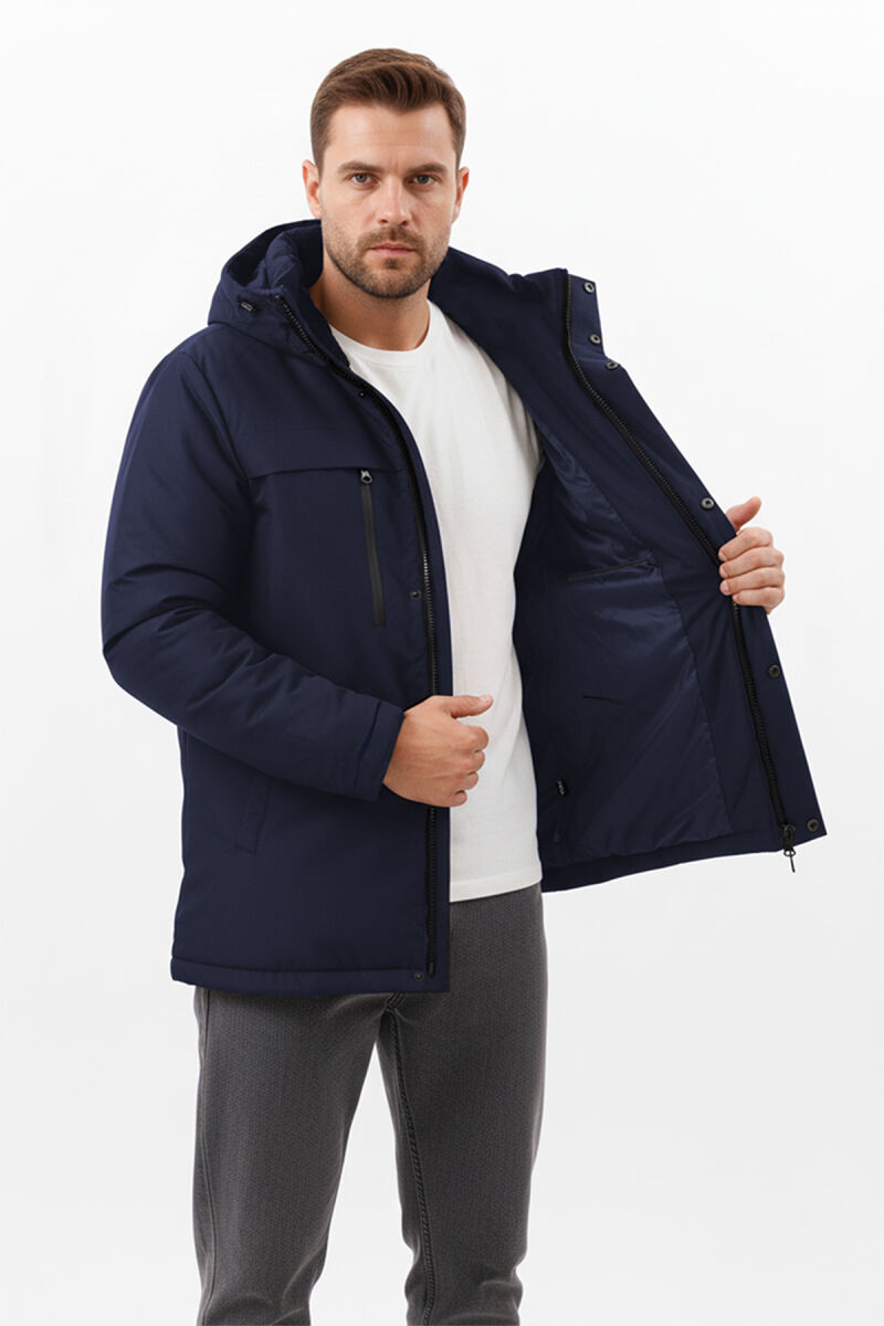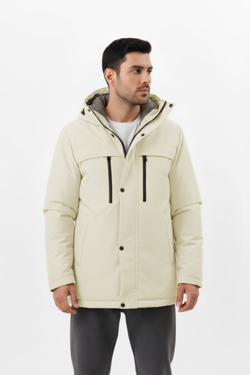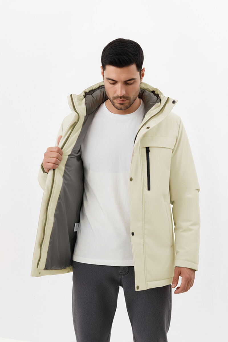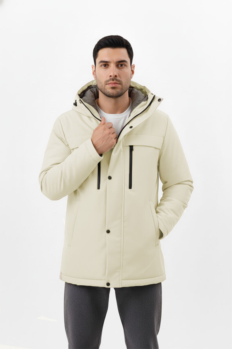 İçi Astarlı Su ve Rüzgar Geçirmez Cepli Kapüşonlu Erkek Mont