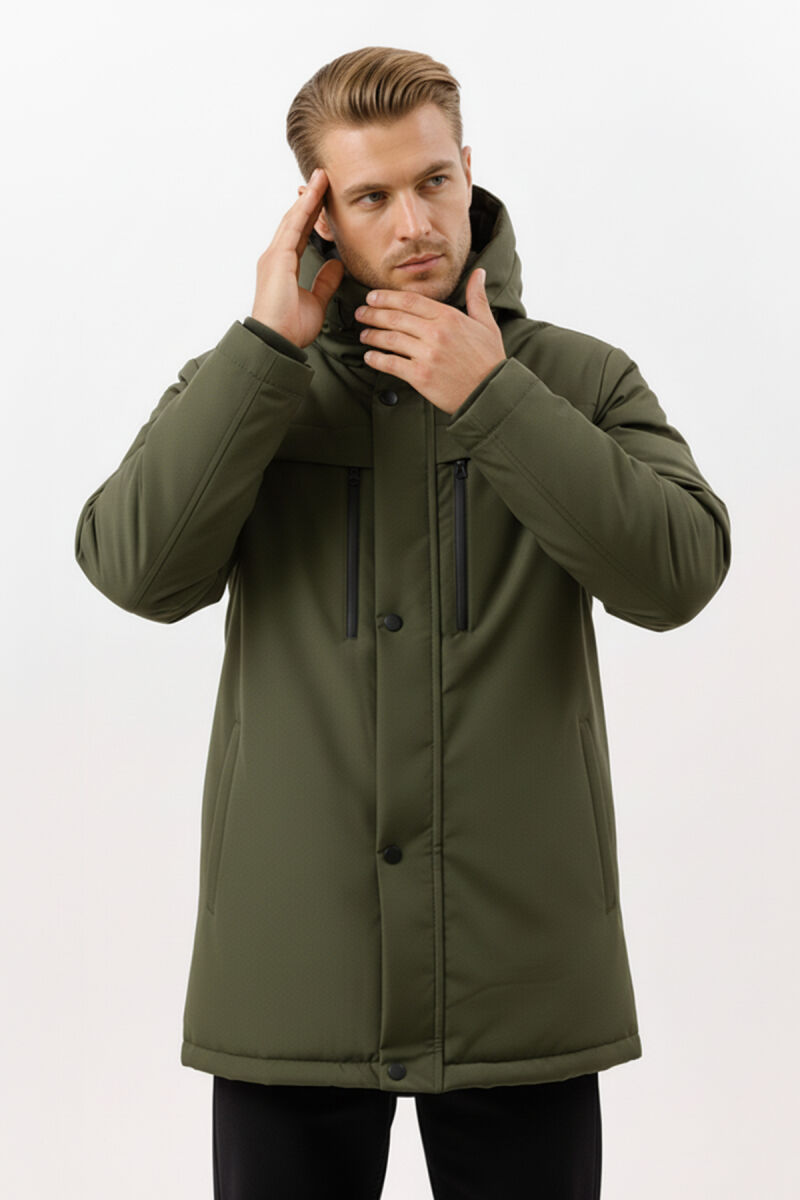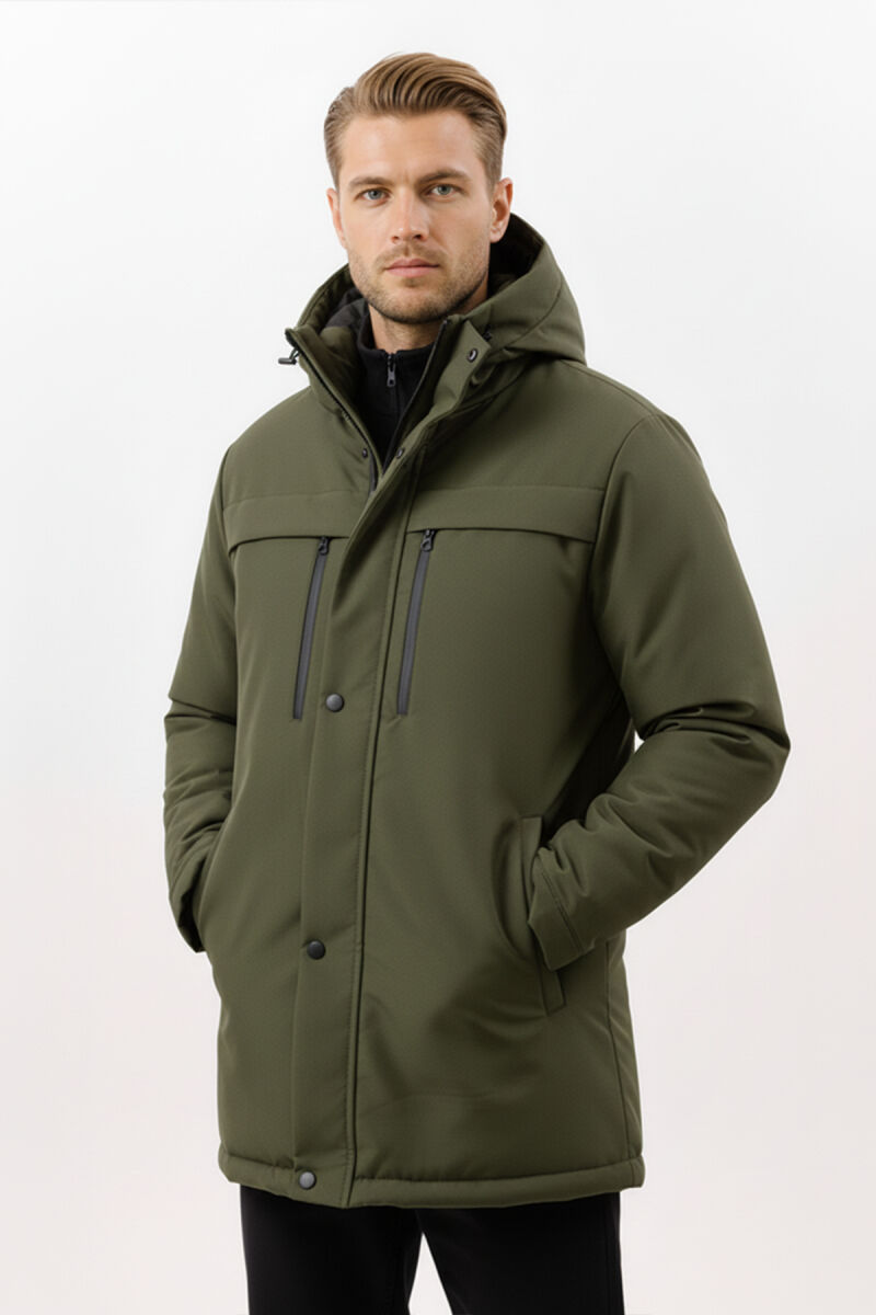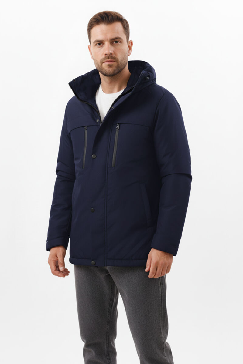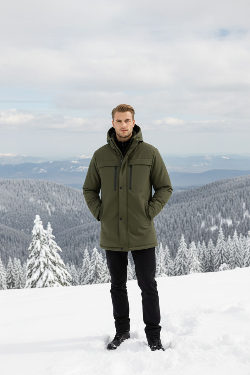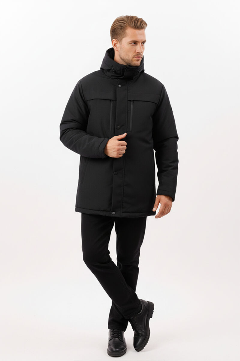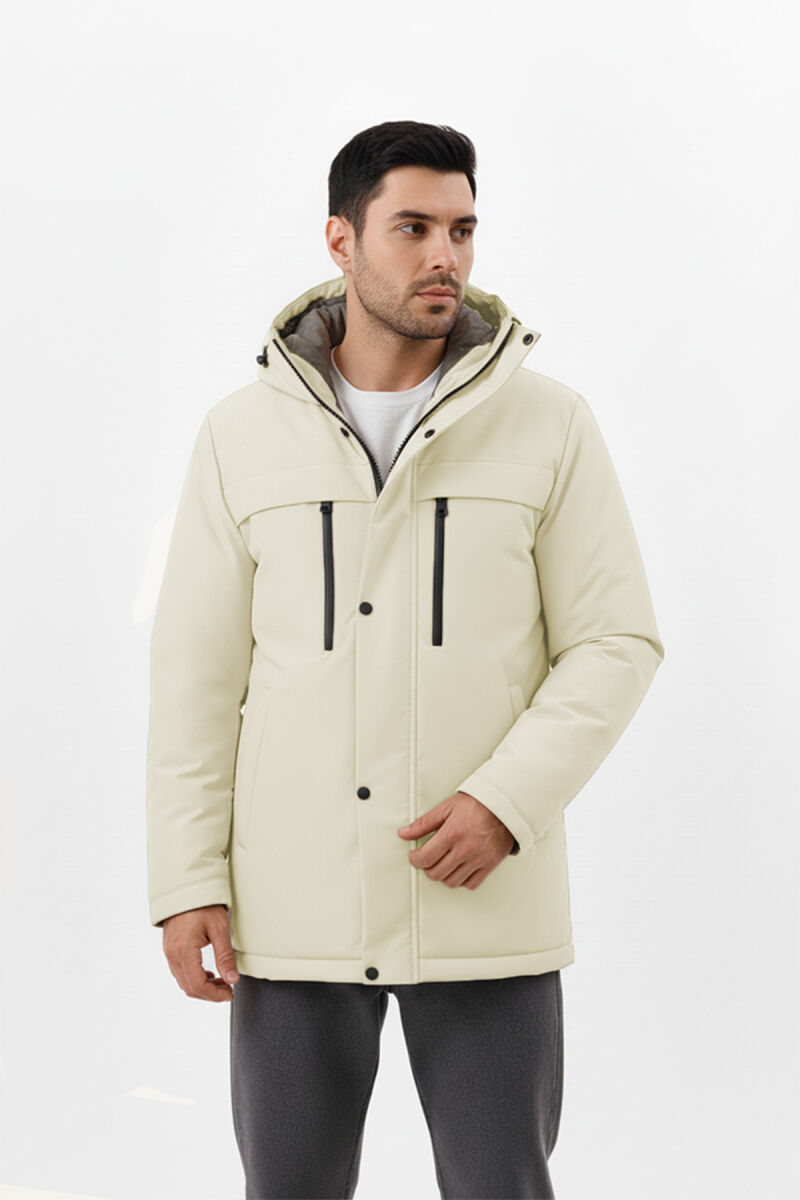 İçi Astarlı Su ve Rüzgar Geçirmez Cepli Kapüşonlu Erkek Mont