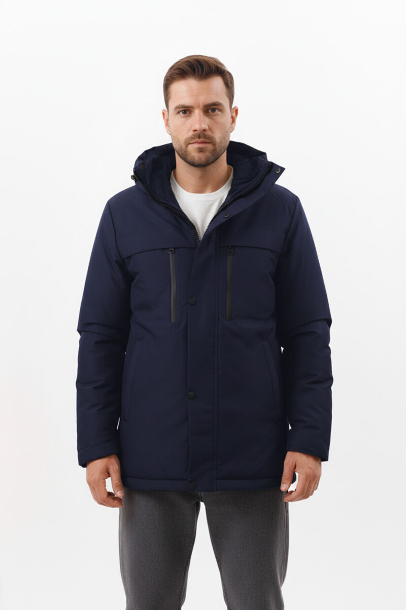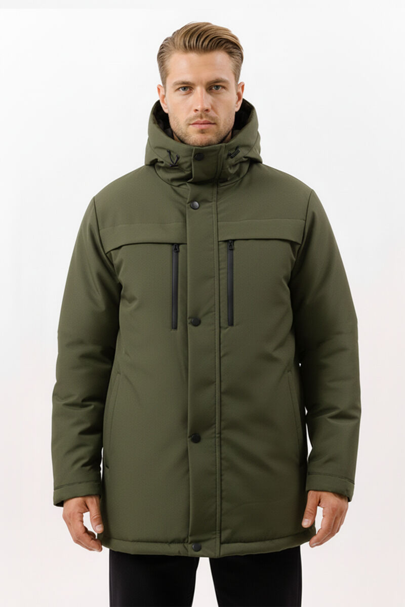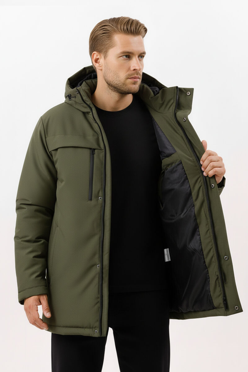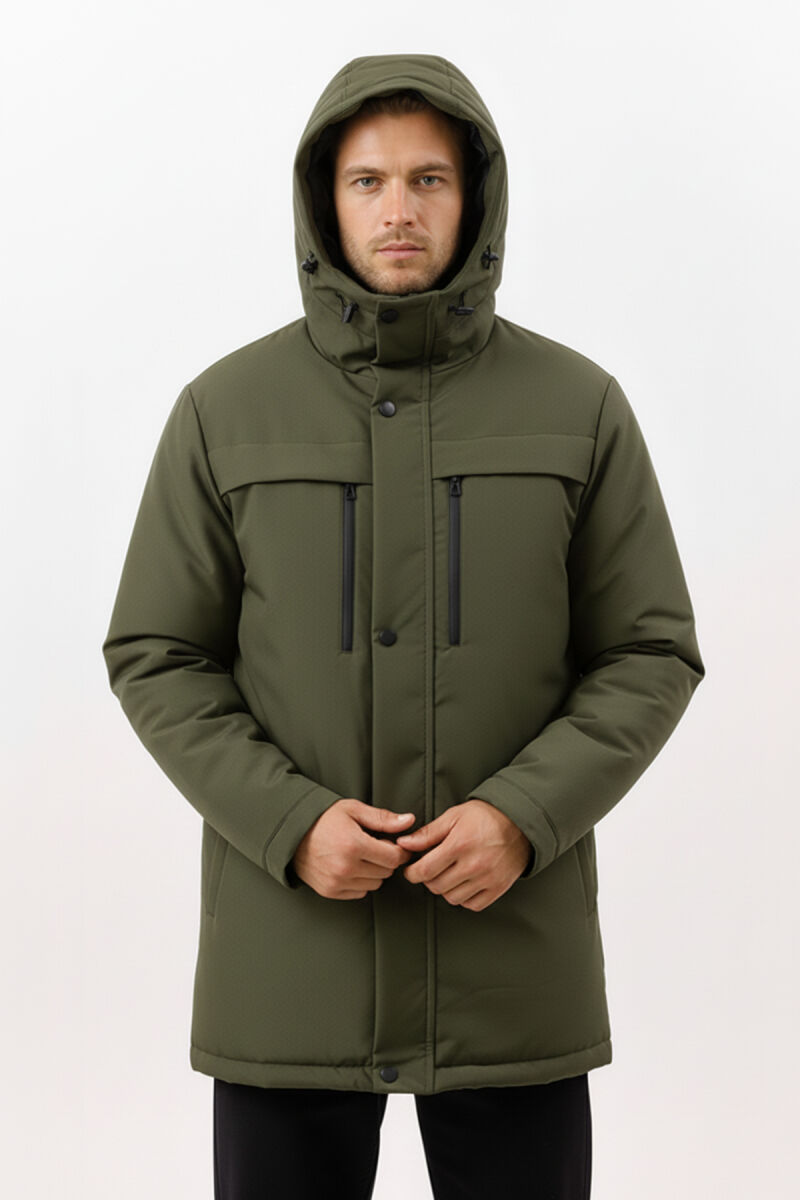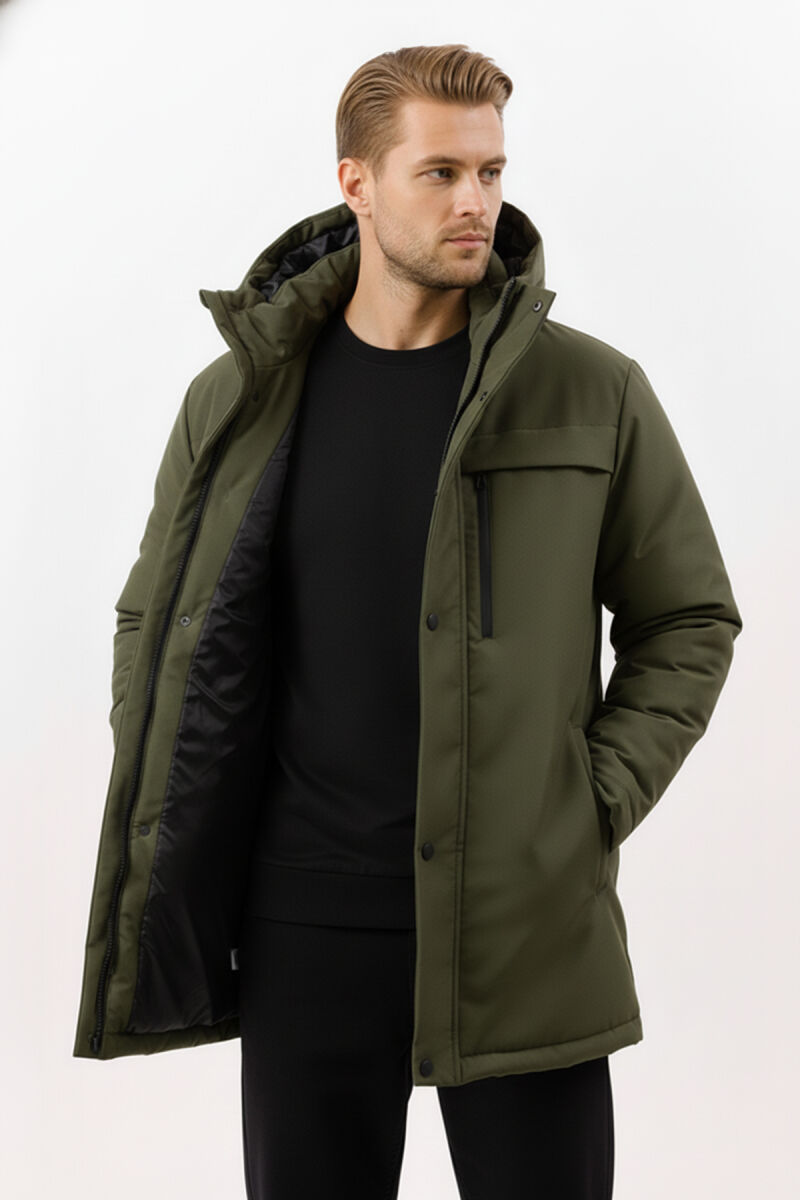 İçi Astarlı Su ve Rüzgar Geçirmez Cepli Kapüşonlu Erkek Mont