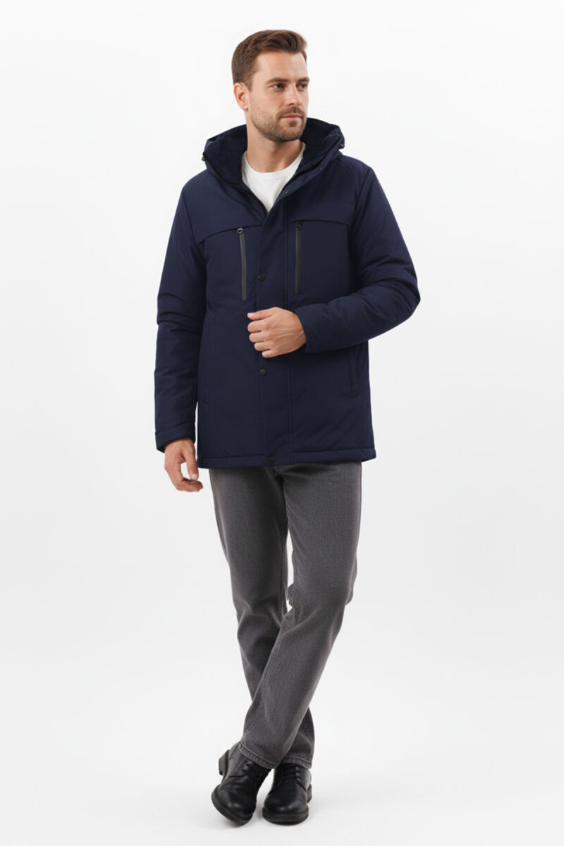 İçi Kürklü Su ve Rüzgar Geçirmez Cepli Kapüşonlu Erkek Mont