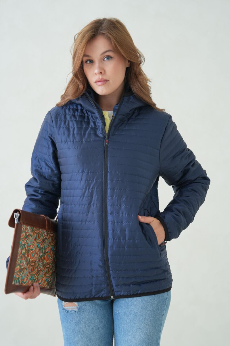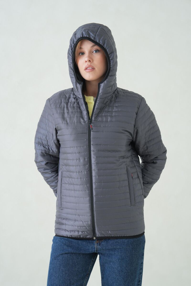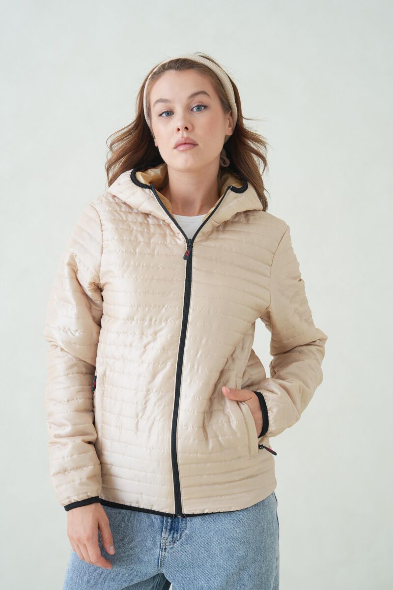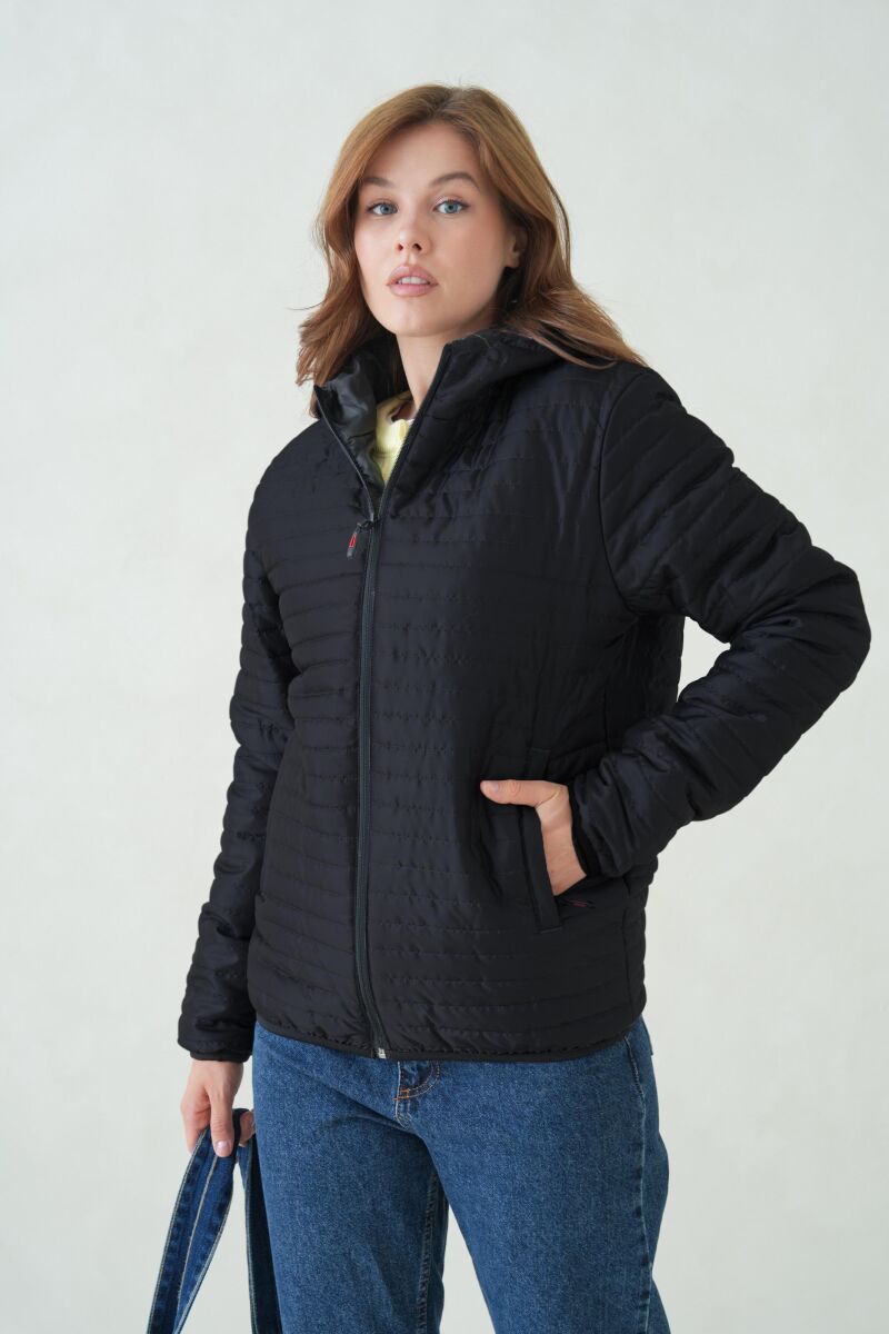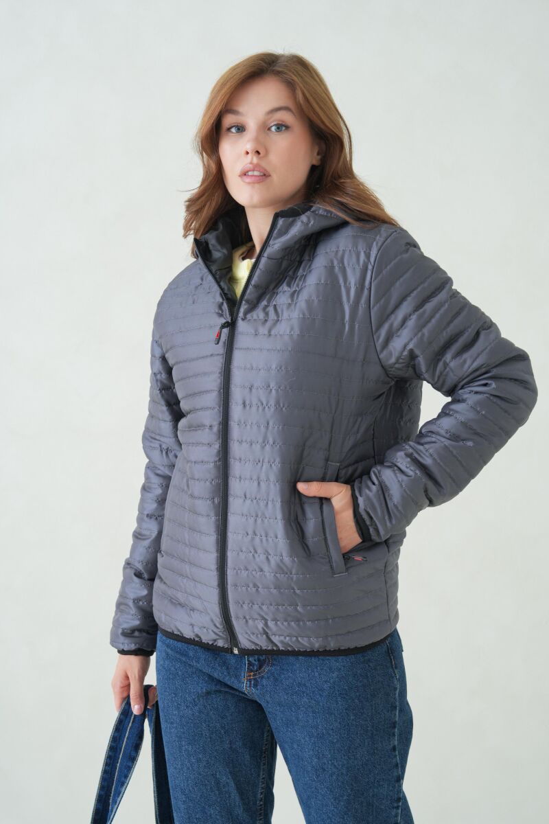 İçi Astarlı Cepli Jel Elyaf Su ve Rüzgar Geçirmez Şişme Kışlık Kadın Mont