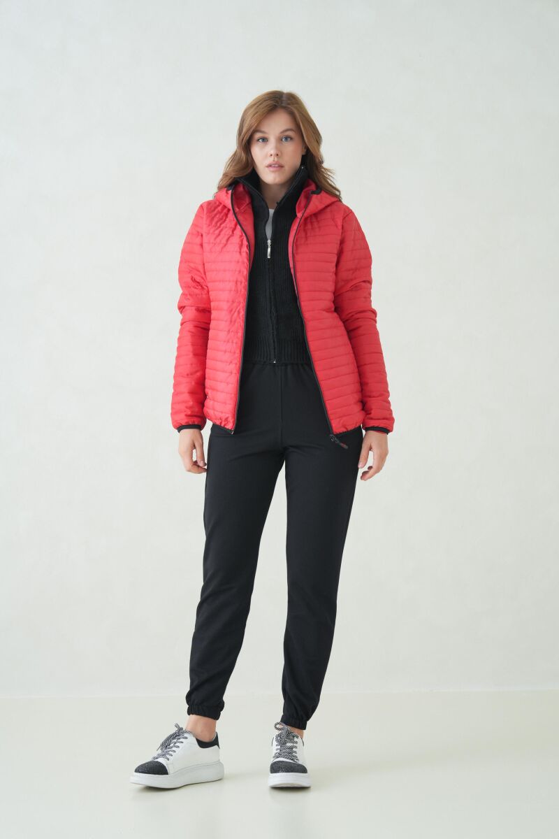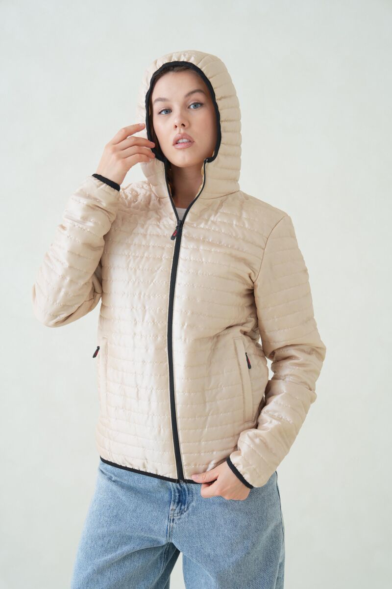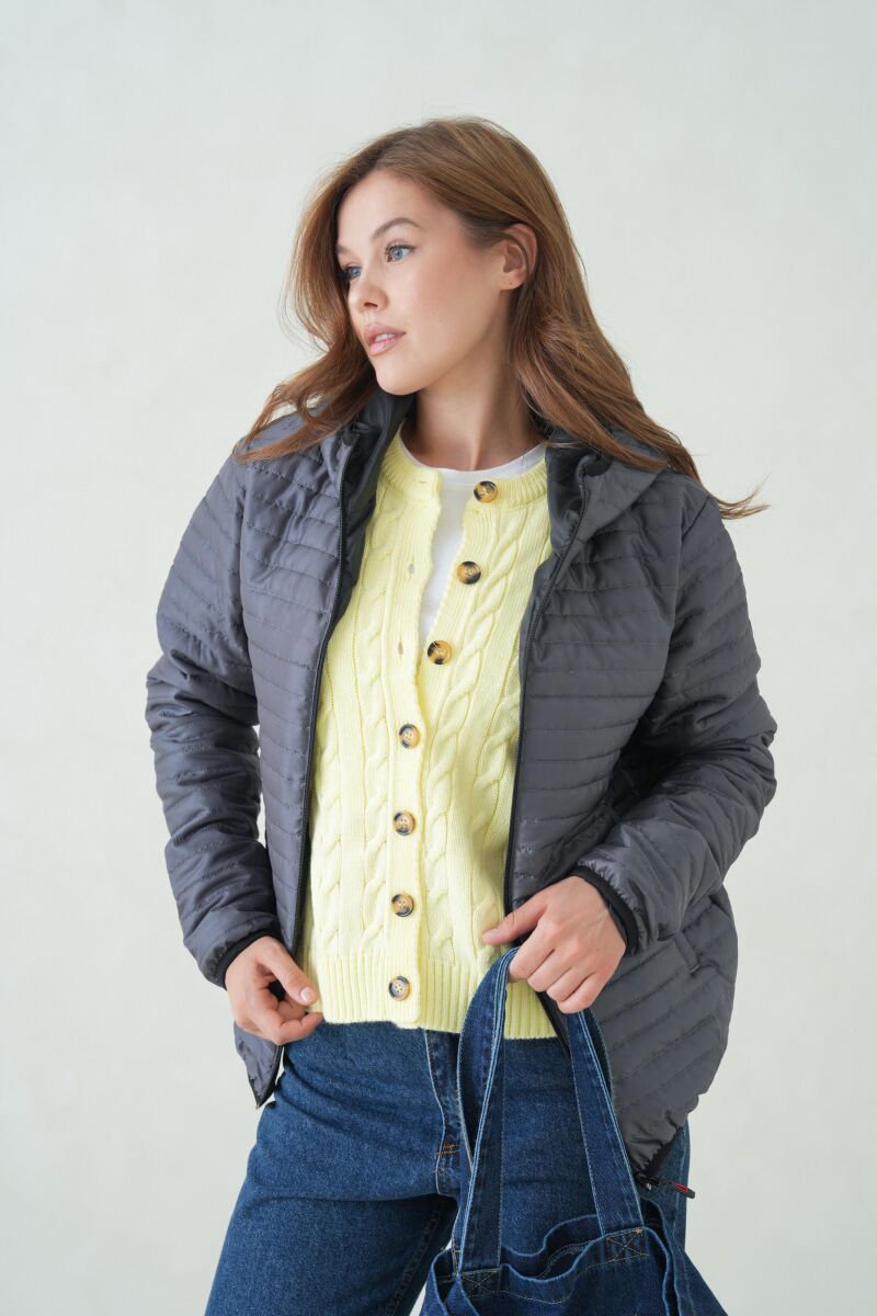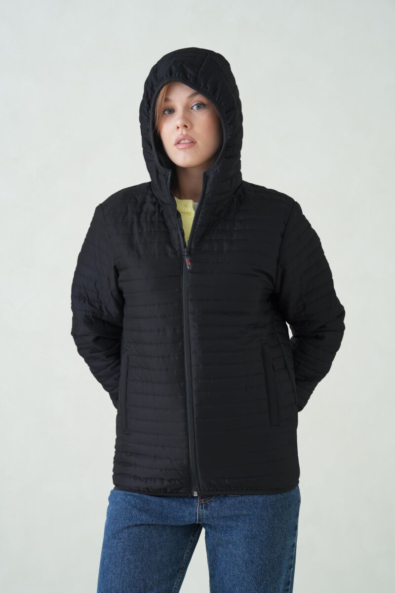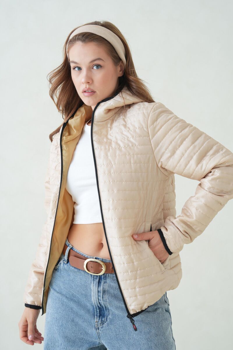 İçi Astarlı Cepli Jel Elyaf Su ve Rüzgar Geçirmez Şişme Kışlık Kadın Mont