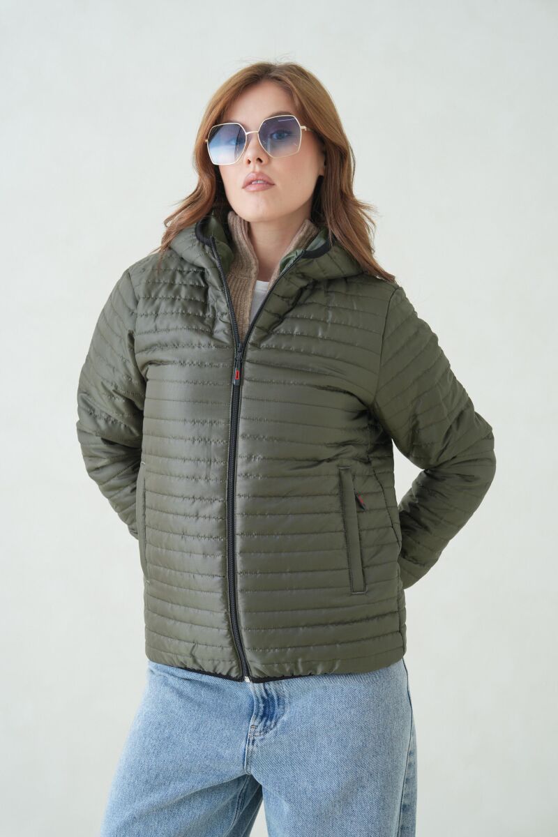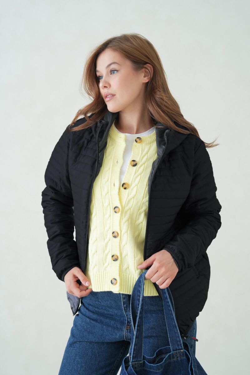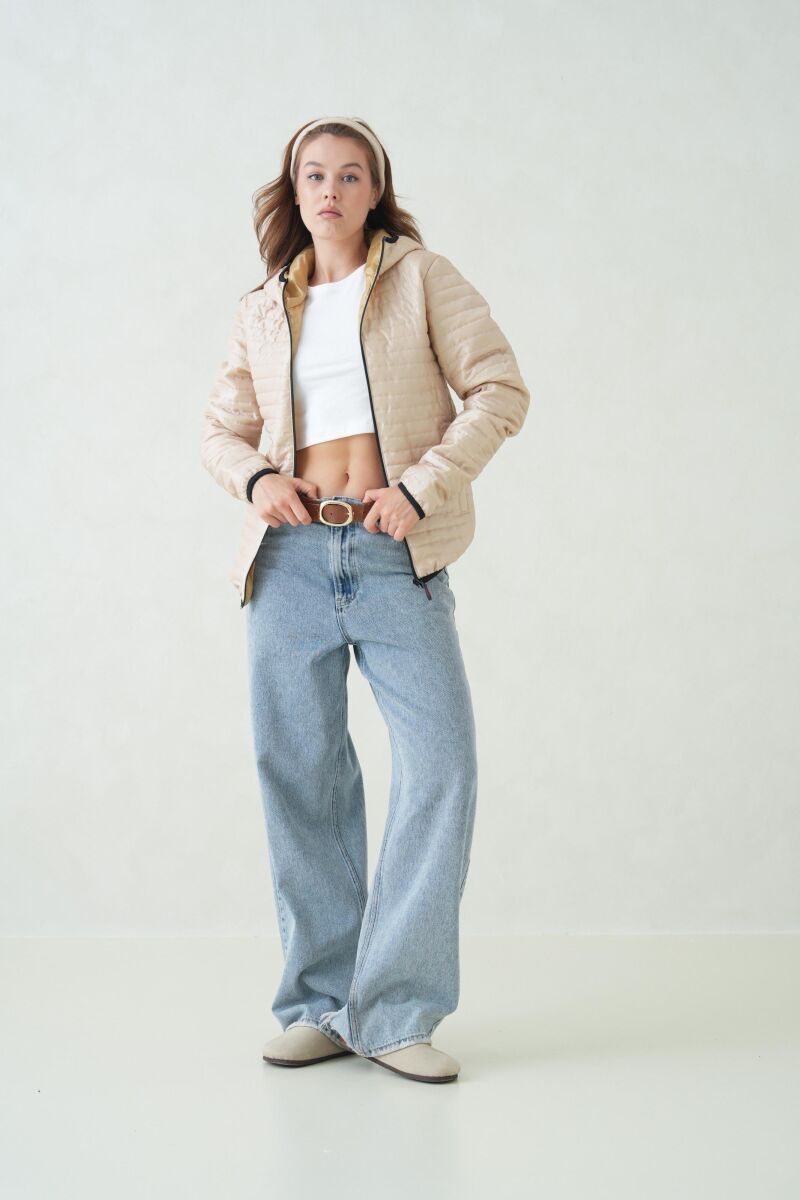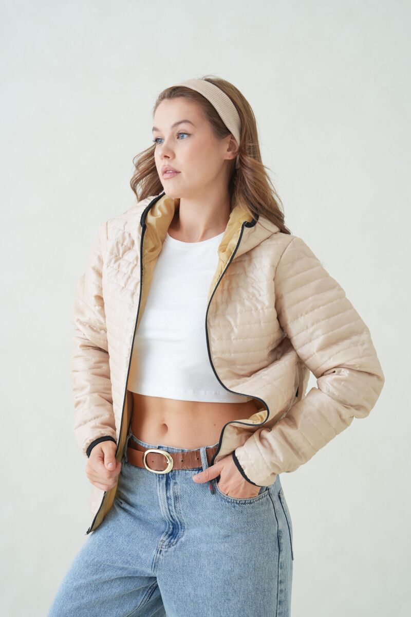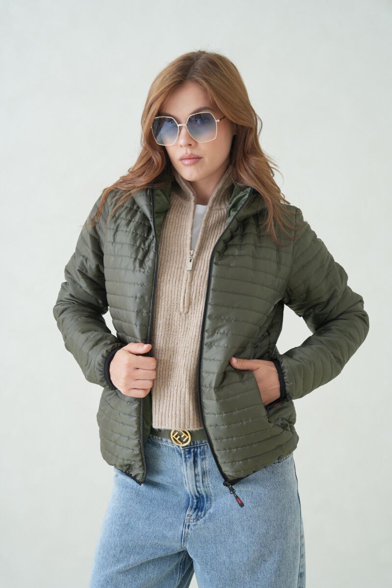İçi Astarlı Cepli Jel Elyaf Su ve Rüzgar Geçirmez Şişme Kışlık Kadın Mont