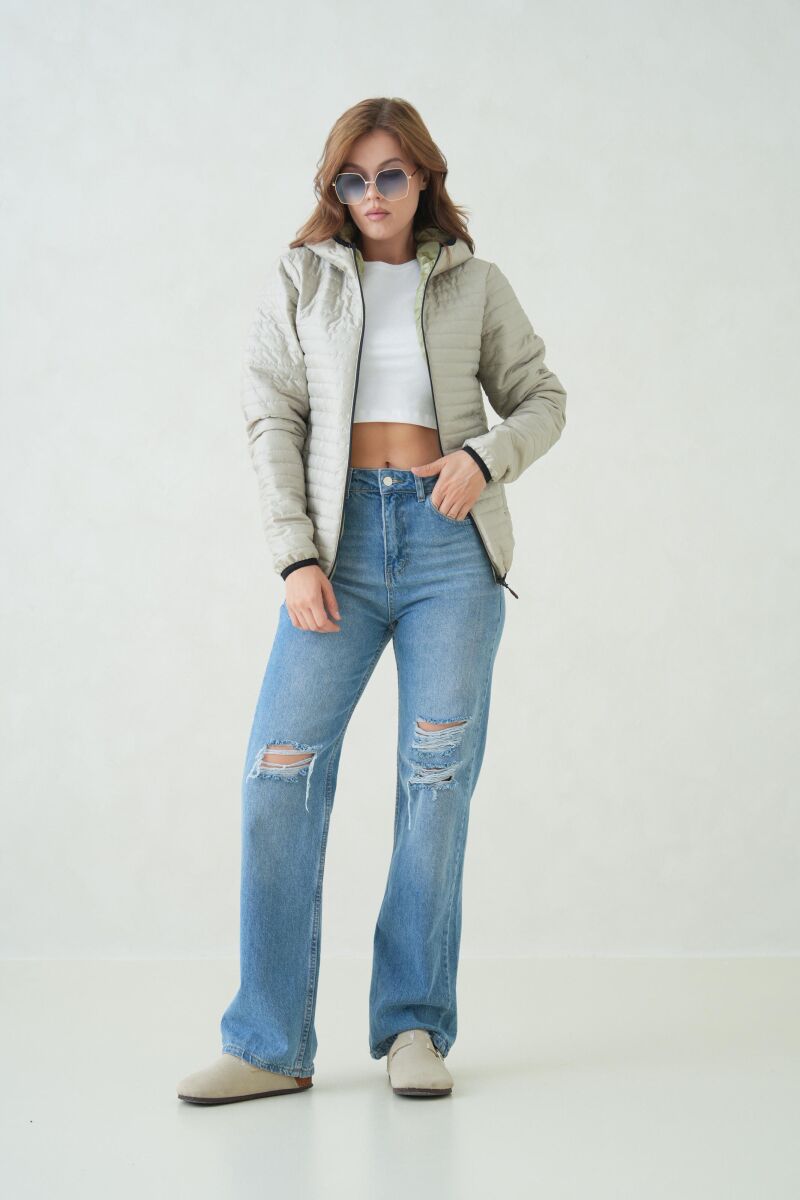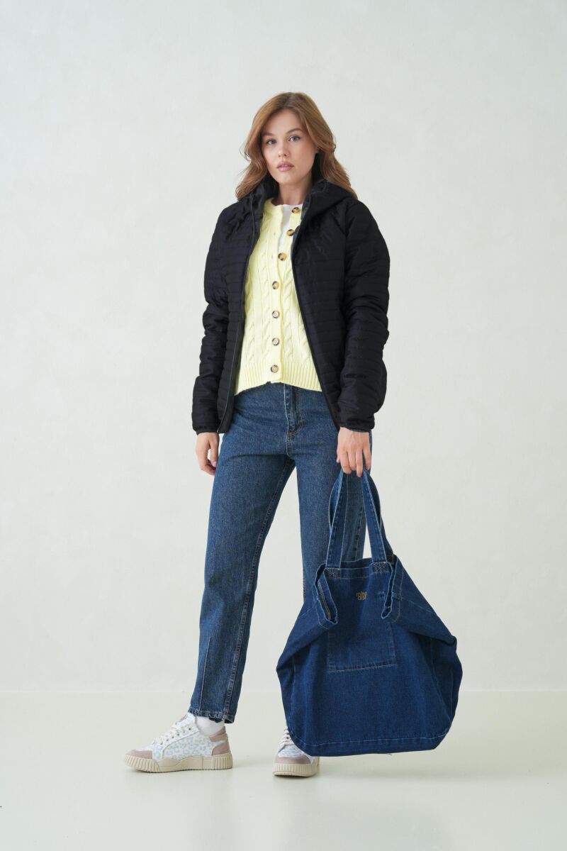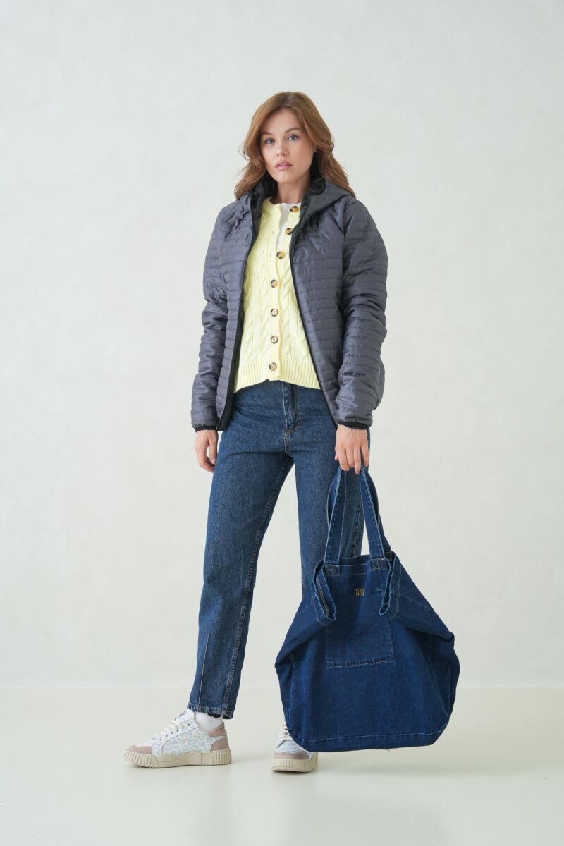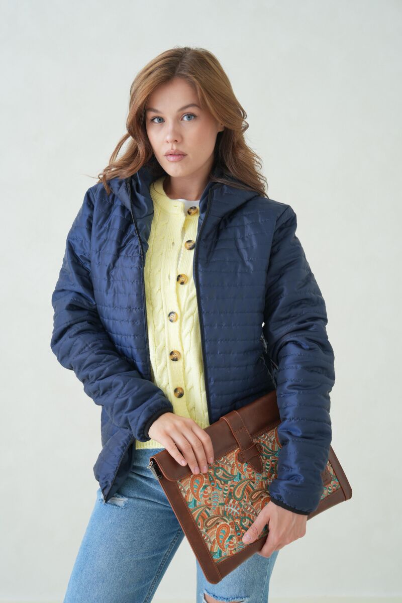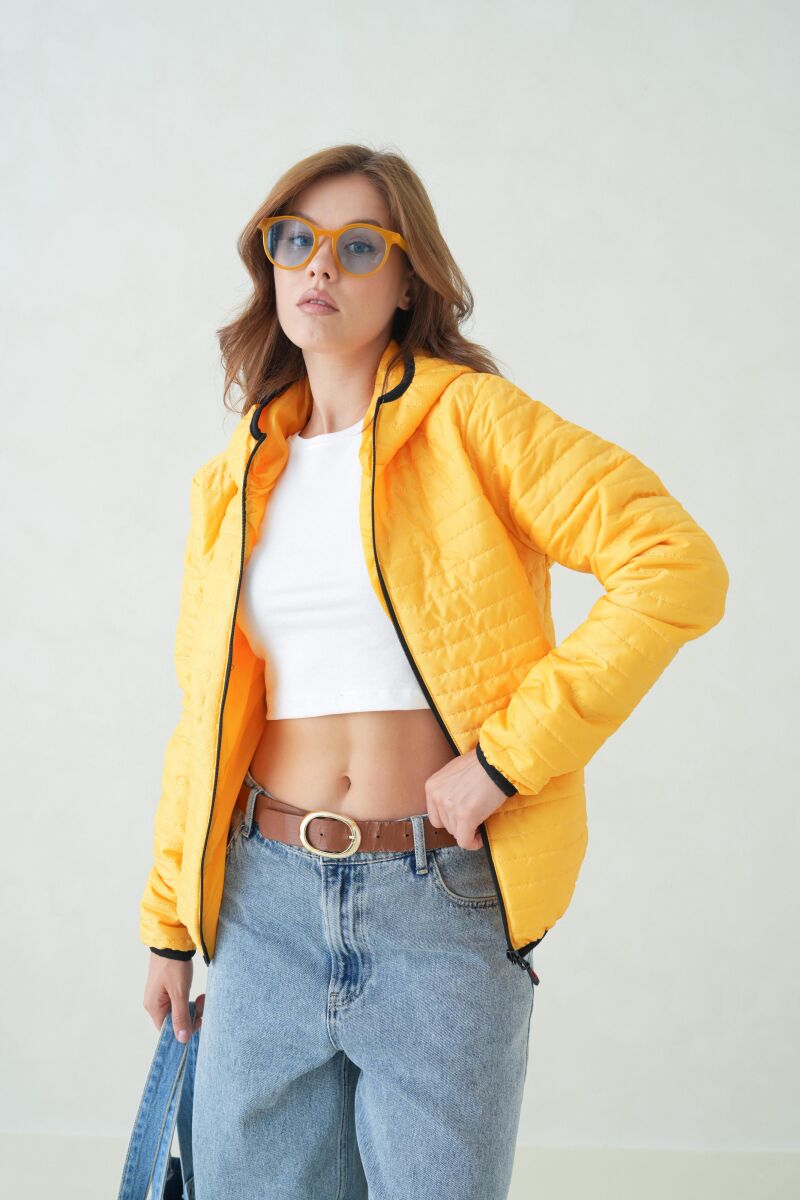 İçi Astarlı Cepli Jel Elyaf Su ve Rüzgar Geçirmez Şişme Kışlık Kadın Mont