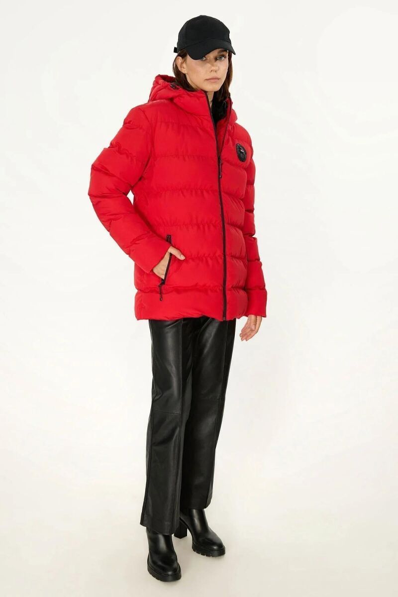 İçi Astarlı Cepli Jel Elyaf Su ve Rüzgar Geçirmez Şişme Kışlık Kadın Mont