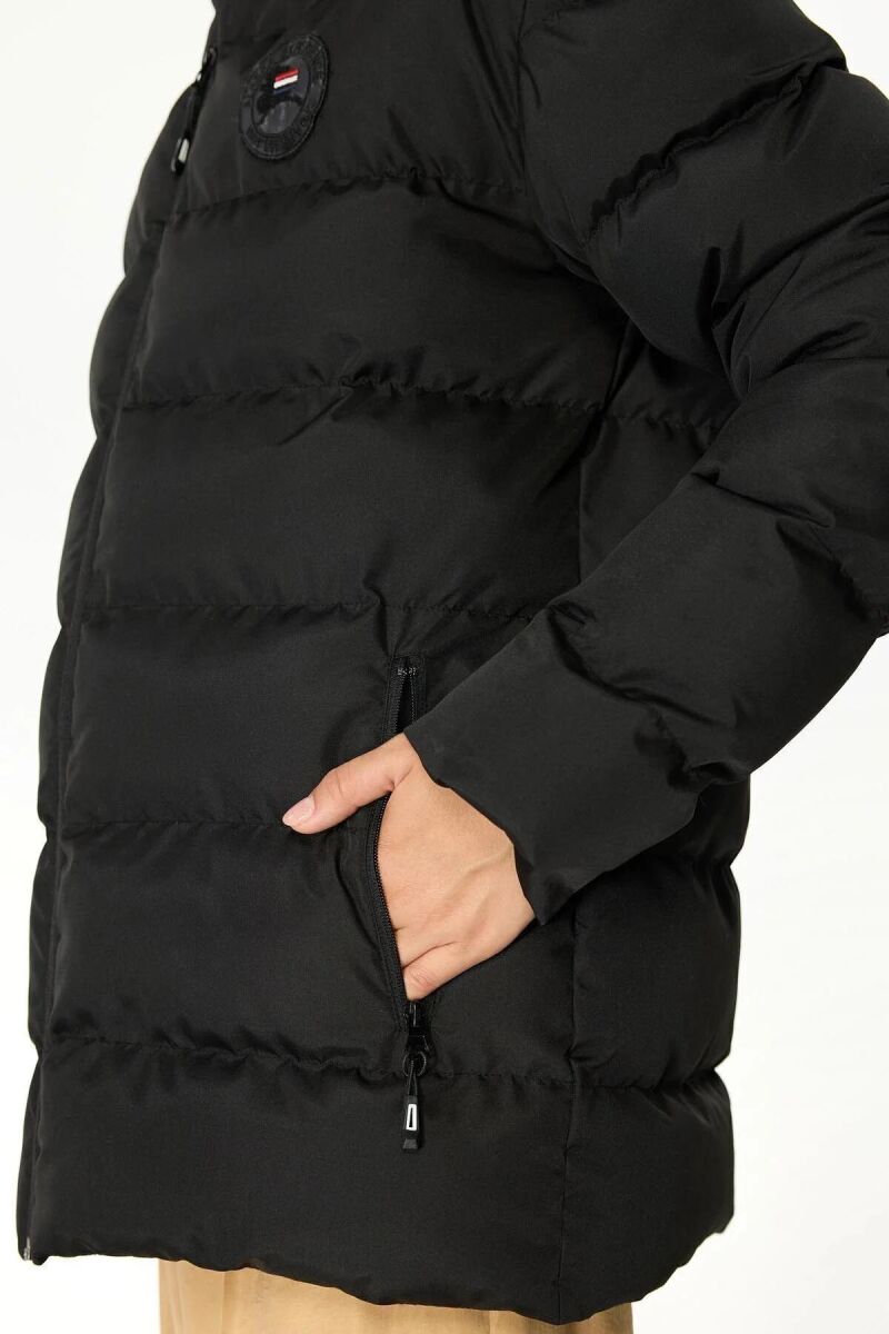 İçi Kürklü Su ve Rüzgar Geçirmez Cepli Kapüşonlu Kadın Mont