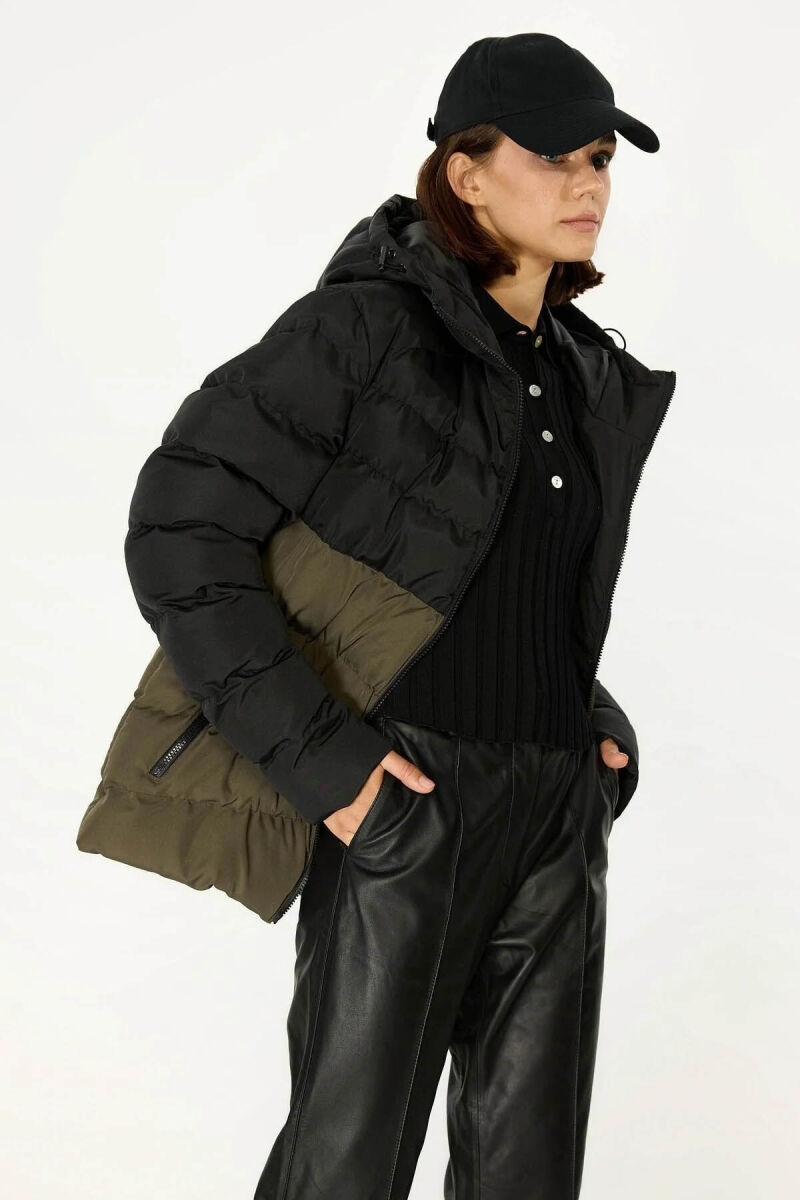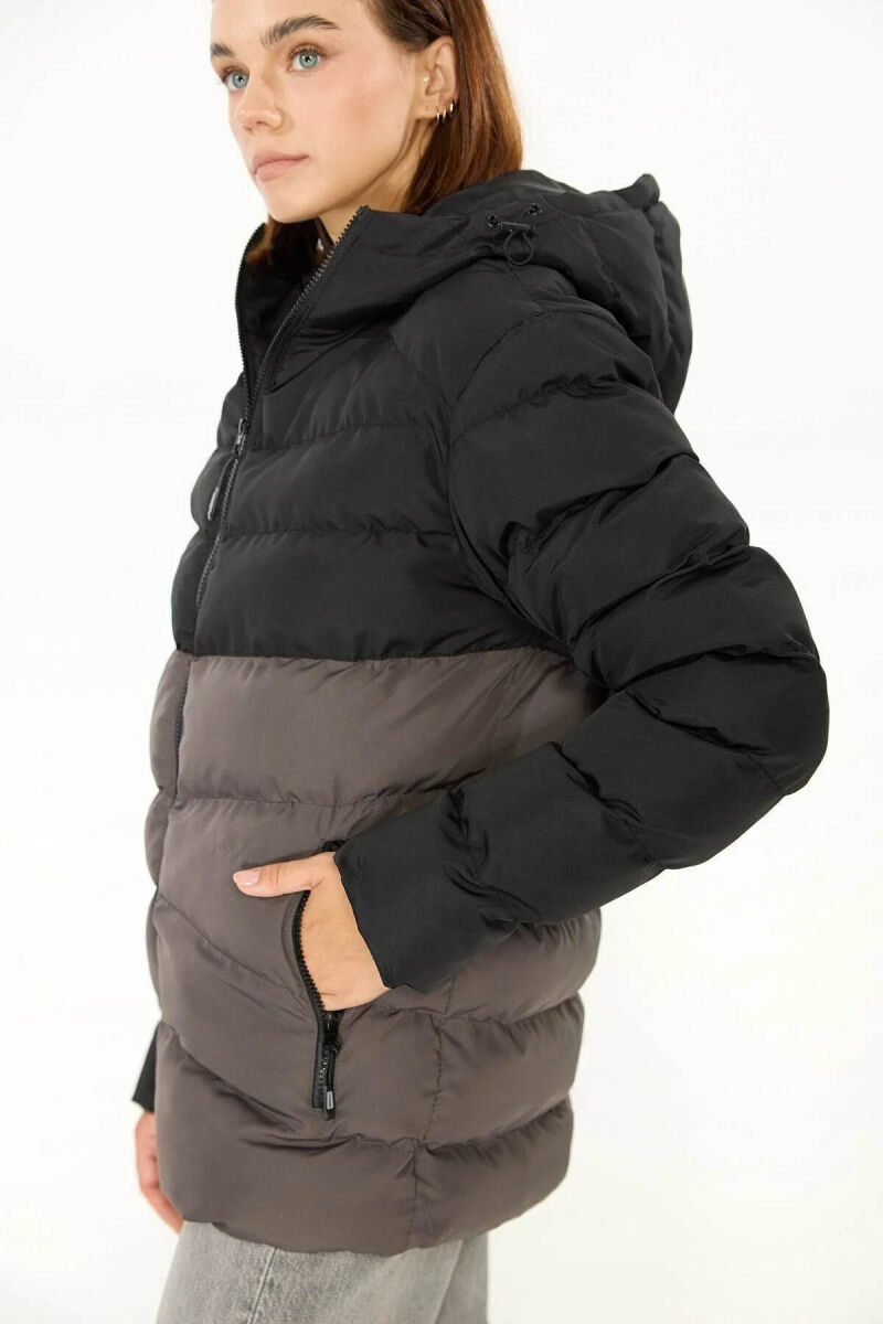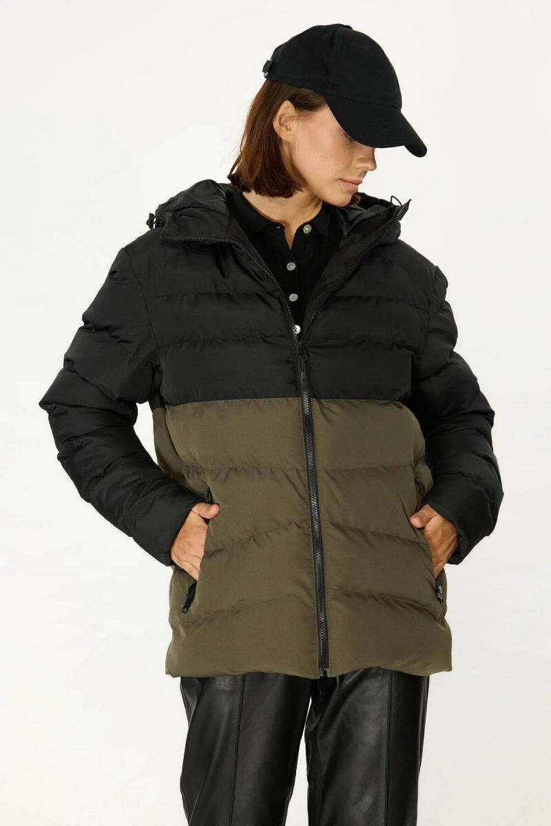 İçi Astarlı Cepli Jel Elyaf Su ve Rüzgar Geçirmez Şişme Kışlık Kadın Mont
