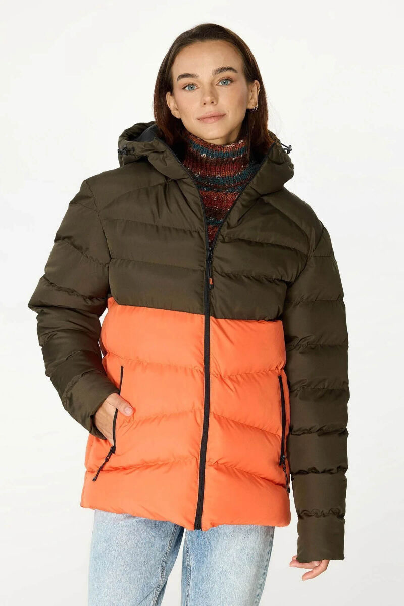 İçi Astarlı Su ve Rüzgar Geçirmez Cepli Kapüşonlu Kadın Mont