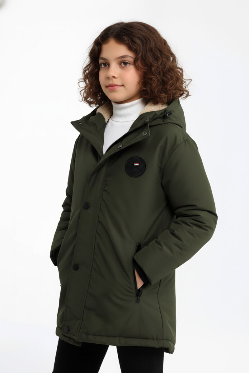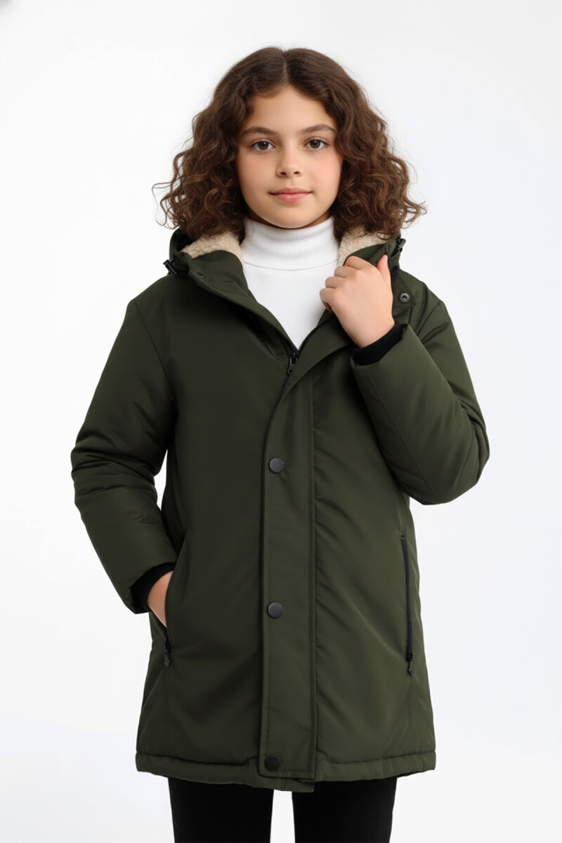 İçi Kürklü Su ve Rüzgar Geçirmez Kapüşonlu Kız Çocuk Mont