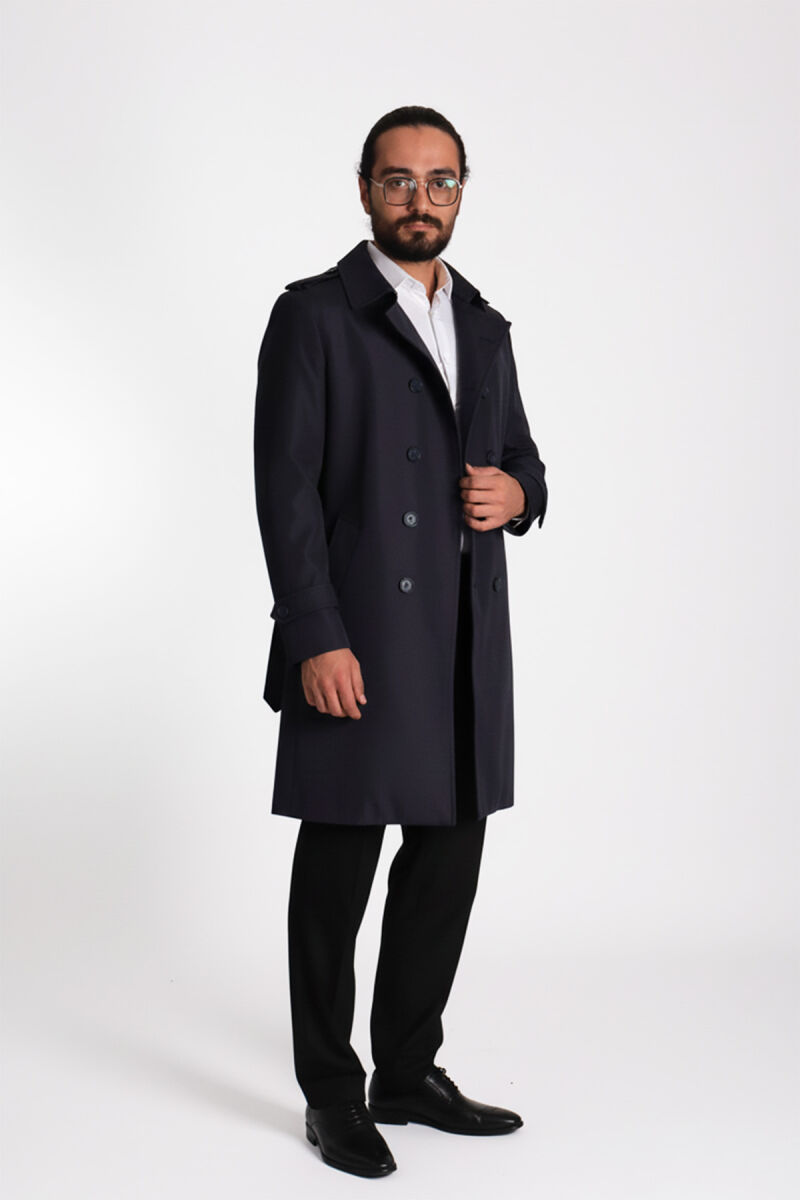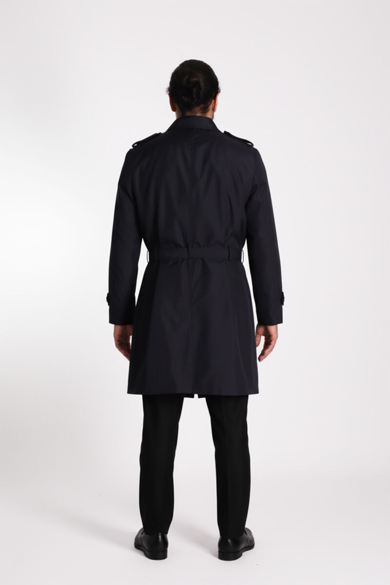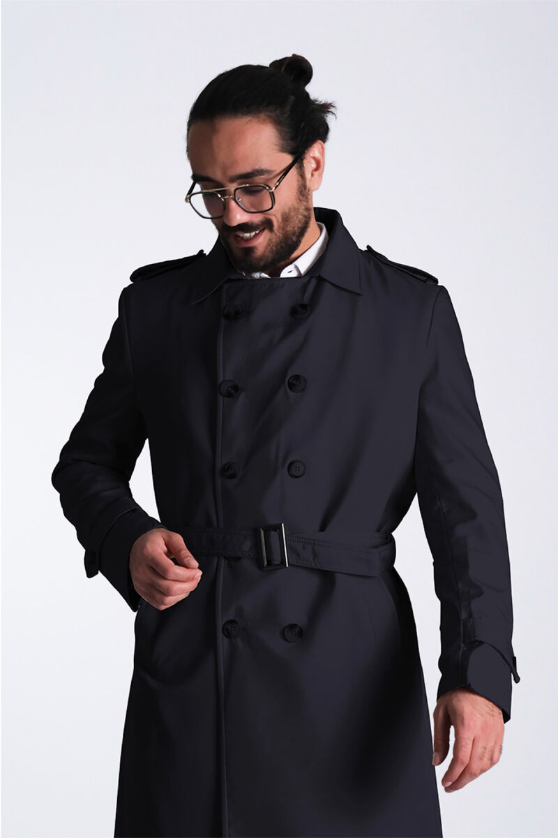 Regular Fit Kruvaze Kapama Kemerli Apoletli Uzun Trençkot