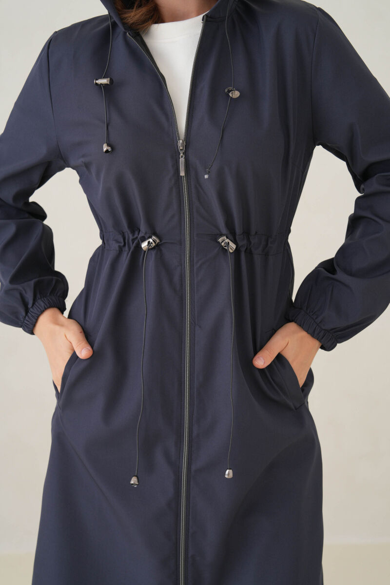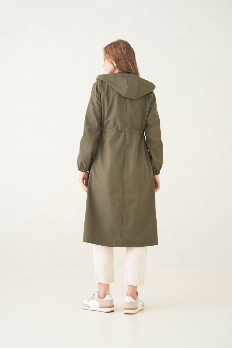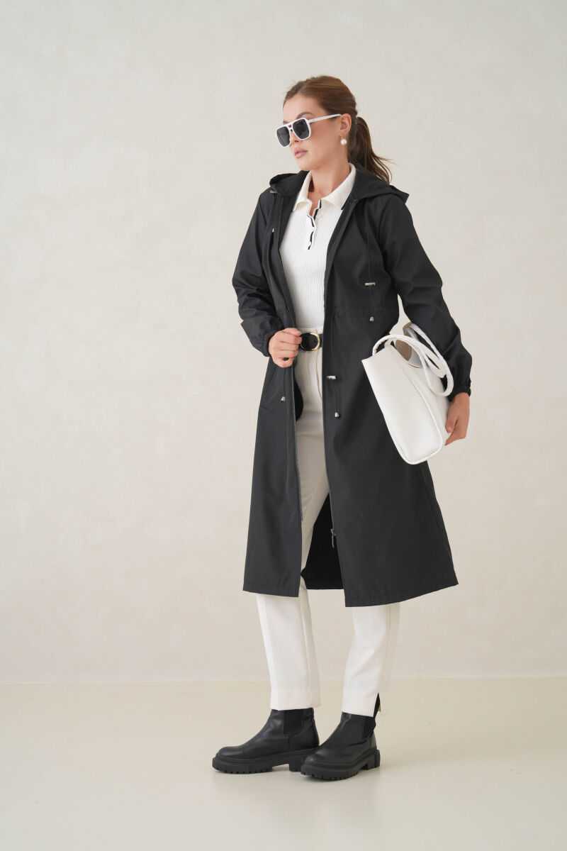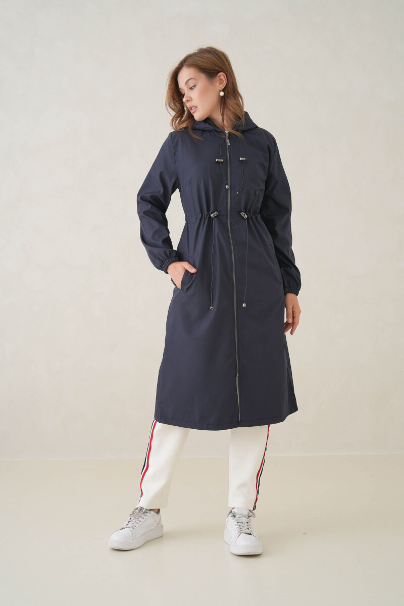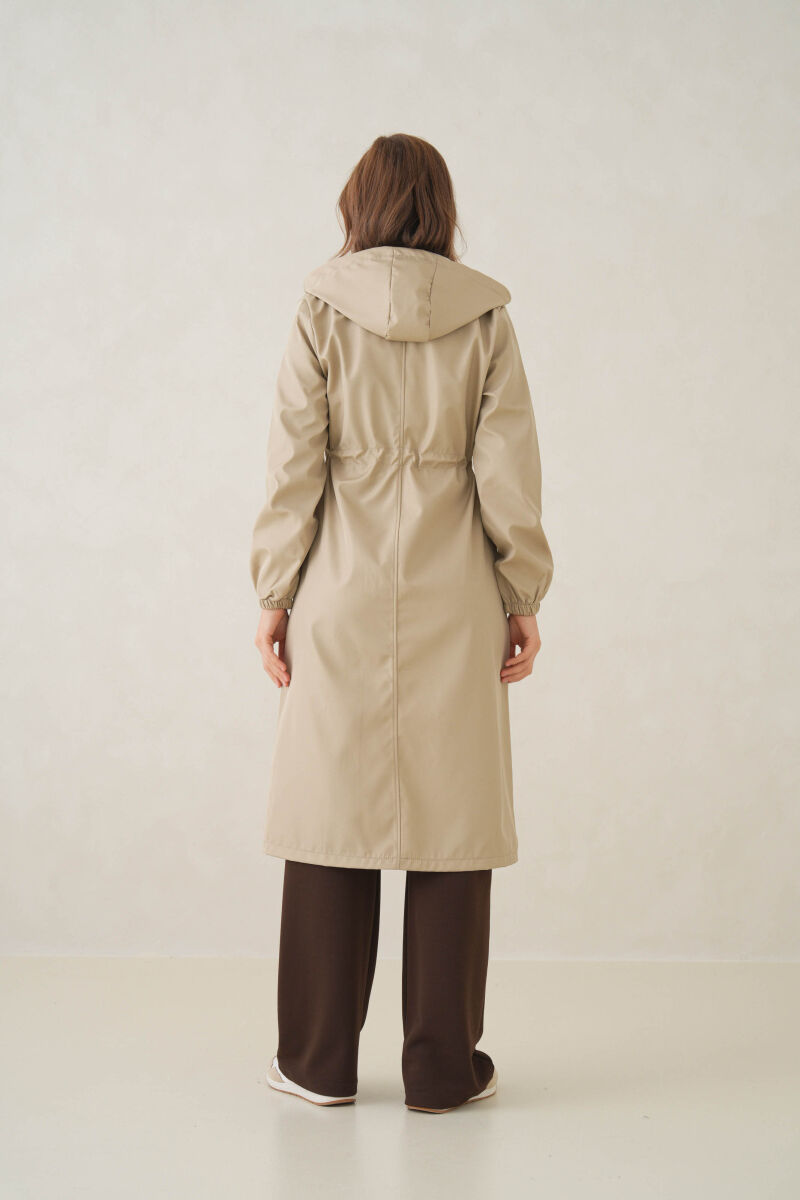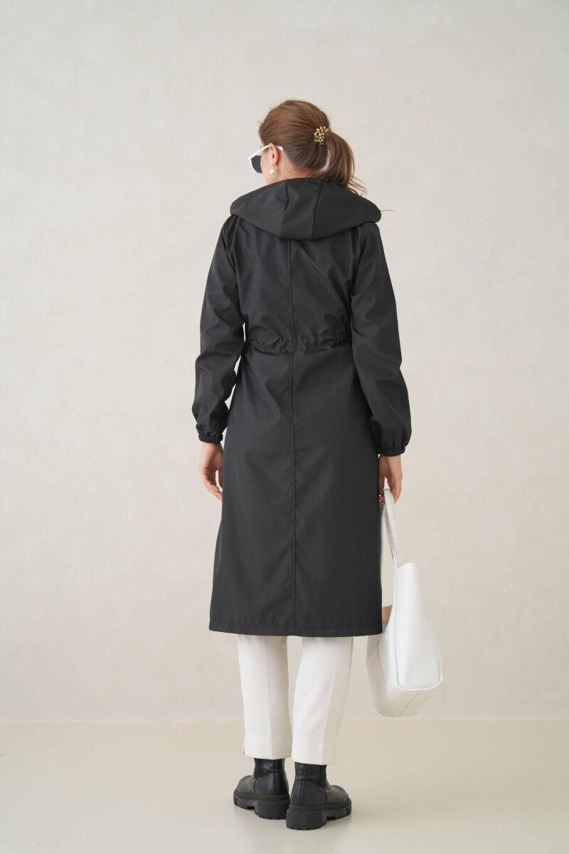 Su Geçirmez Kapüşonlu Fermuarlı Sık Dokuma Kadın Trençkot