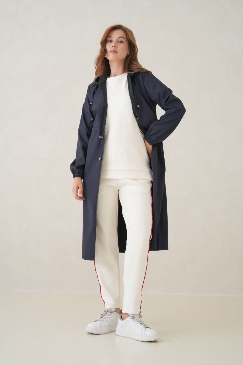İçi Astarlı Su Geçirmez Kapüşonlu Fermuarlı Sık Dokuma Kadın Trençkot
