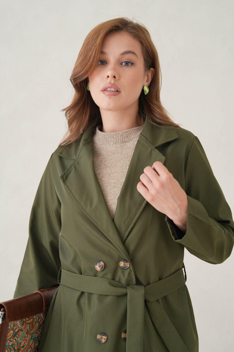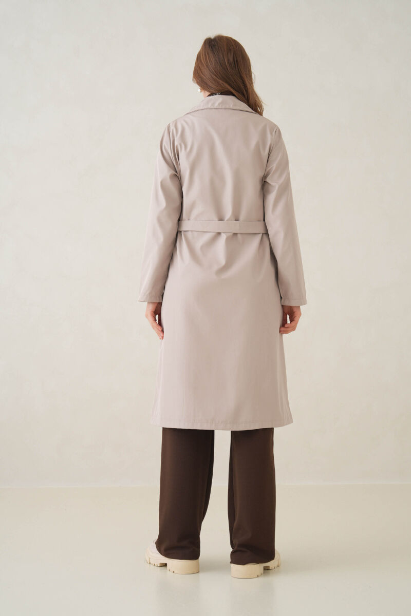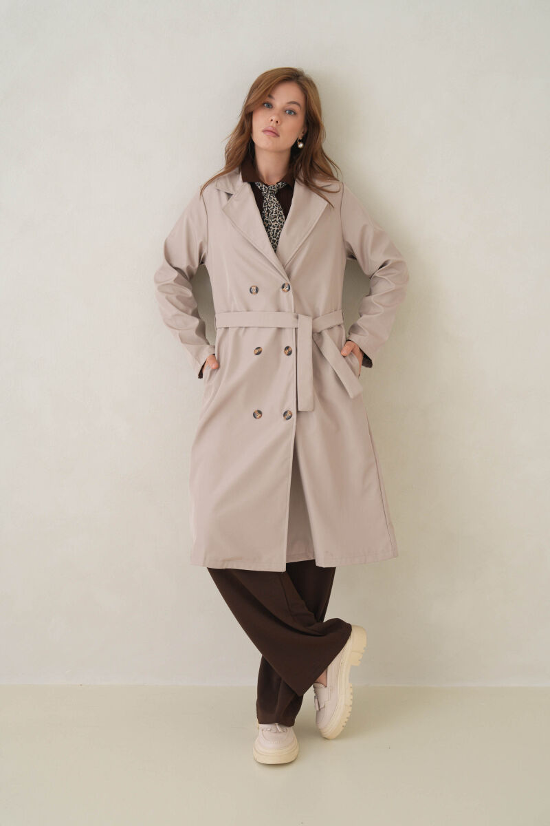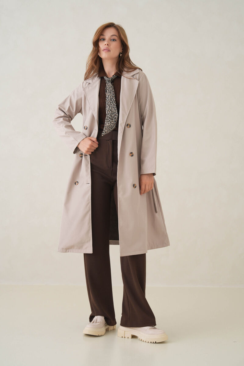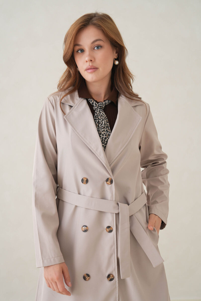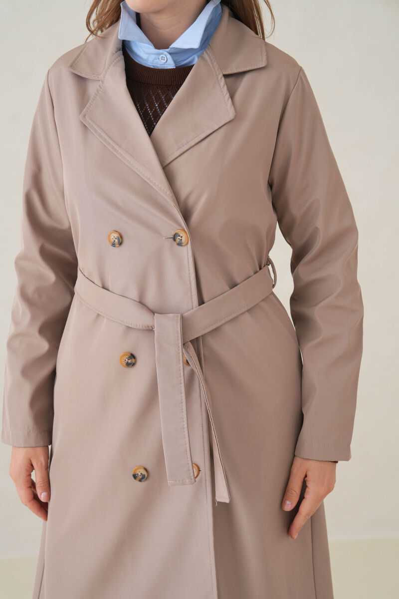 Su Geçirmez Kruvaze Yaka Sık Dokuma Kadın Trençkot