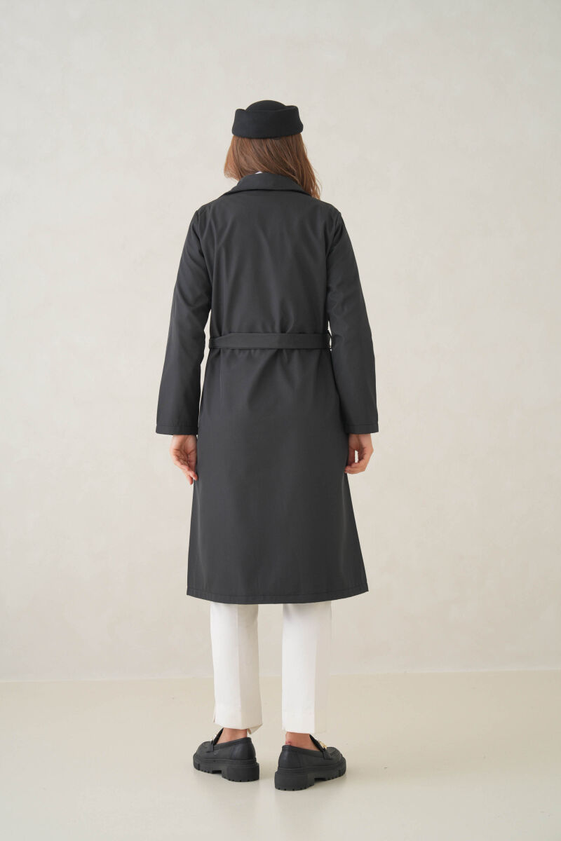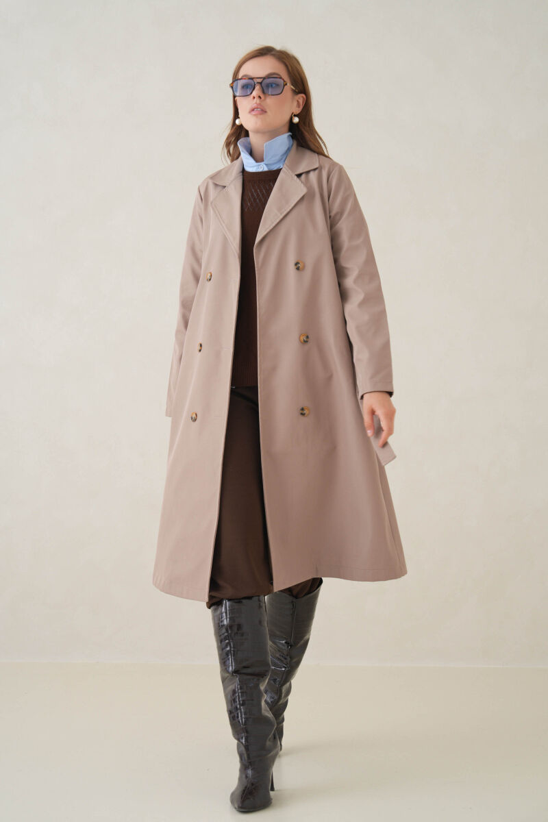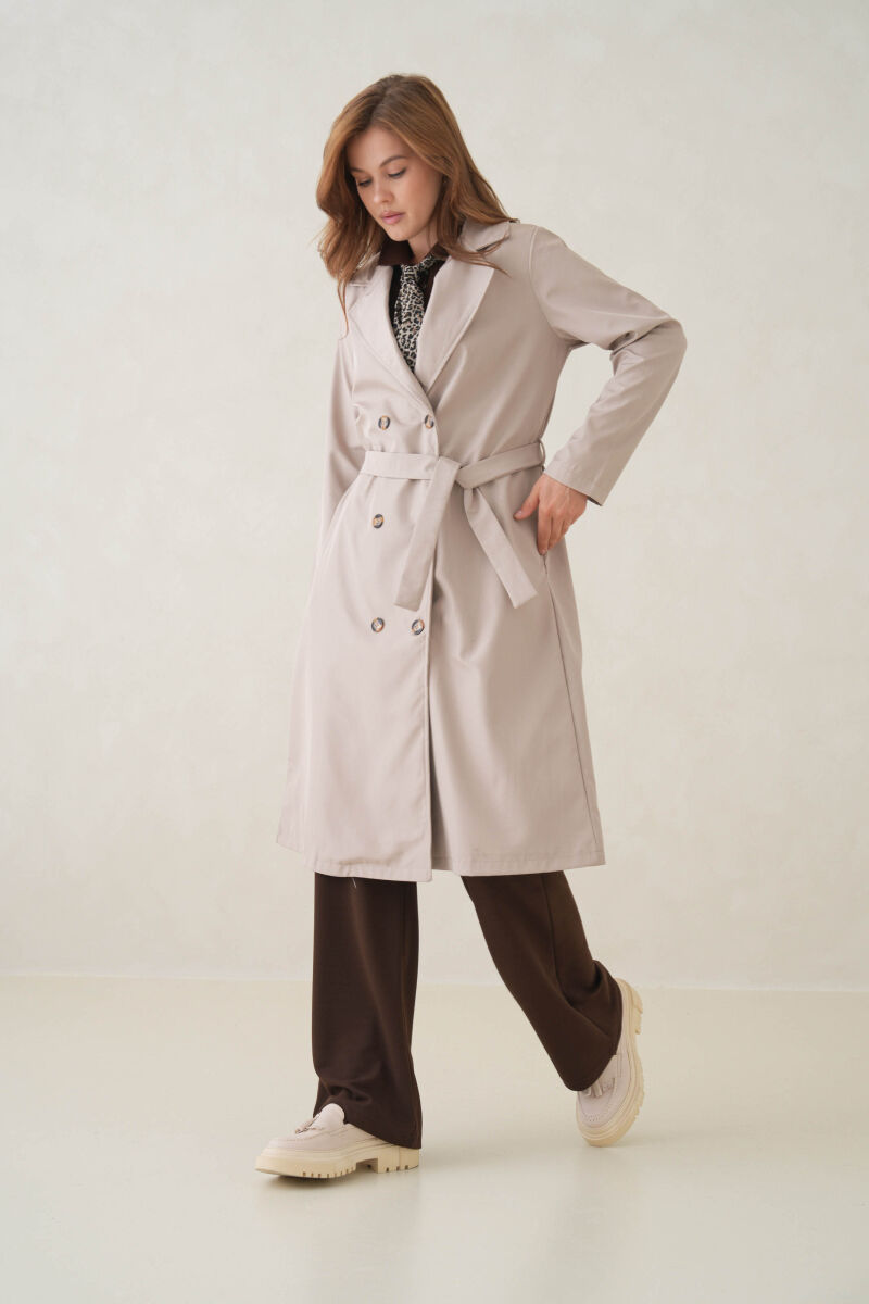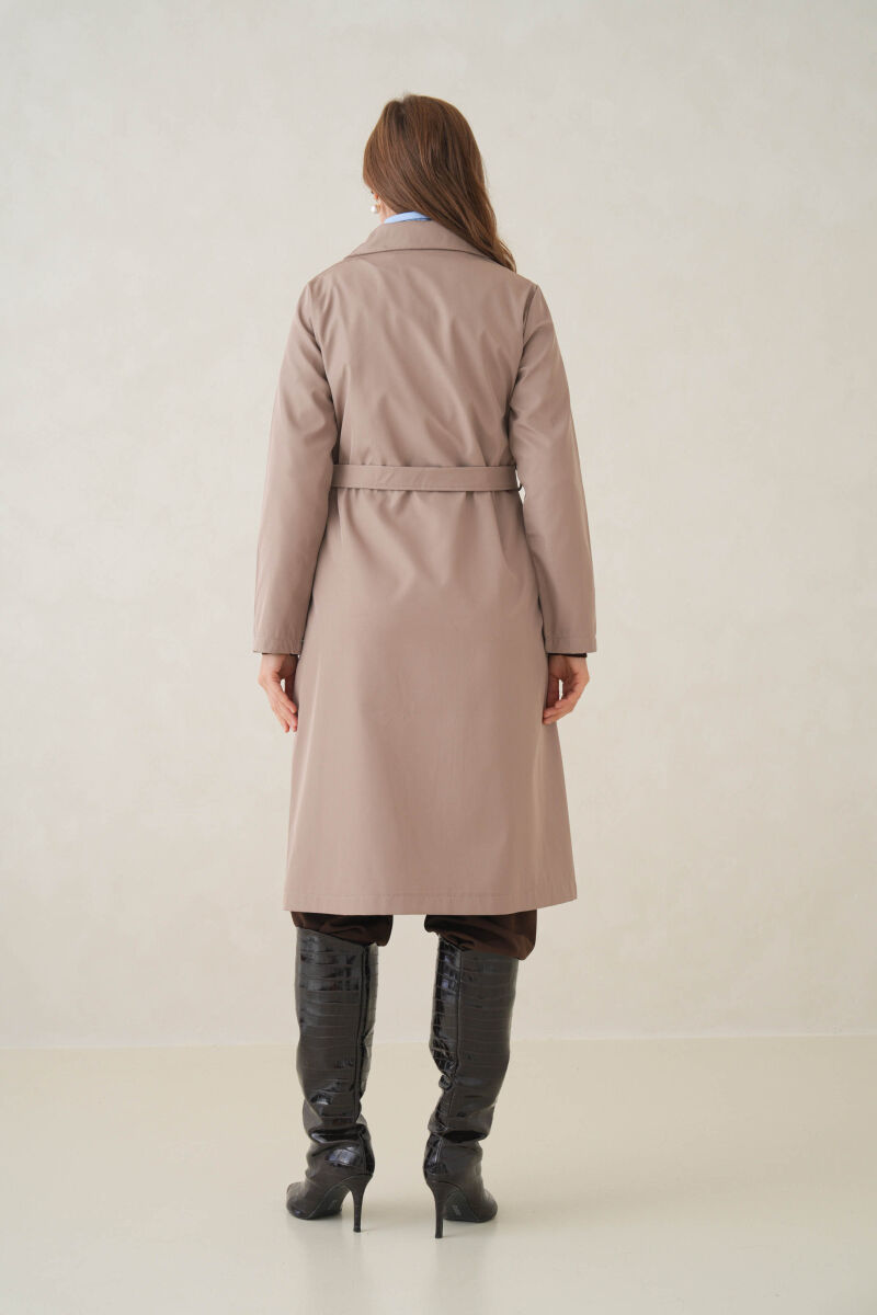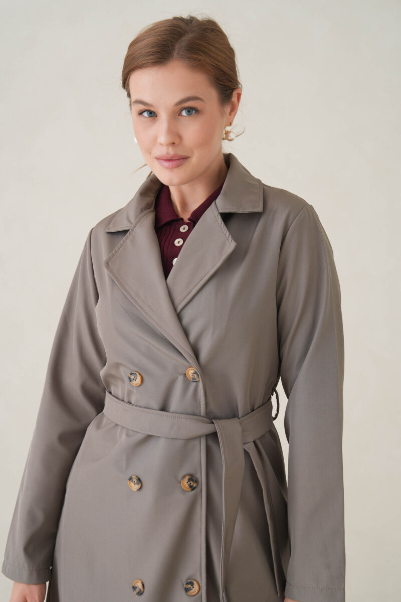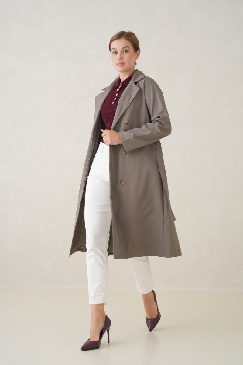Su Geçirmez Kruvaze Yaka Sık Dokuma Kadın Trençkot