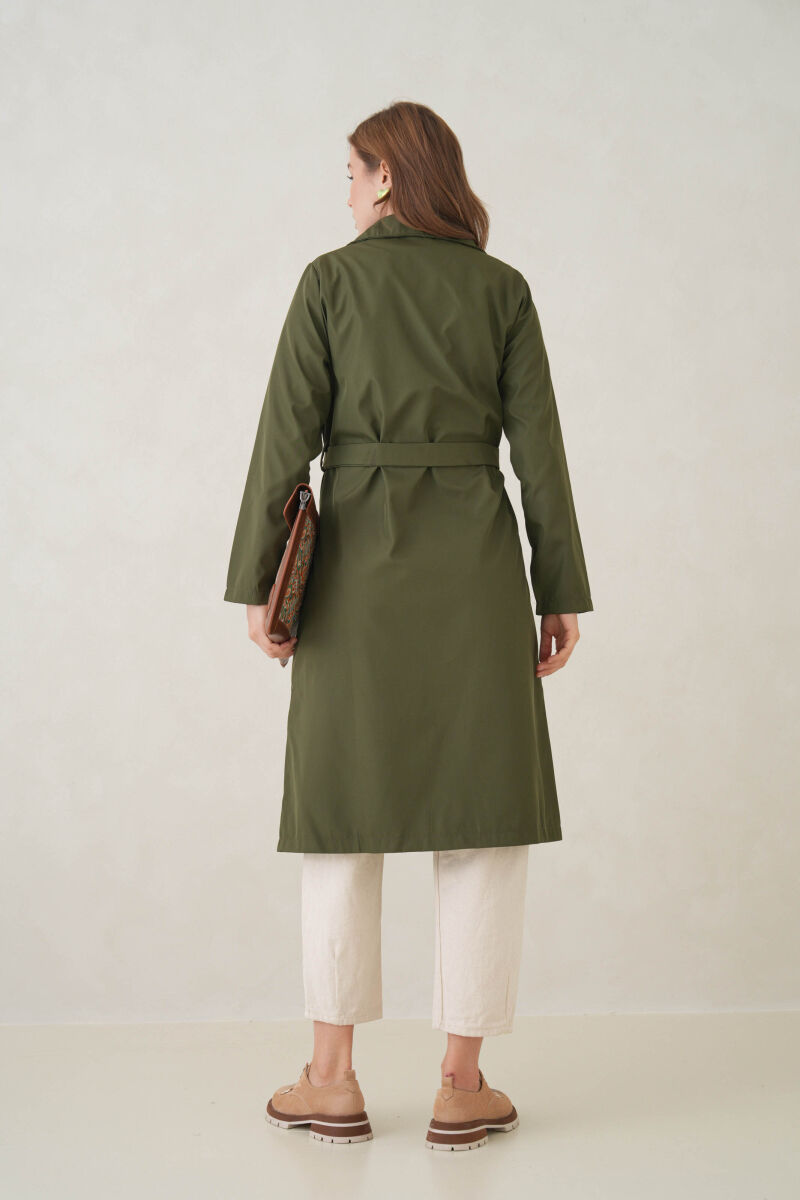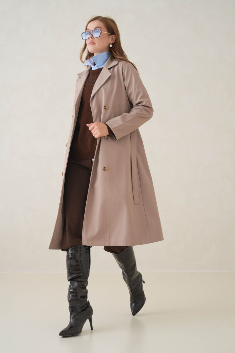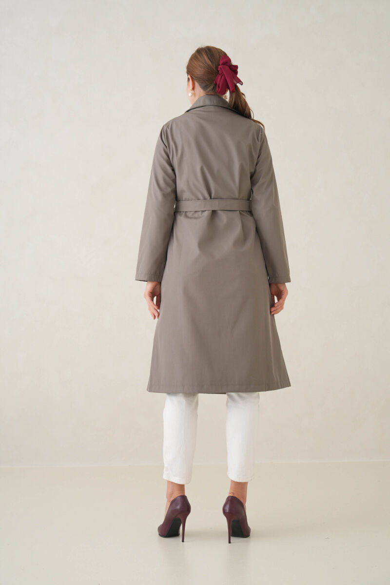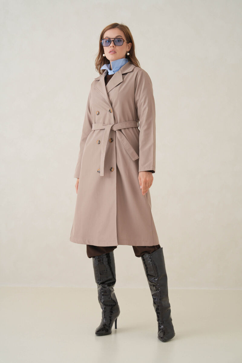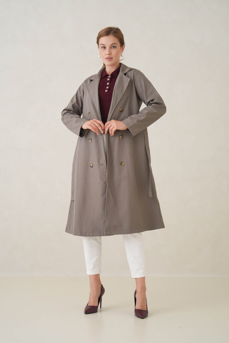 Su Geçirmez Kruvaze Yaka Sık Dokuma Kadın Trençkot