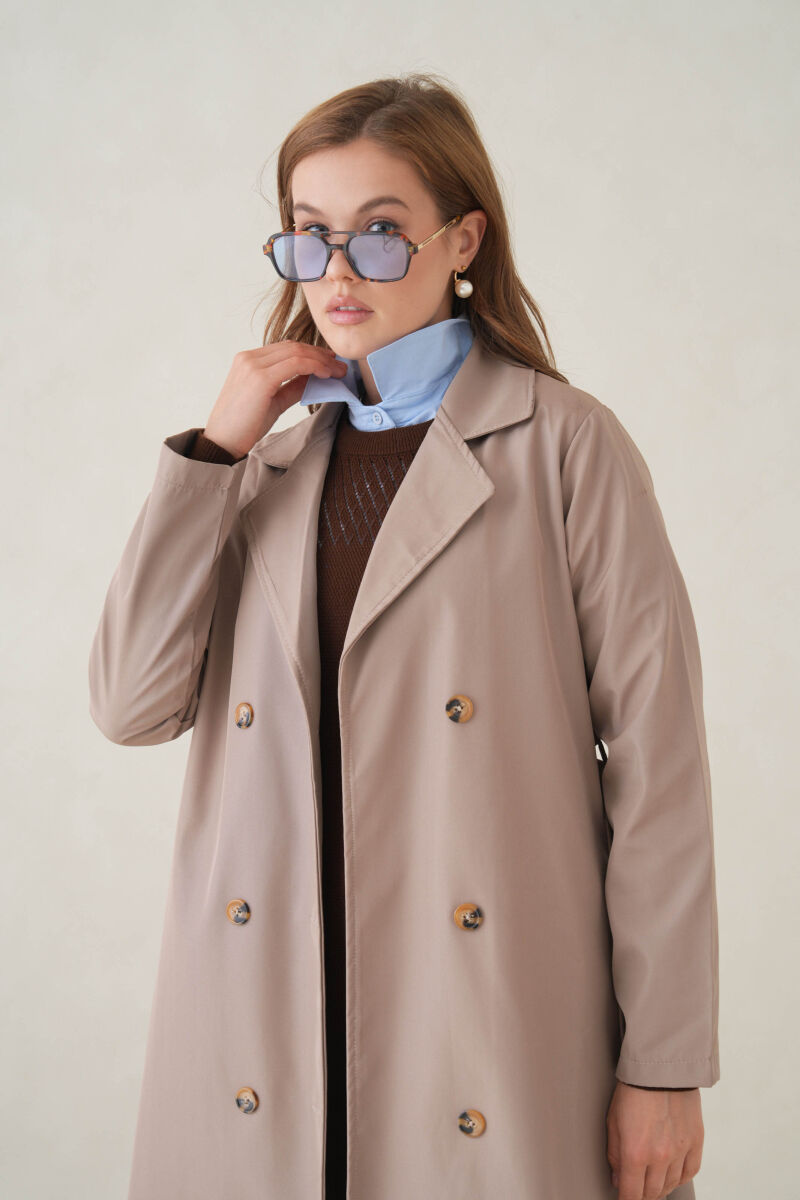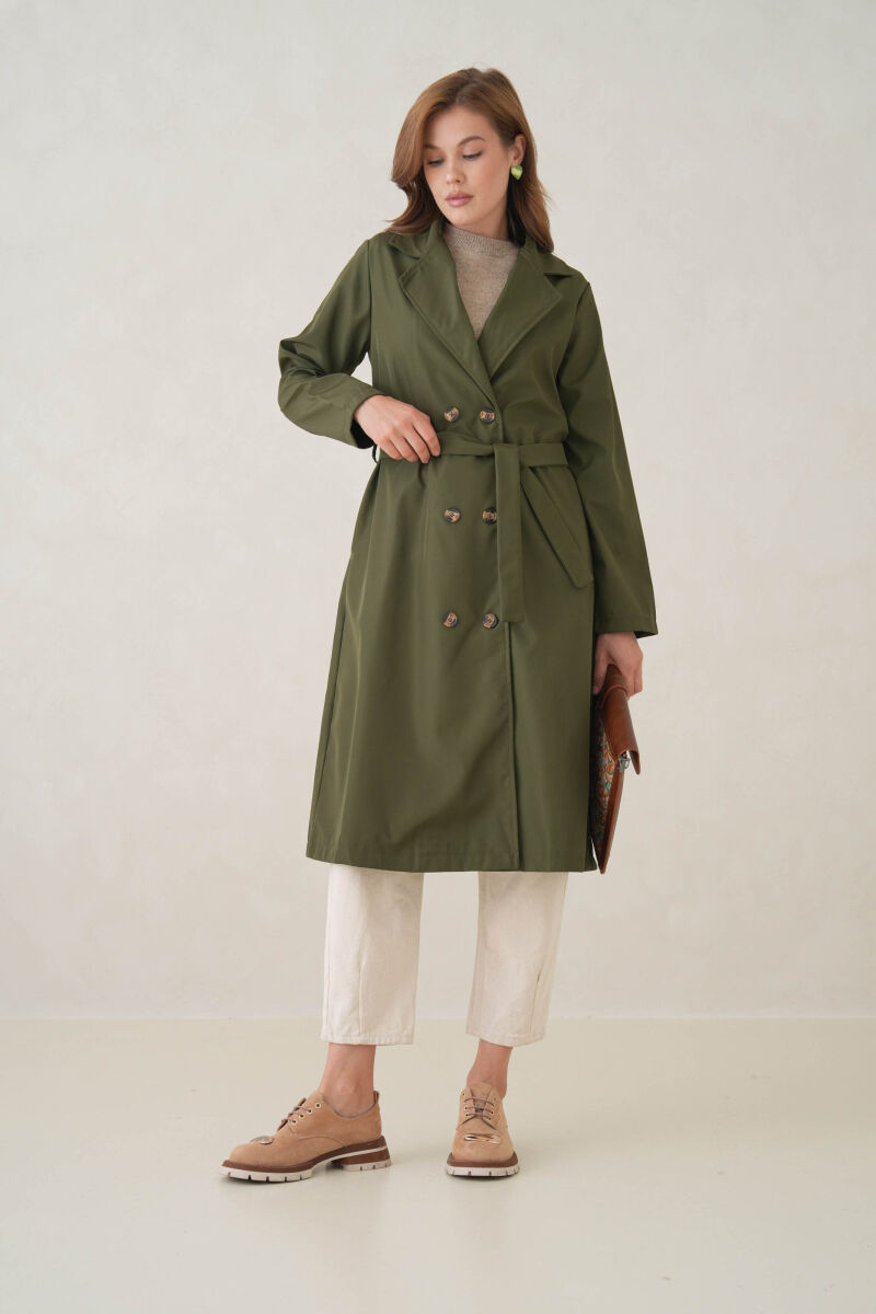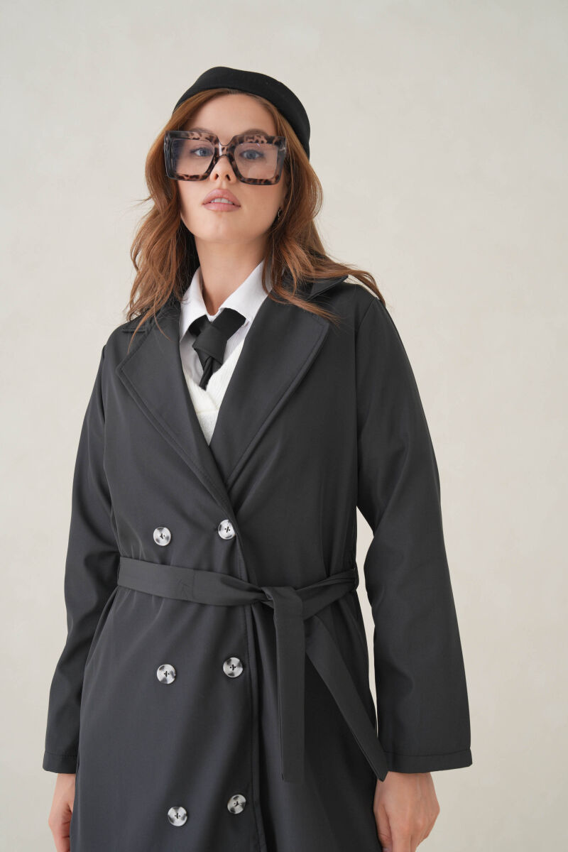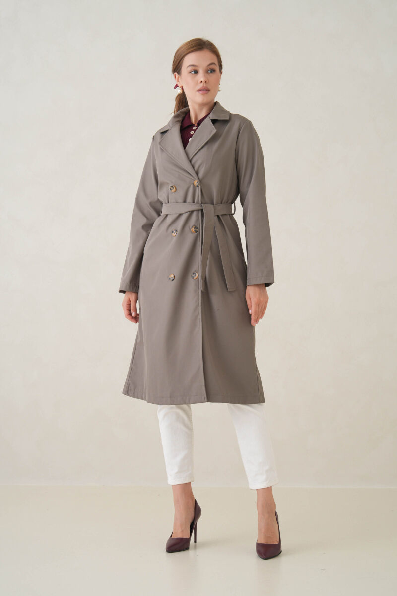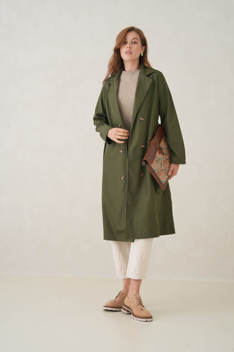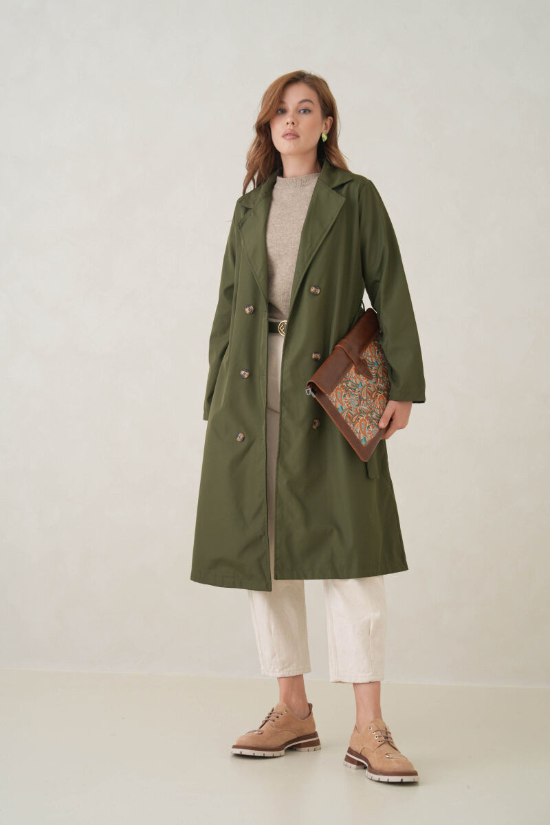 Su Geçirmez Kruvaze Yaka Sık Dokuma Kadın Trençkot