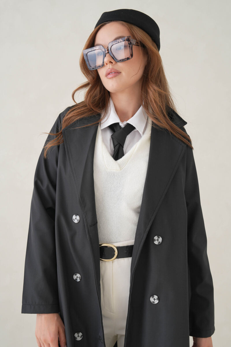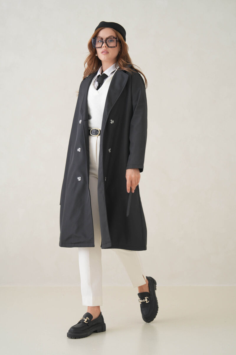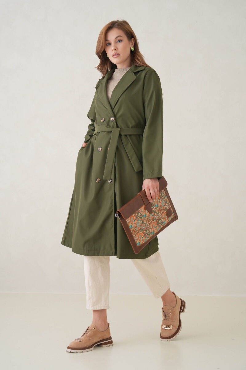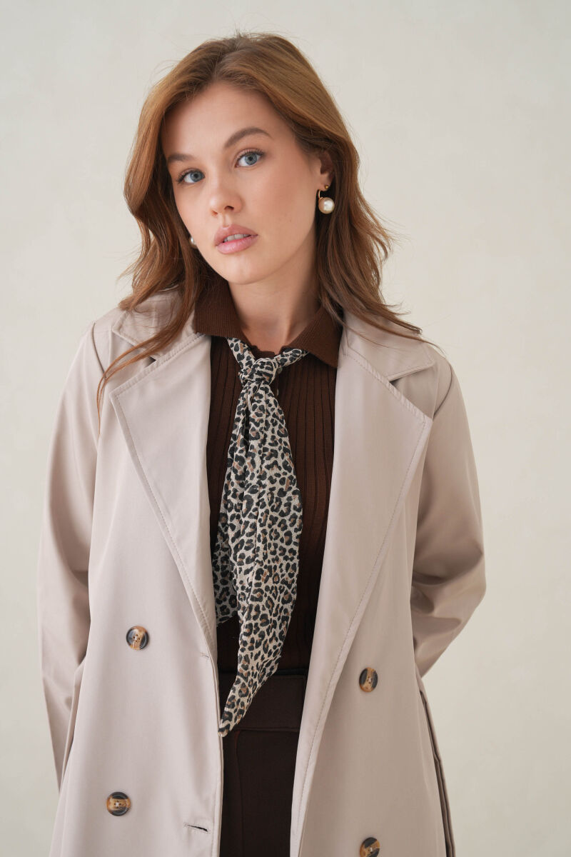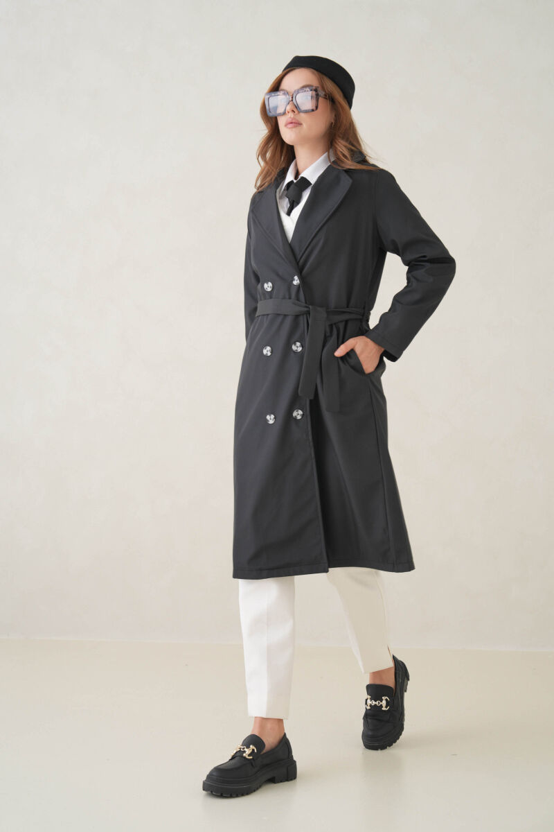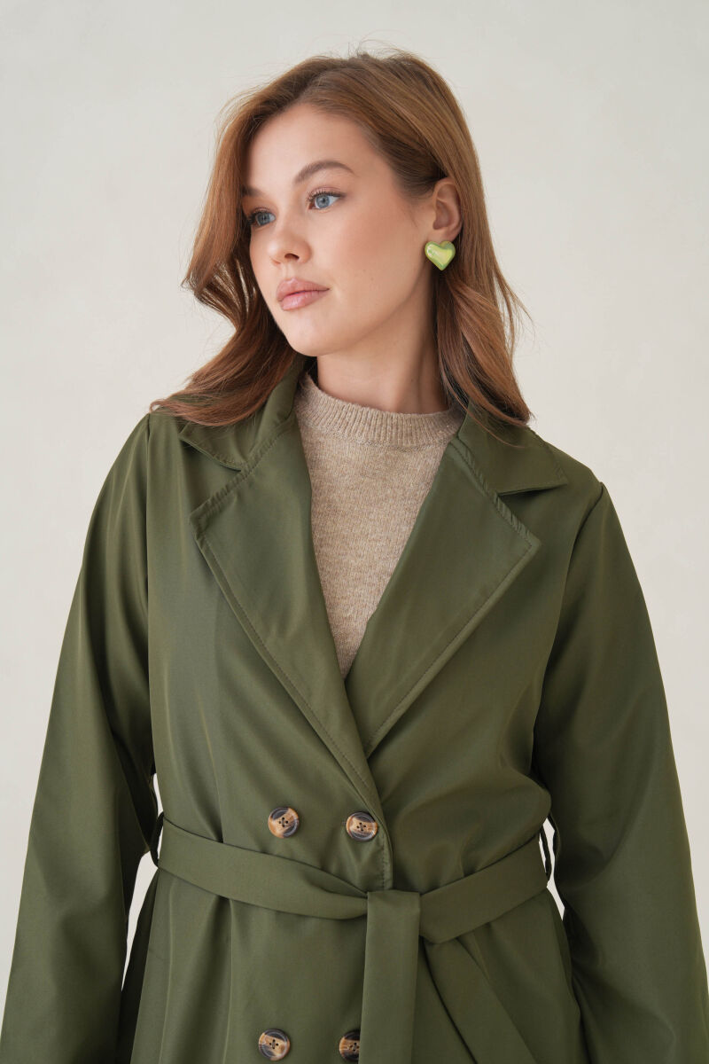 Su Geçirmez Kruvaze Yaka Sık Dokuma Kadın Trençkot