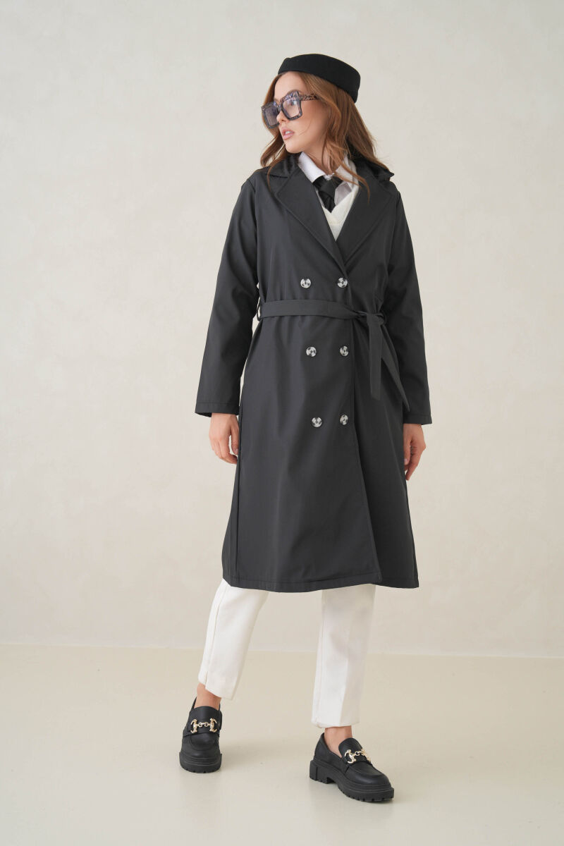 Su Geçirmez Kapüşonlu Fermuarlı Sık Dokuma Kadın Trençkot