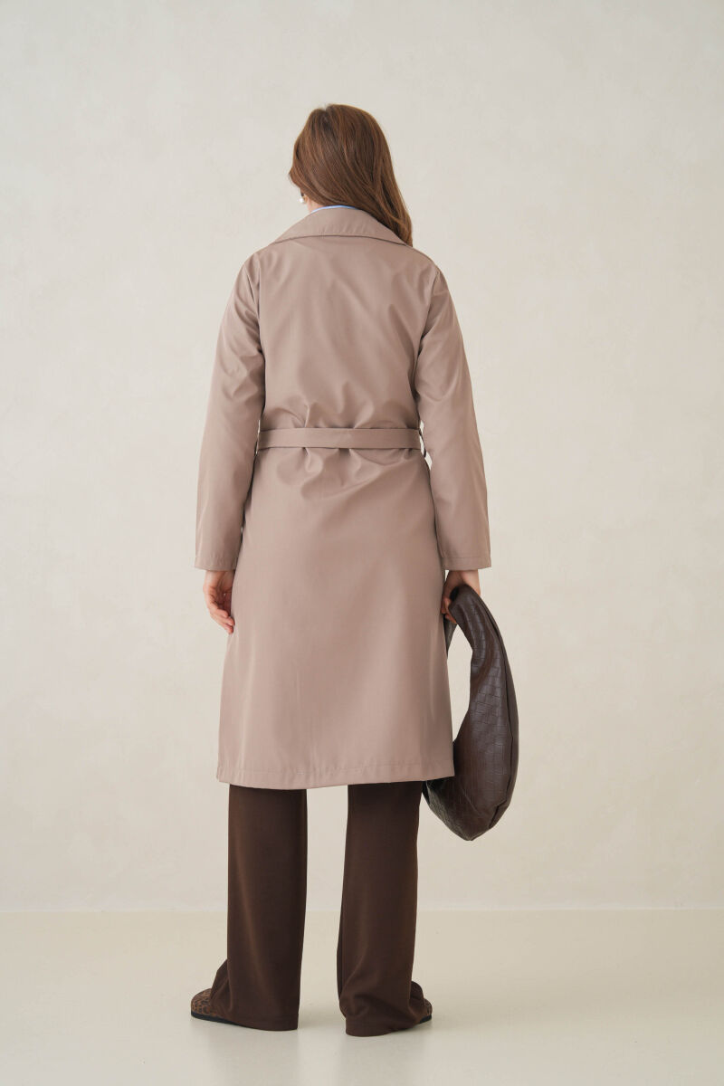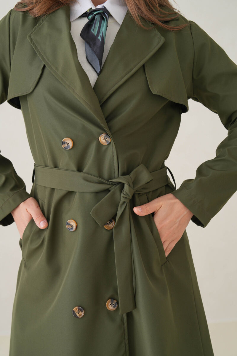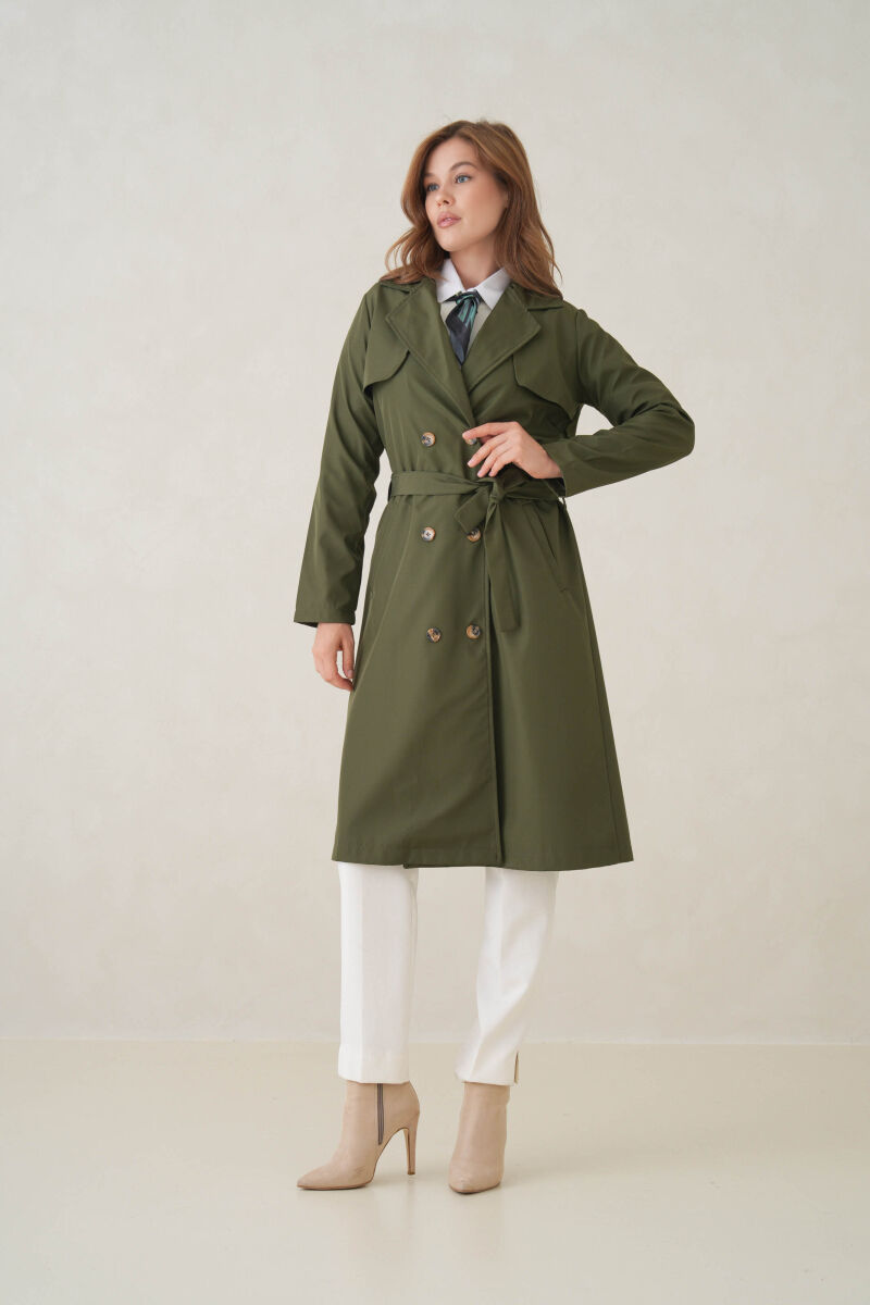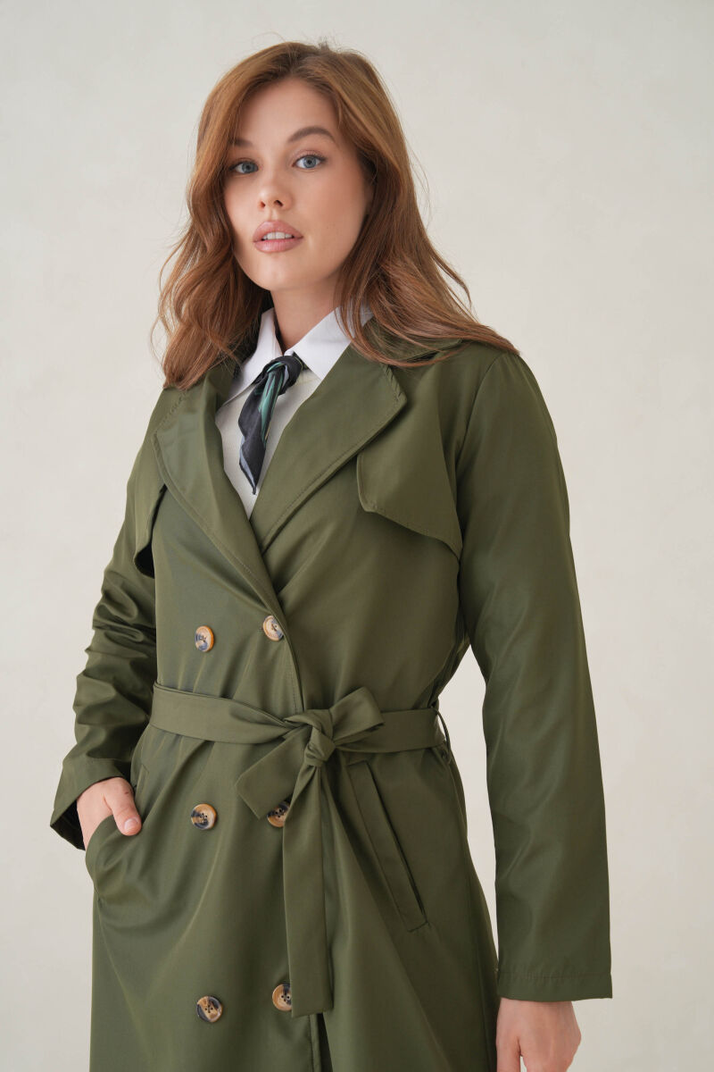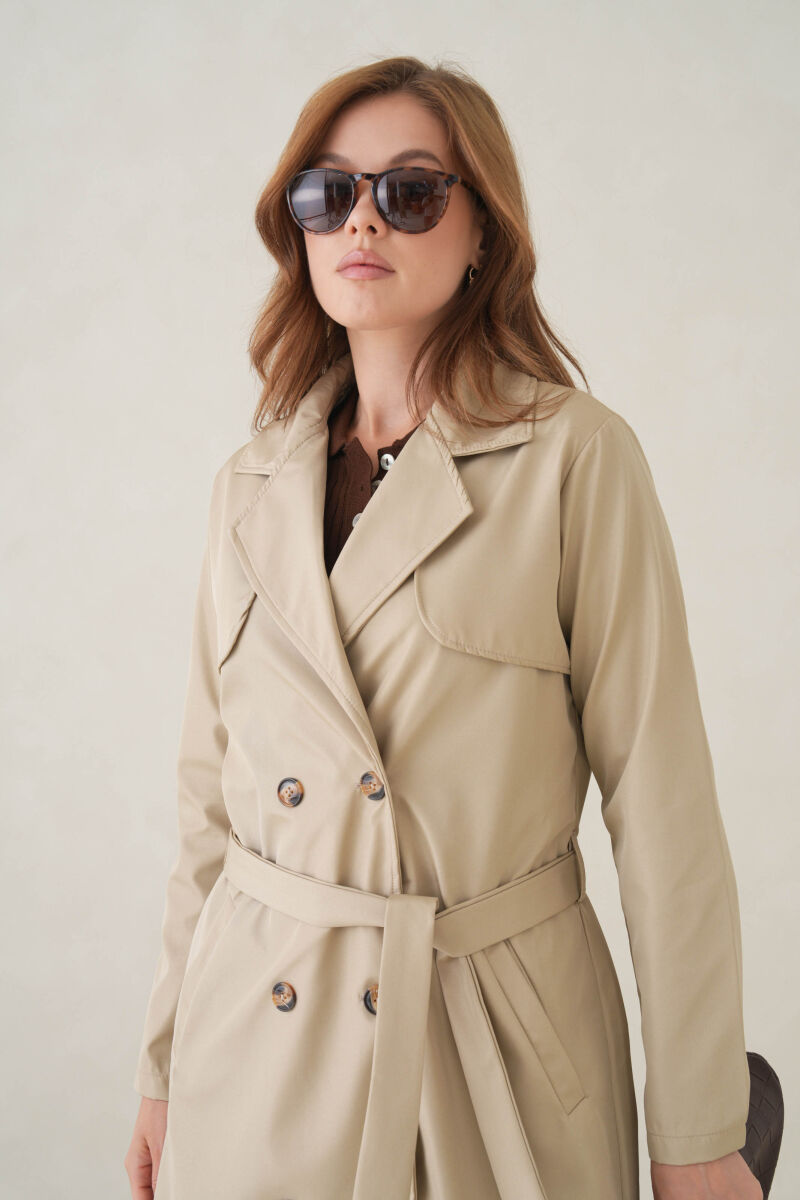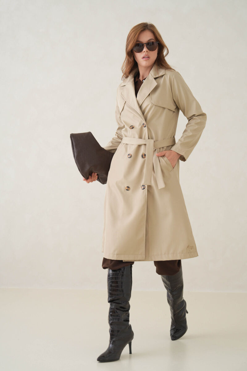 Su Geçirmez Kruvaze Yaka Sık Dokuma Kadın Trençkot