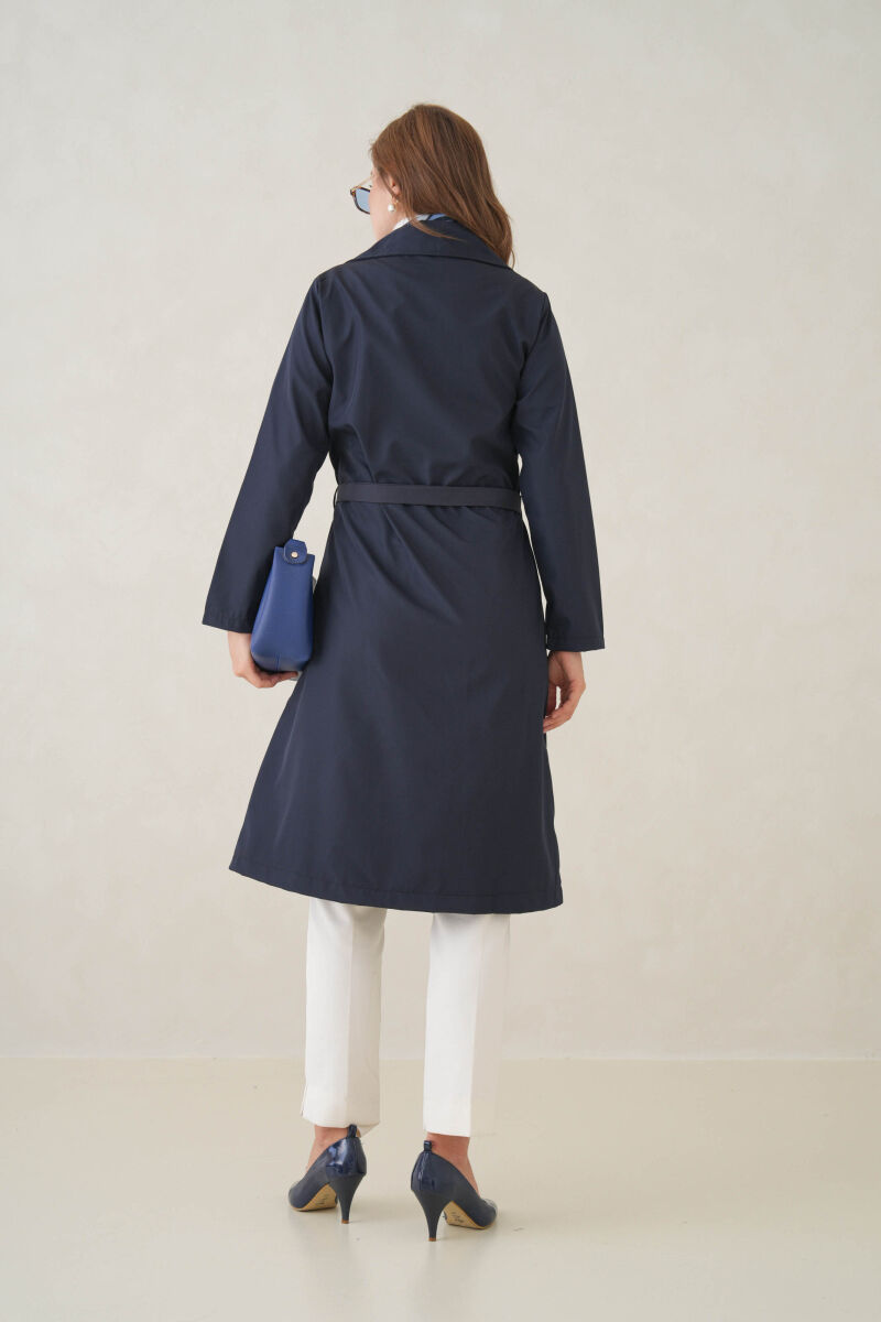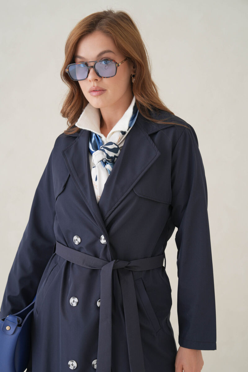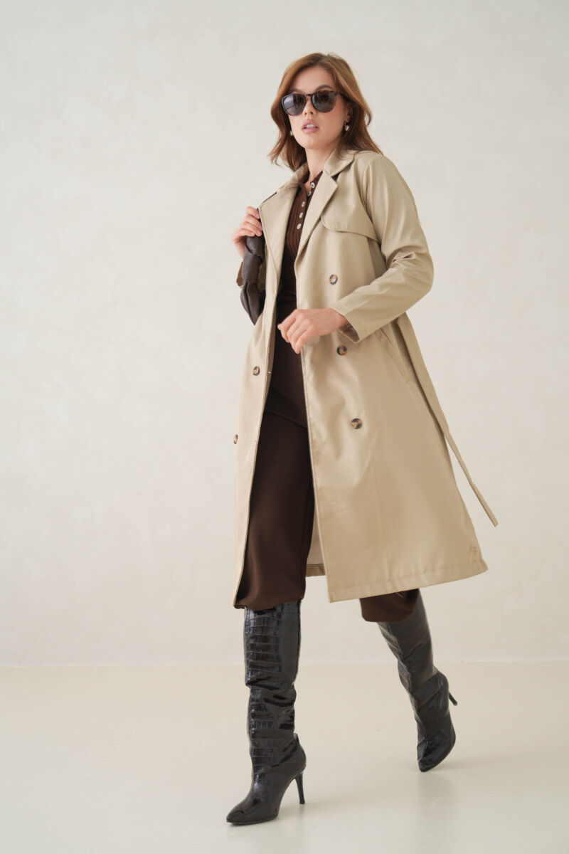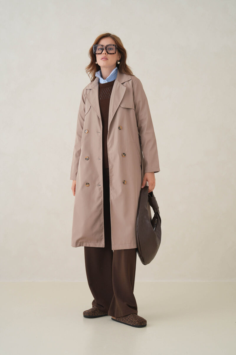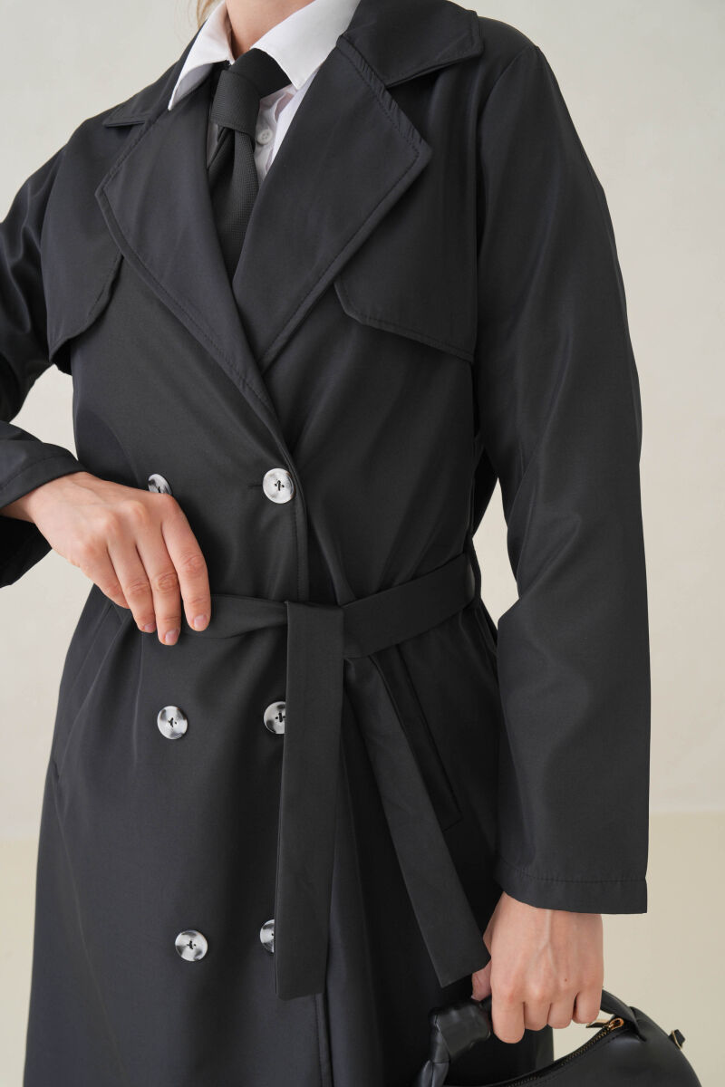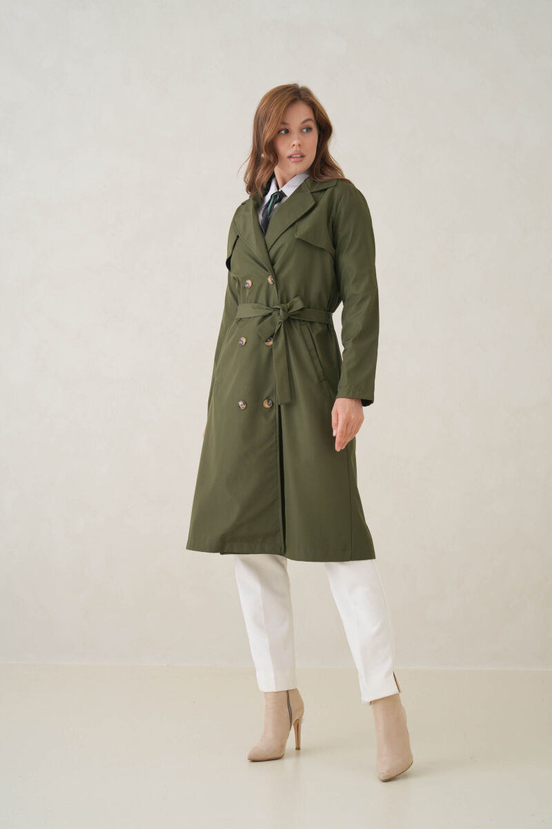 Su Geçirmez Kruvaze Yaka Sık Dokuma Kadın Trençkot