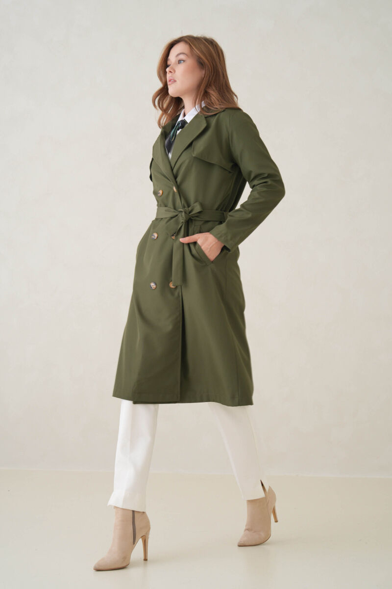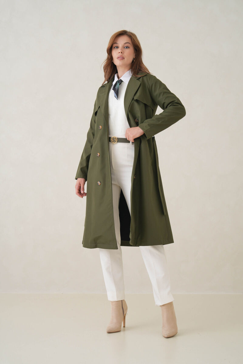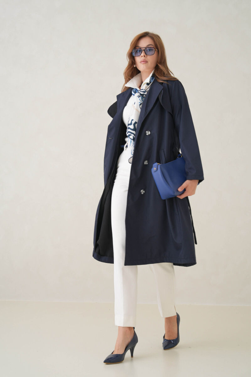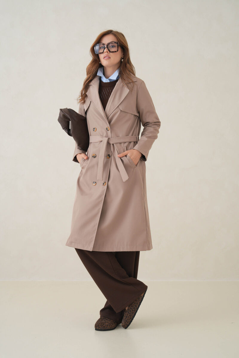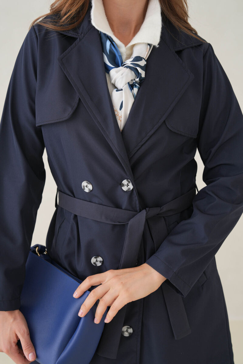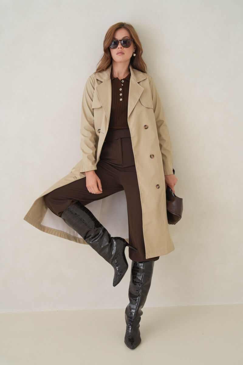 Su Geçirmez Kruvaze Yaka Sık Dokuma Kadın Trençkot