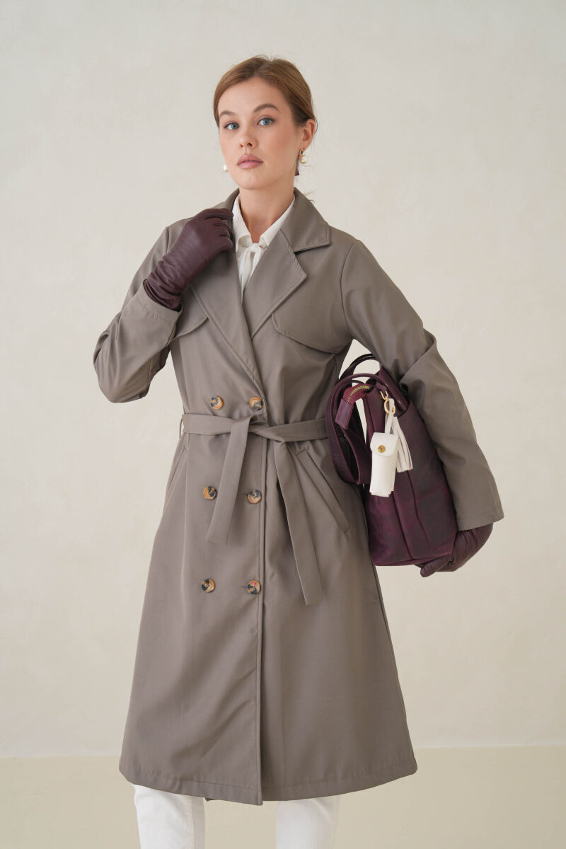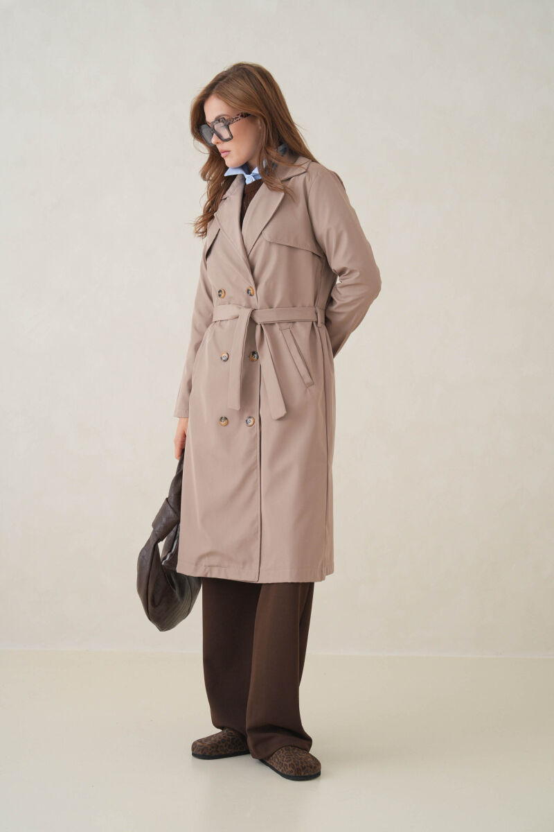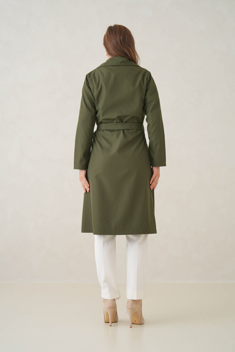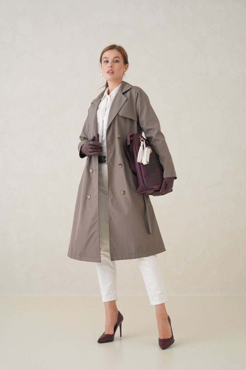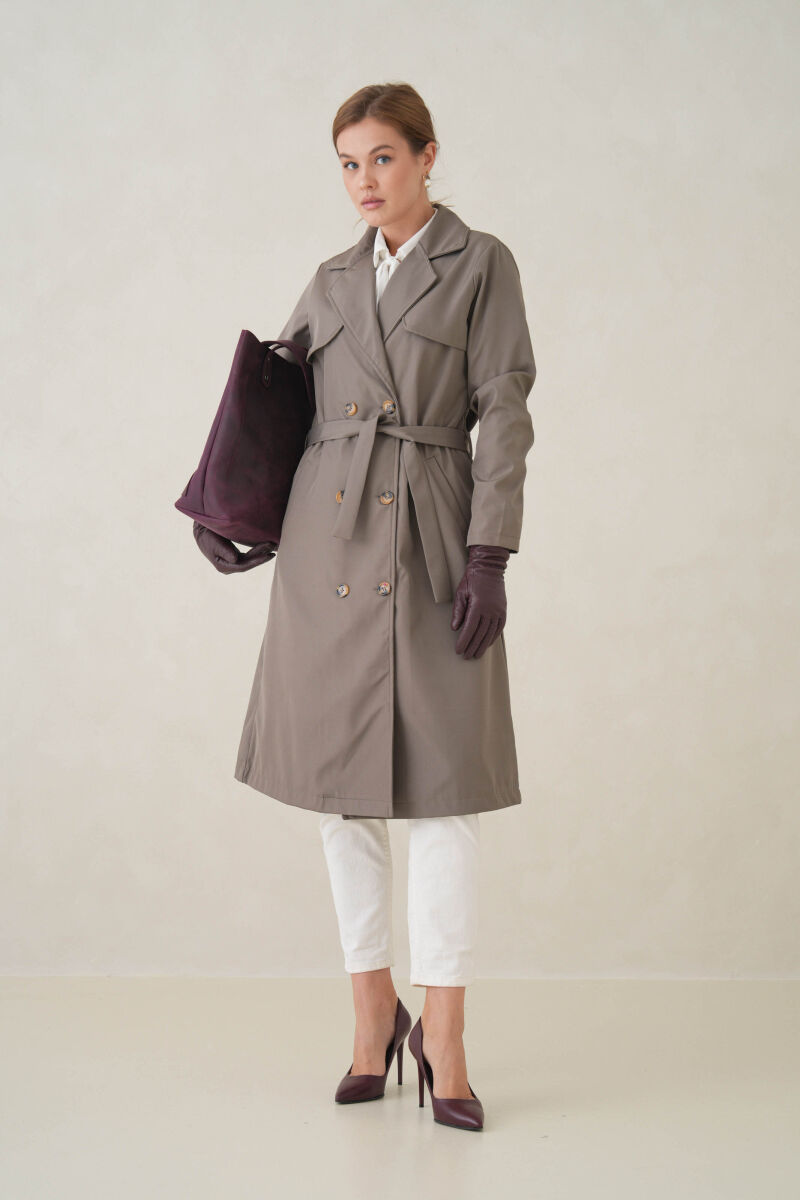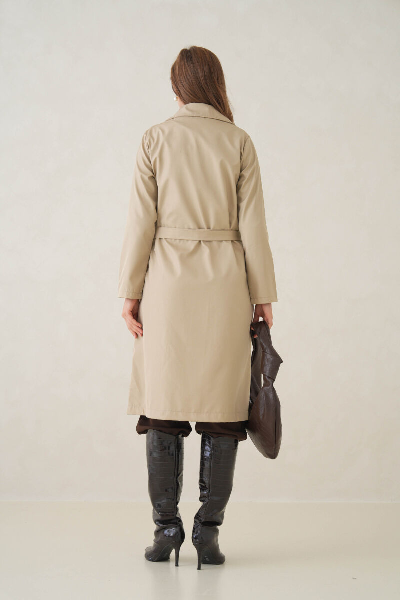 Su Geçirmez Kruvaze Yaka Sık Dokuma Kadın Trençkot