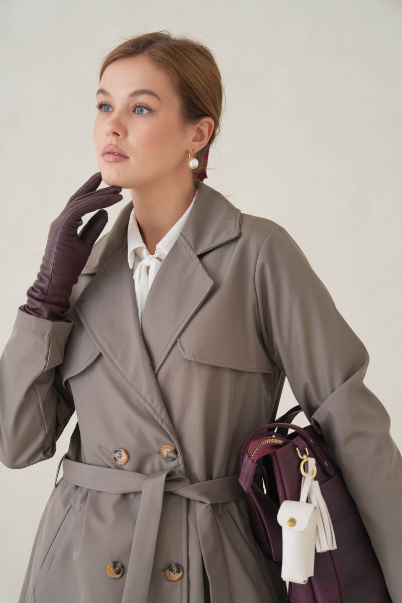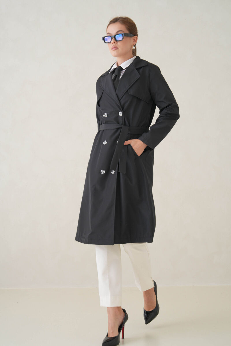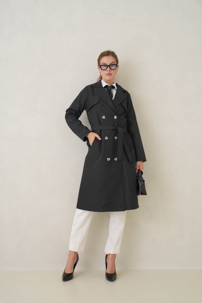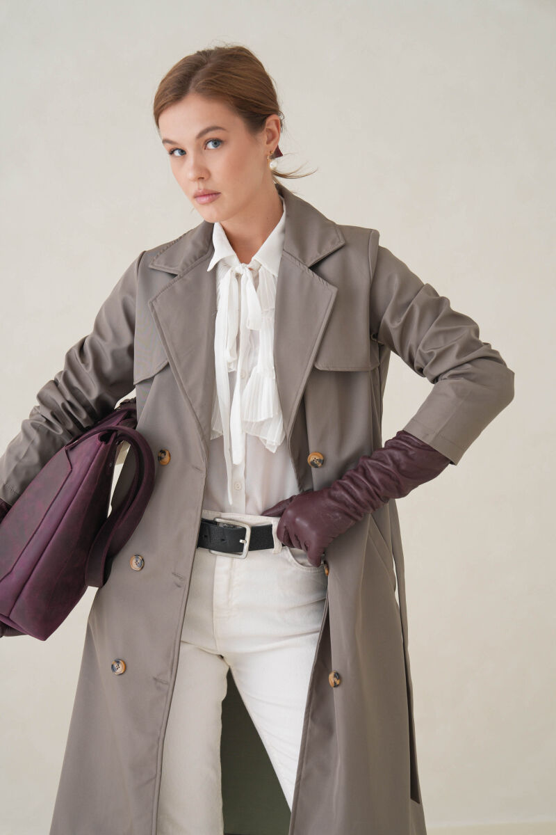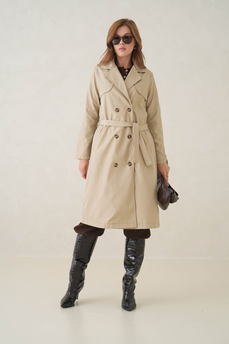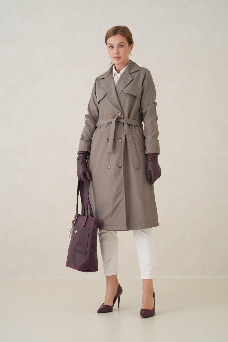 Su Geçirmez Kruvaze Yaka Sık Dokuma Kadın Trençkot