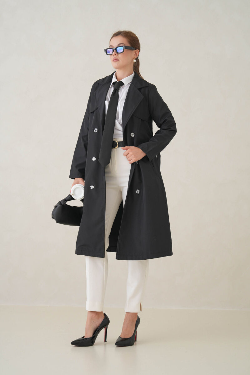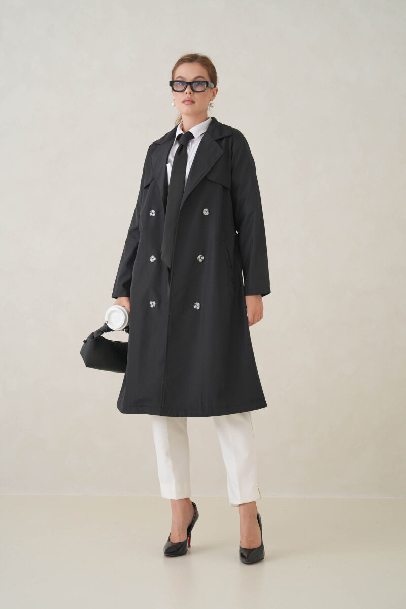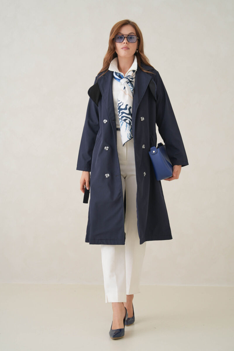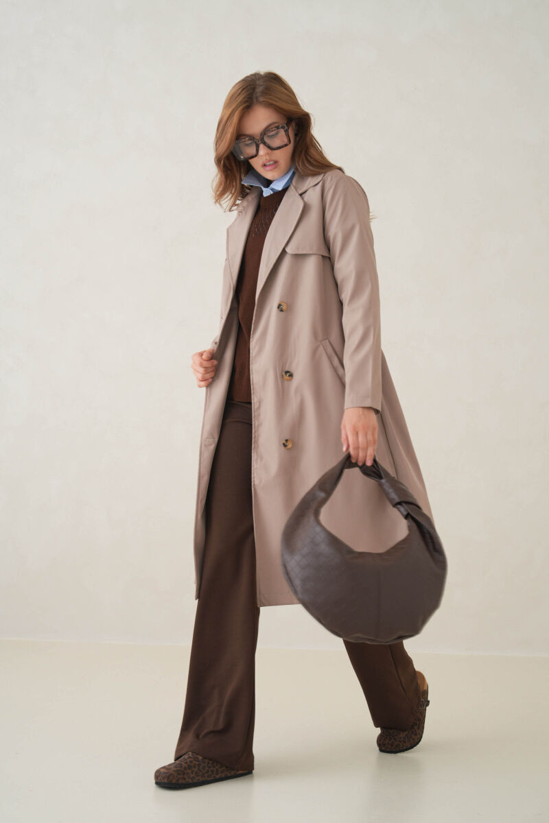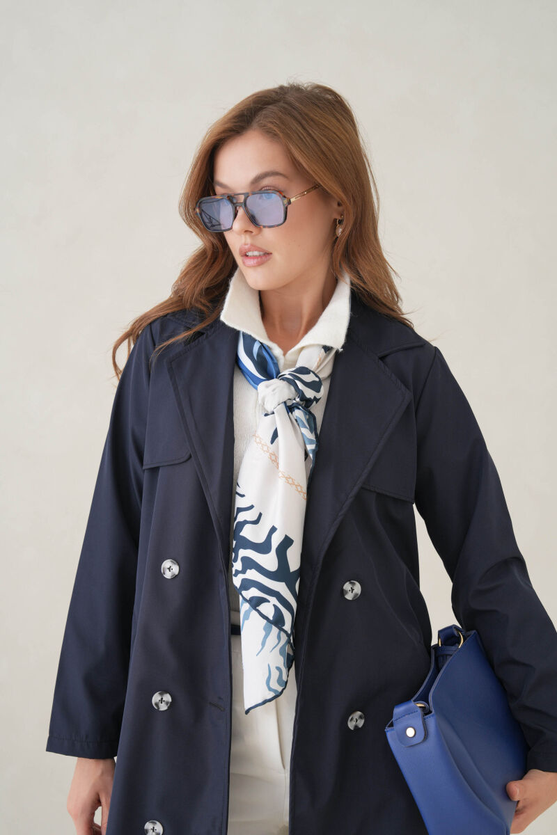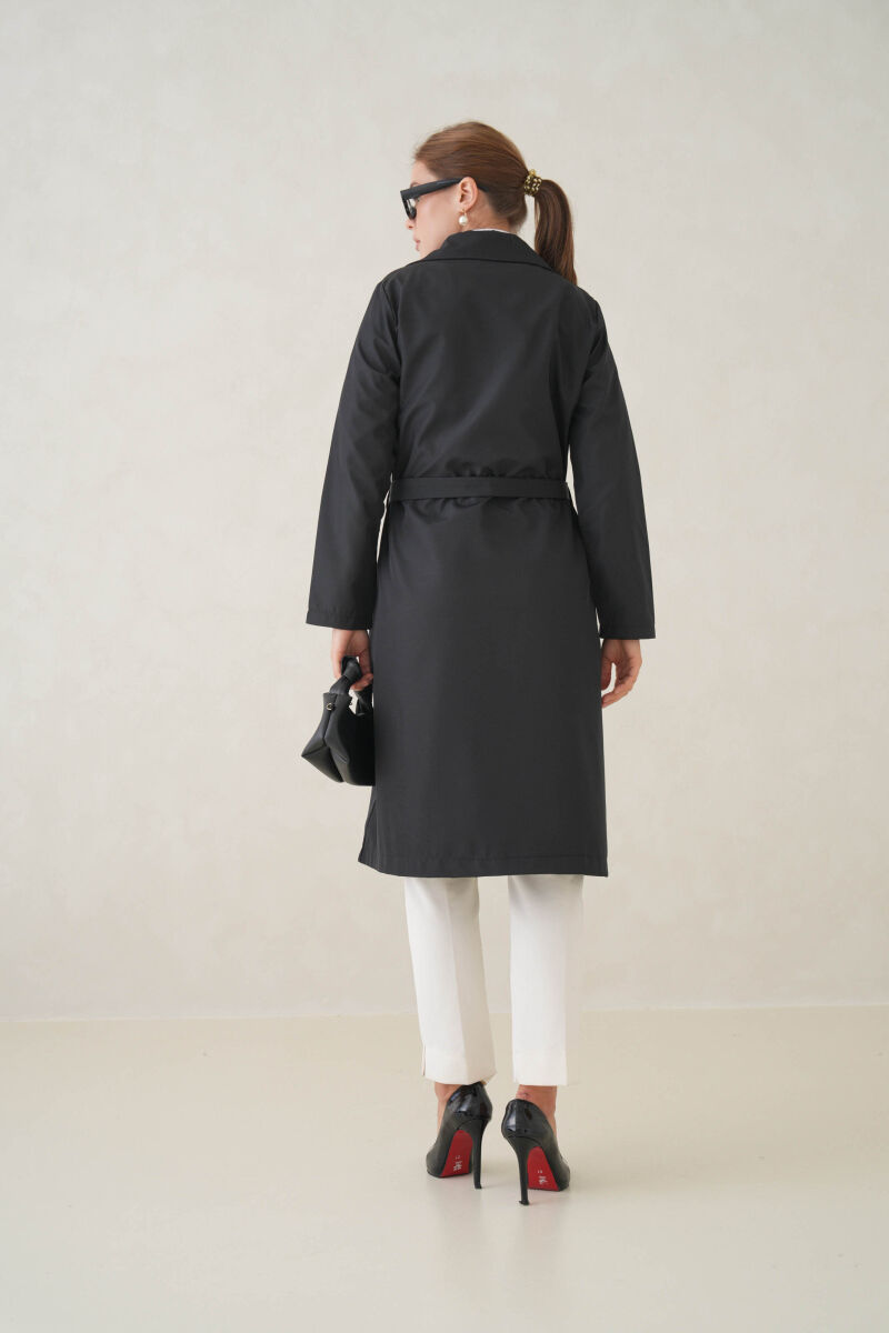 Su Geçirmez Kruvaze Yaka Sık Dokuma Kadın Trençkot
